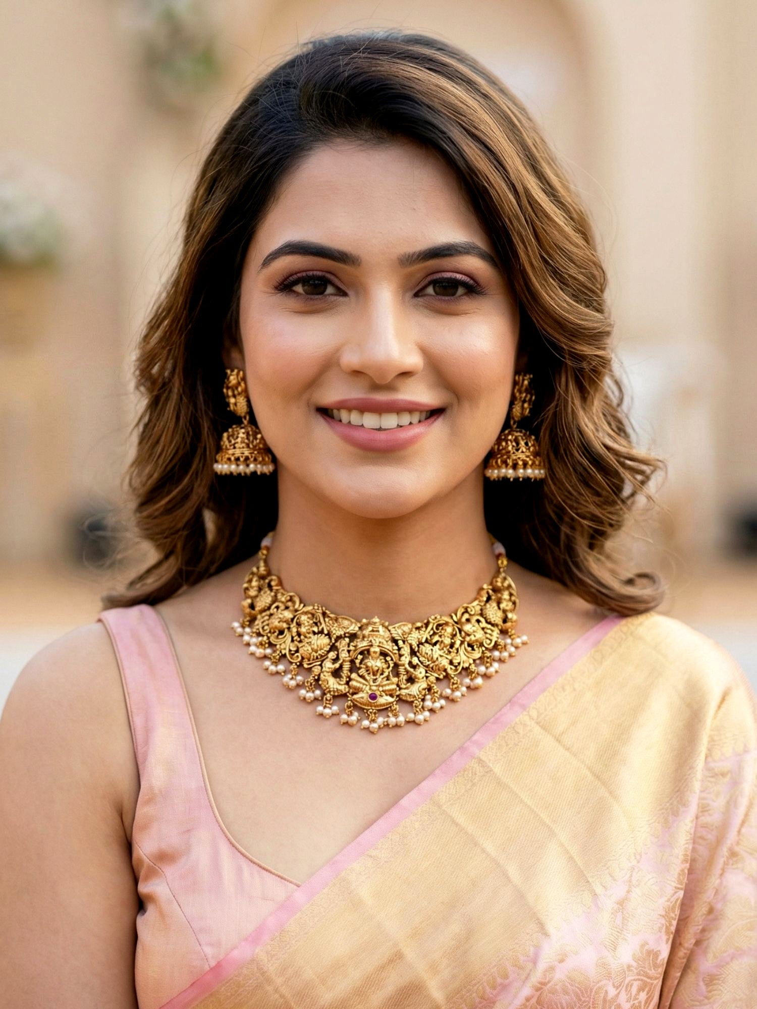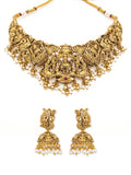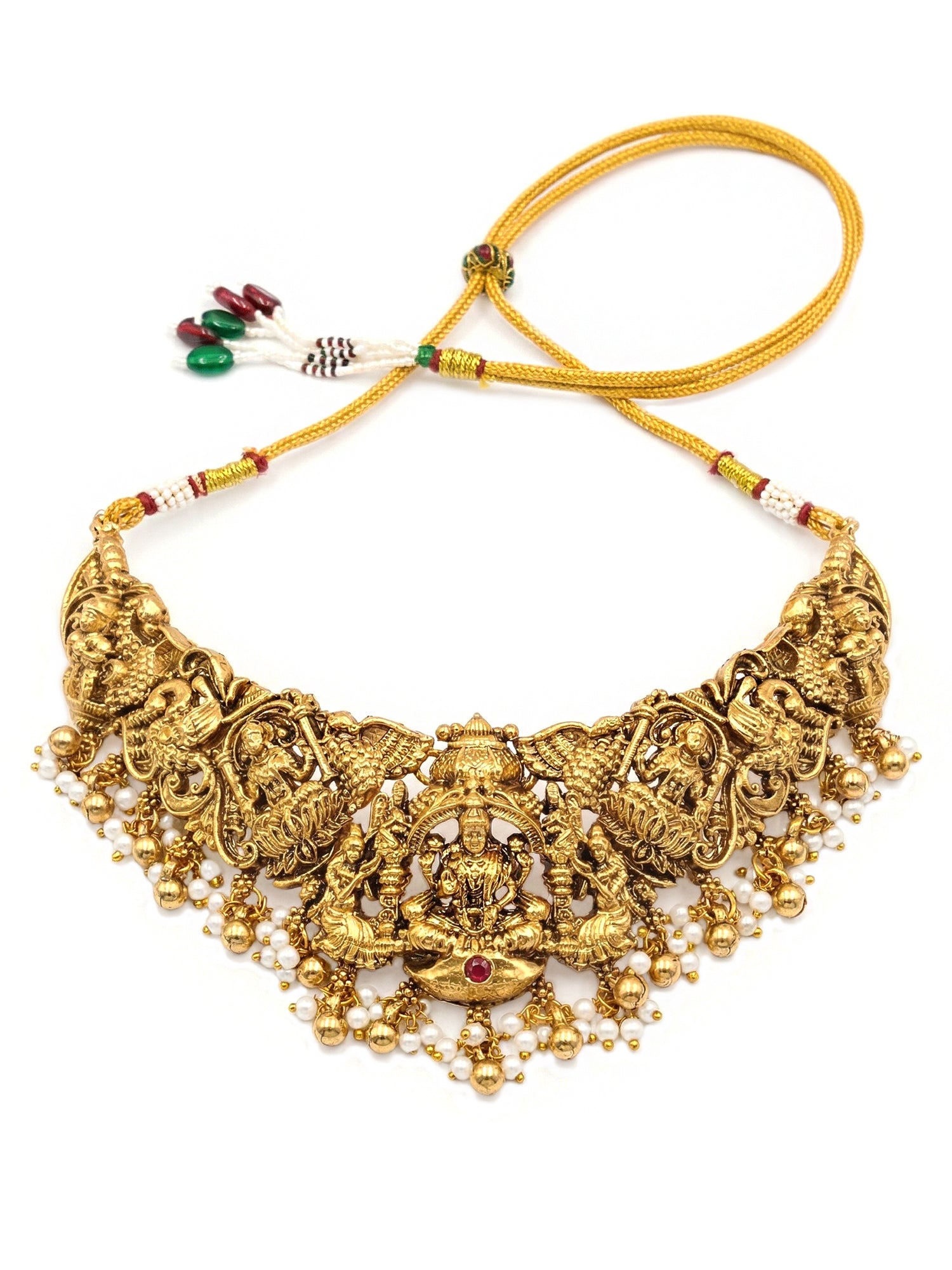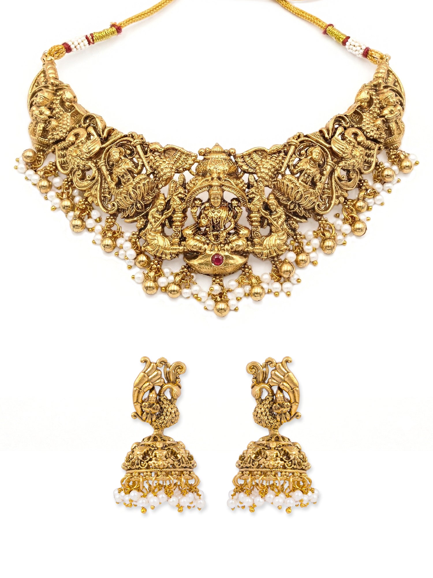 KARATCART Traditional Temple Design Goddess Lakshmi Gold-Plated Choker Jewellery Set for Women