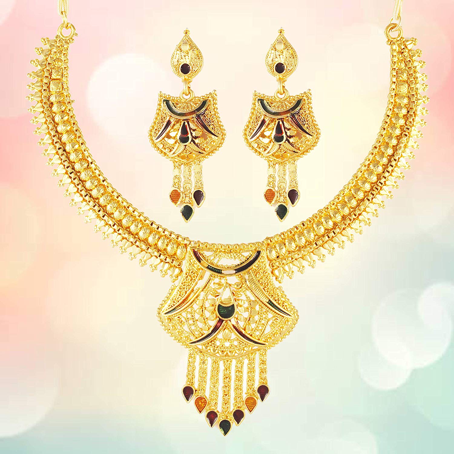 • One Gram Gold Plating on Nickle and Lead Free Metal for exact Like Original Gold Jewellery look