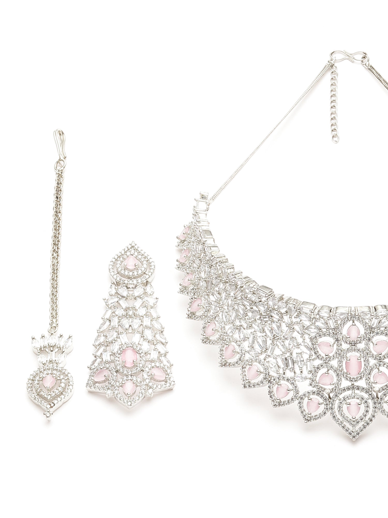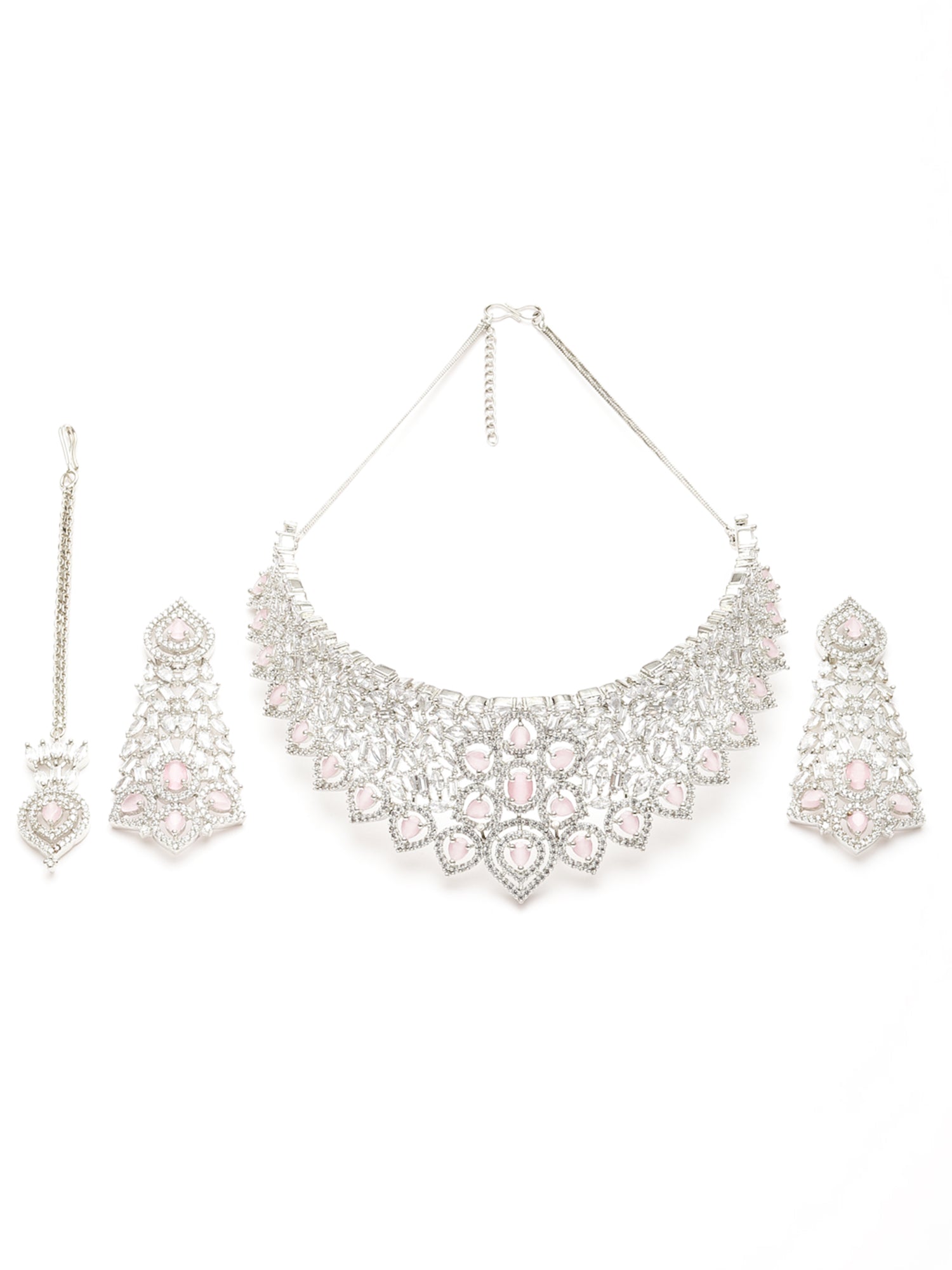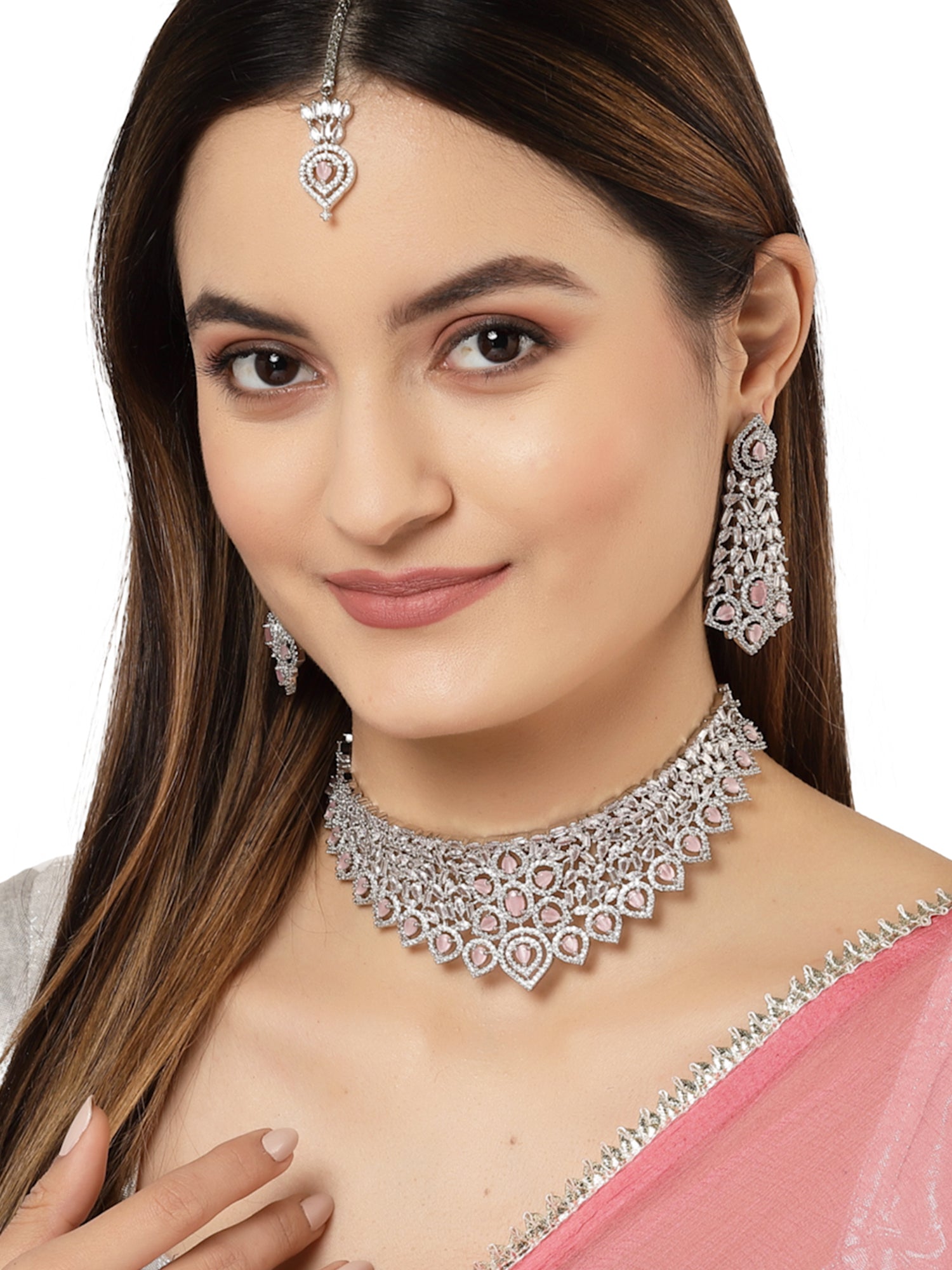 - Karatcart American Diamond Studed Pink Choker Necklace Set. It is made with High-Quality AAA Cubic zirconia. Perfect for Weddings, Parties, Festivals, and Traditional Occasions.