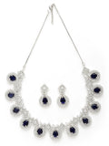 Karatcart Silver Tone Blue American Diamond Studded Necklace Set For Women