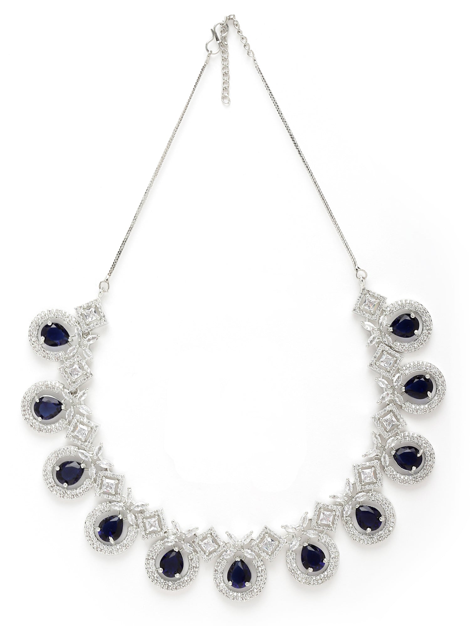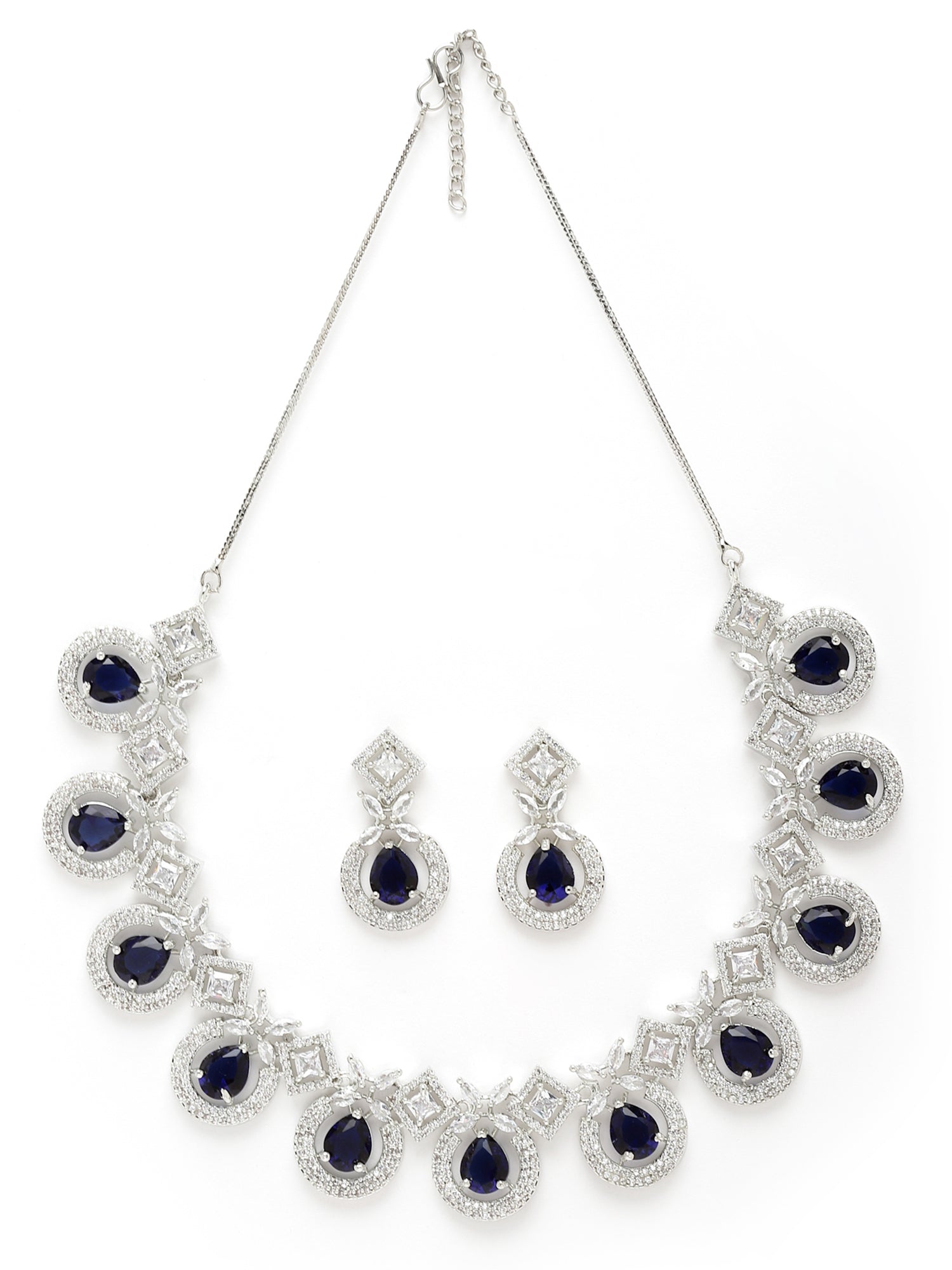 - Silver Tone Blue American Diamond Studded Necklace Set For Women. It is made with High-Quality AAA Cubic zirconia. Perfect for Weddings, Parties, Festivals, and Traditional Occasions.