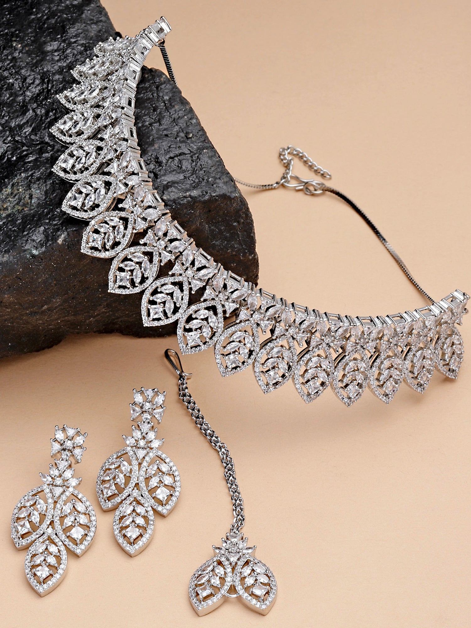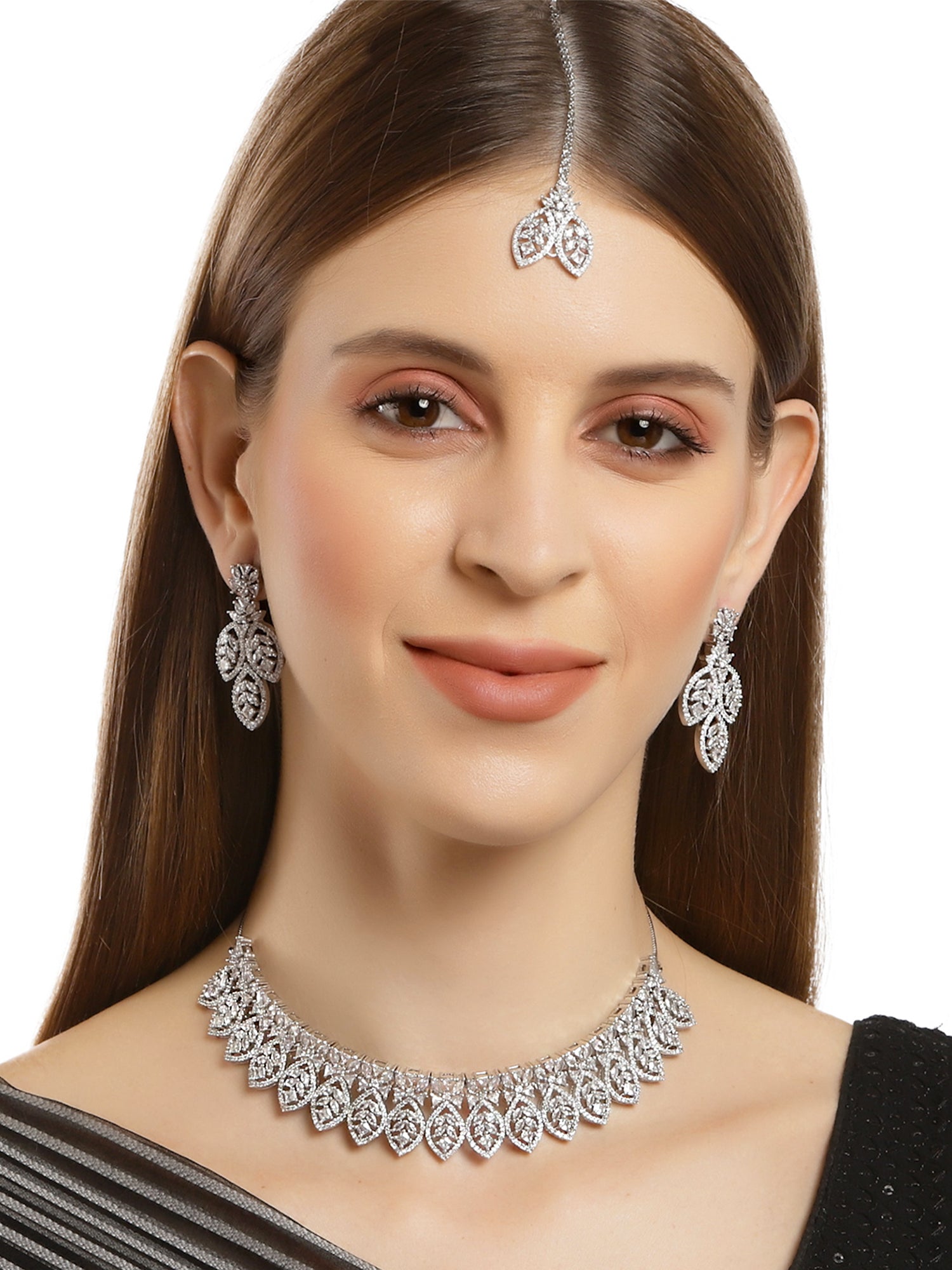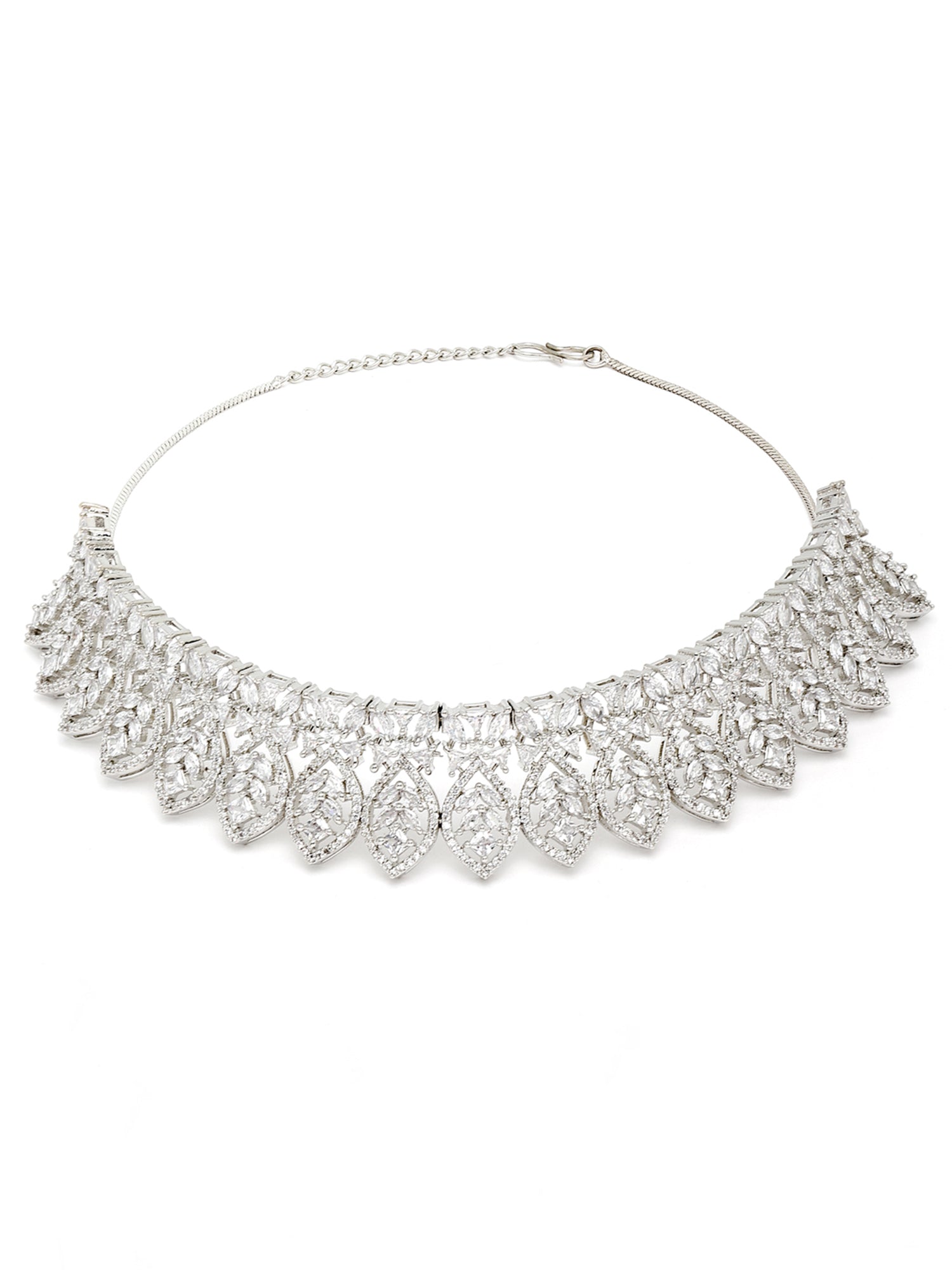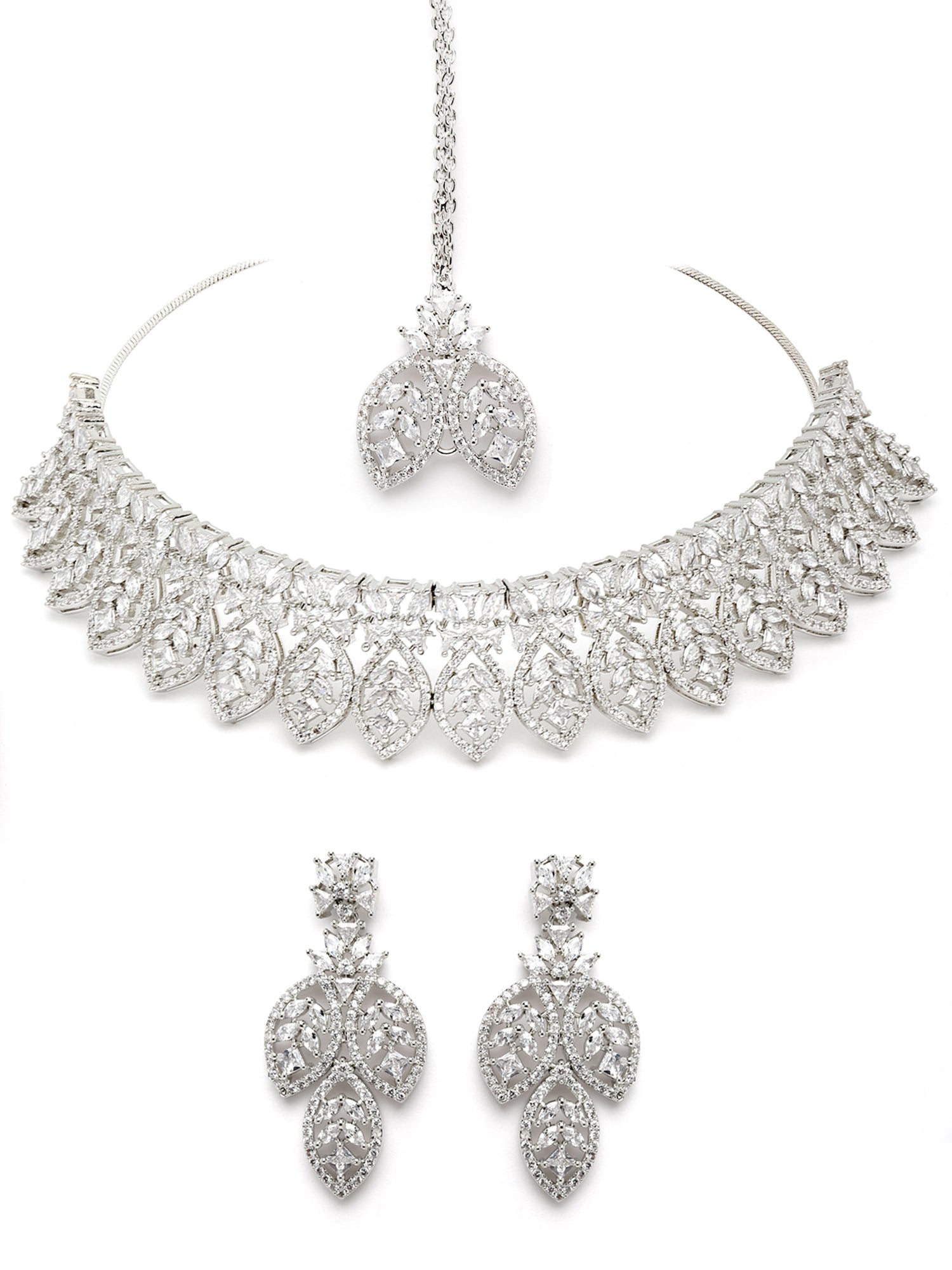 - Silver Tone American Diamond Studded Necklace Set For Women. It is made with High-Quality AAA Cubic zirconia. Perfect for Weddings, Parties, Festivals, and Traditional Occasions.