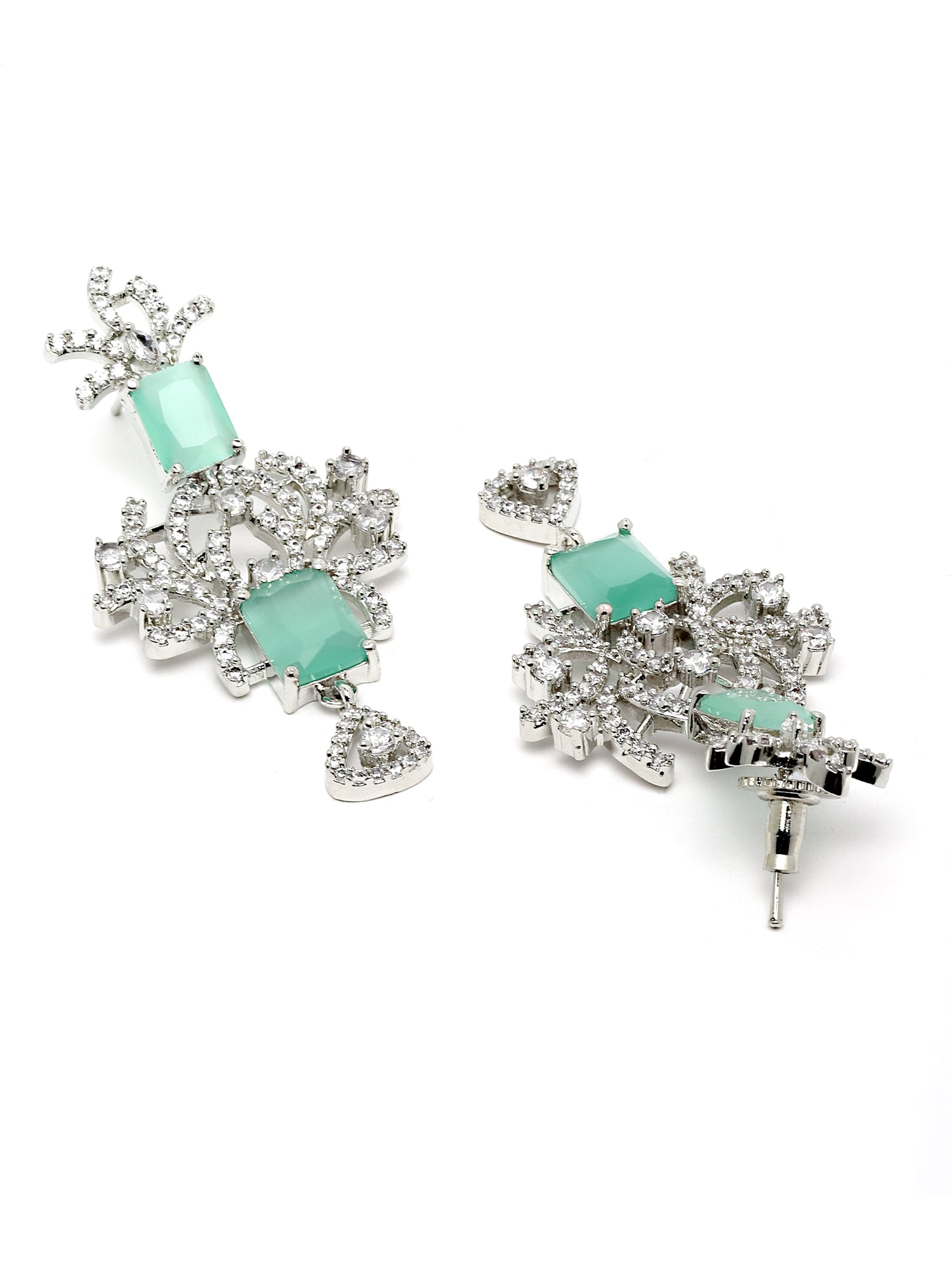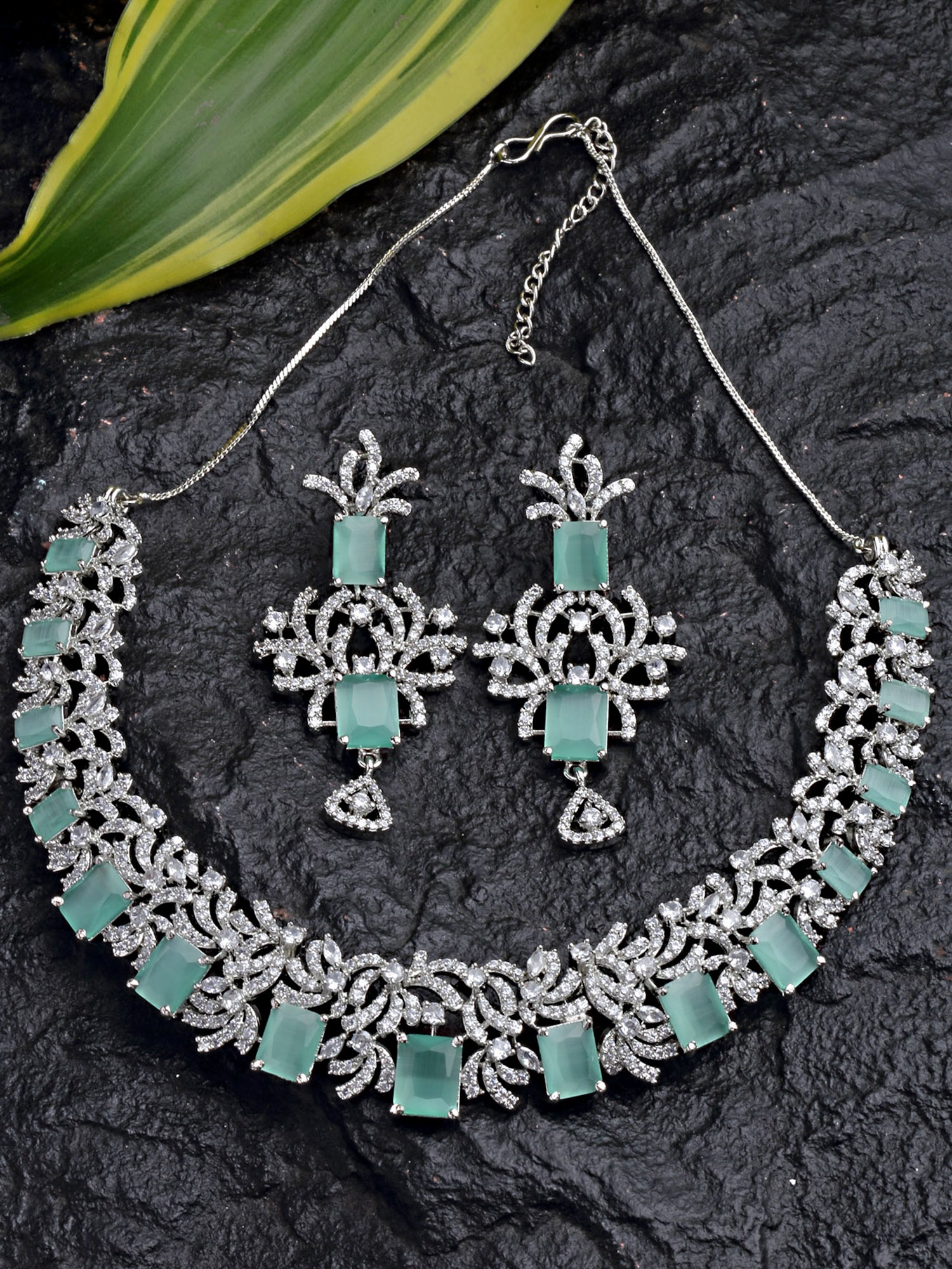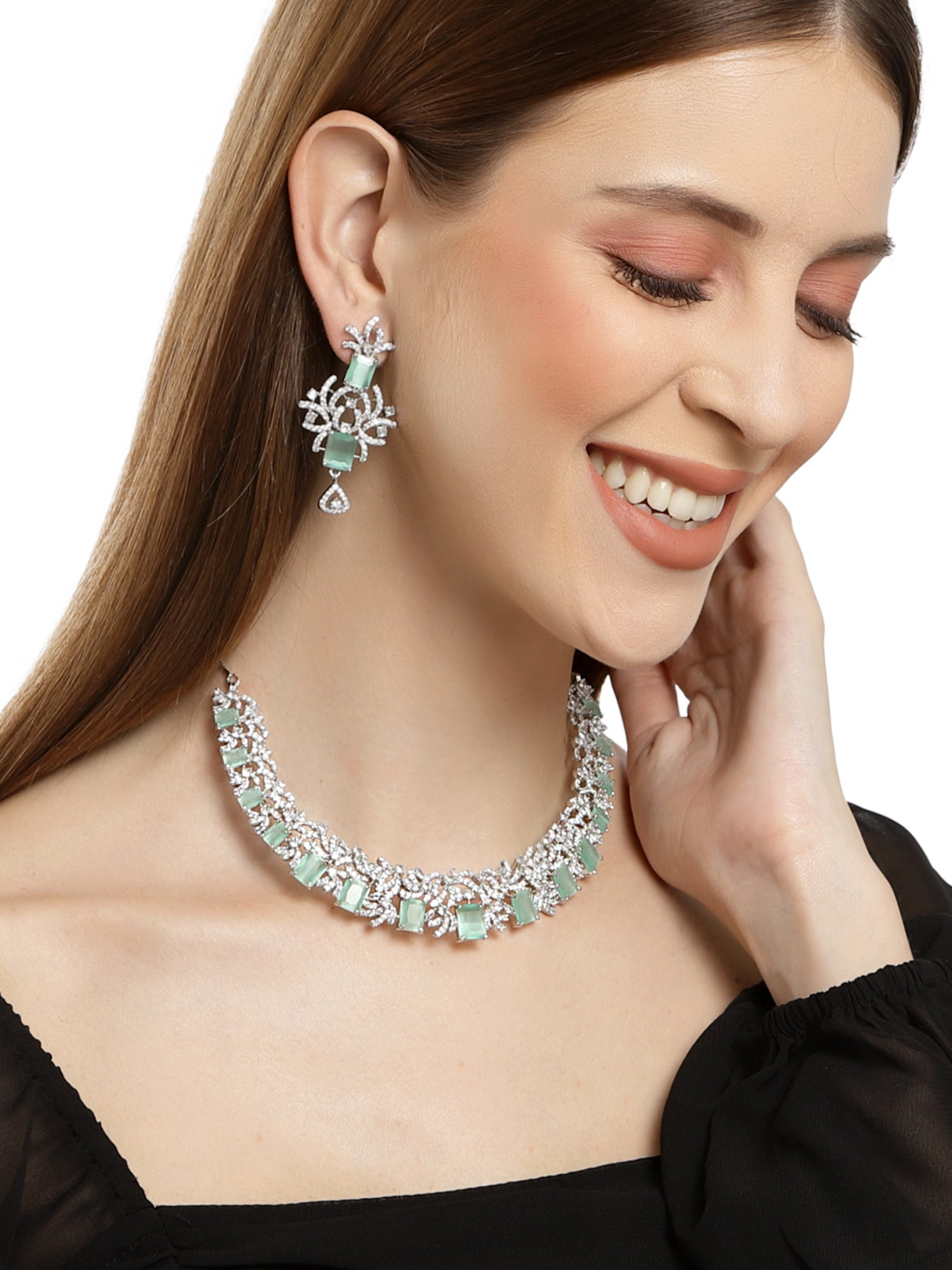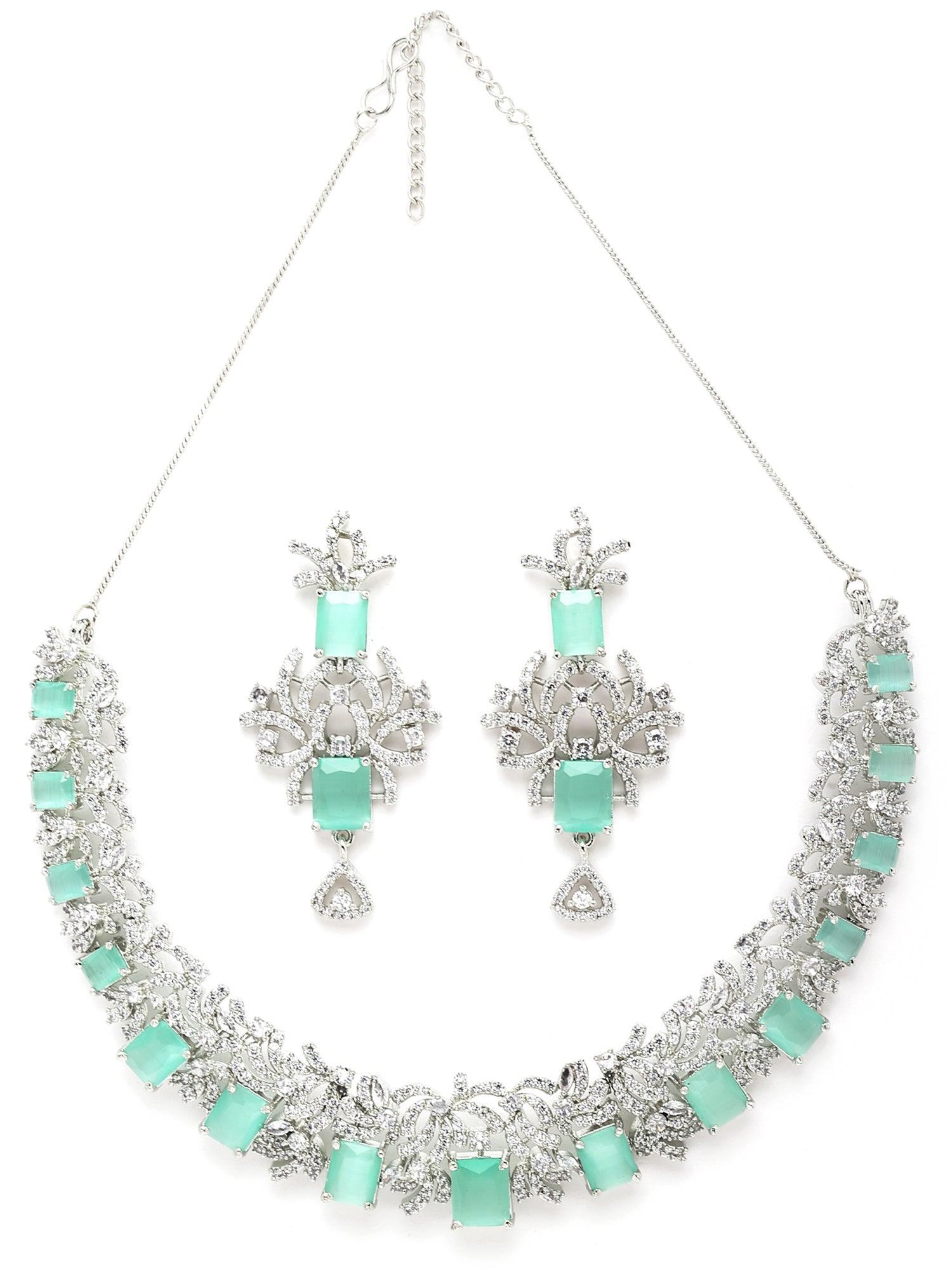 - Silver Tone Light Green AD Necklace Set for Women . It is made with High-Quality AAA Cubic zirconia. Perfect for Weddings, Parties, Festivals, and Traditional Occasions.