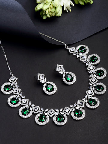 Karatcart Silver Tone Green American Diamond Studded Necklace Set for Women