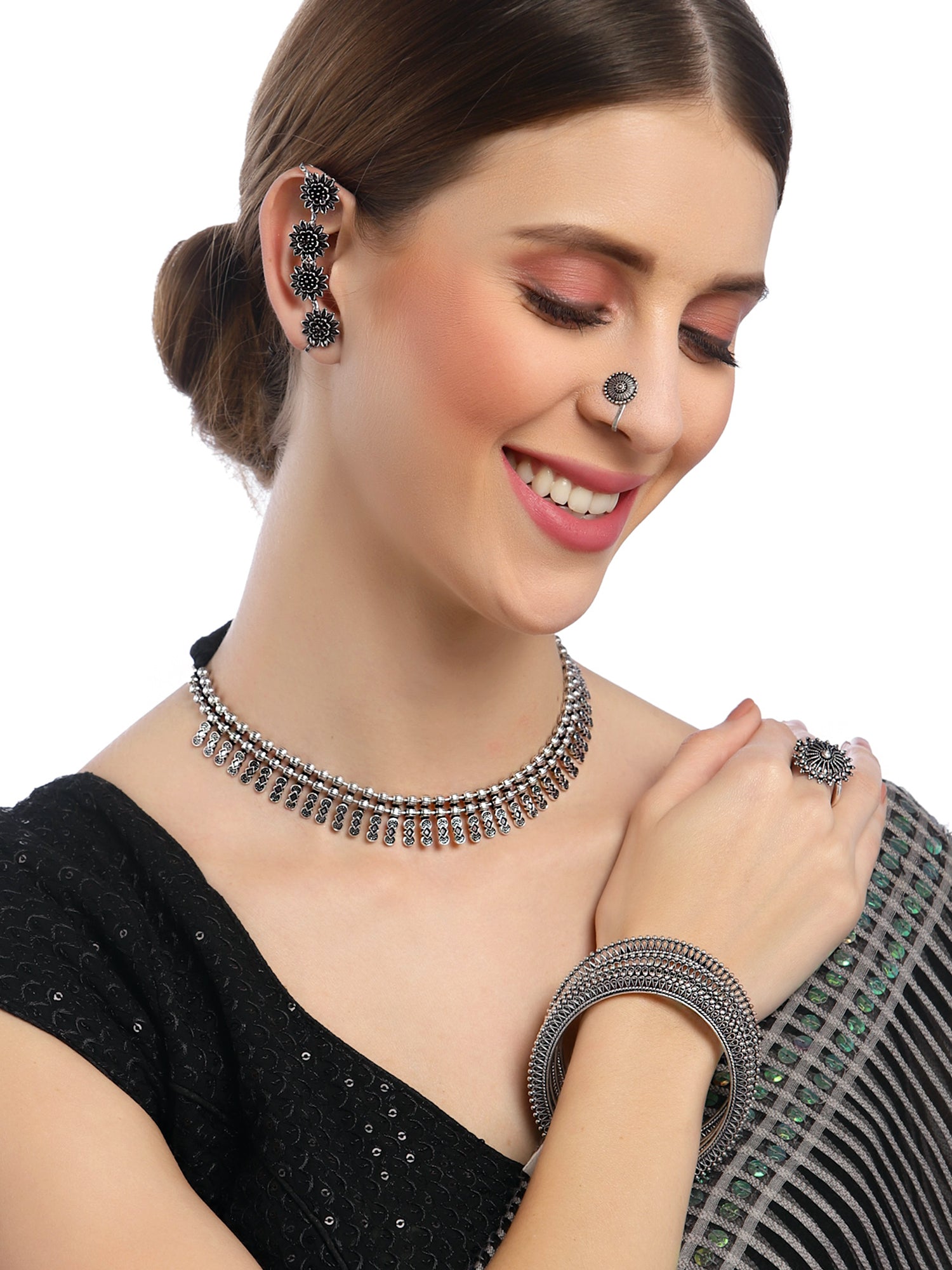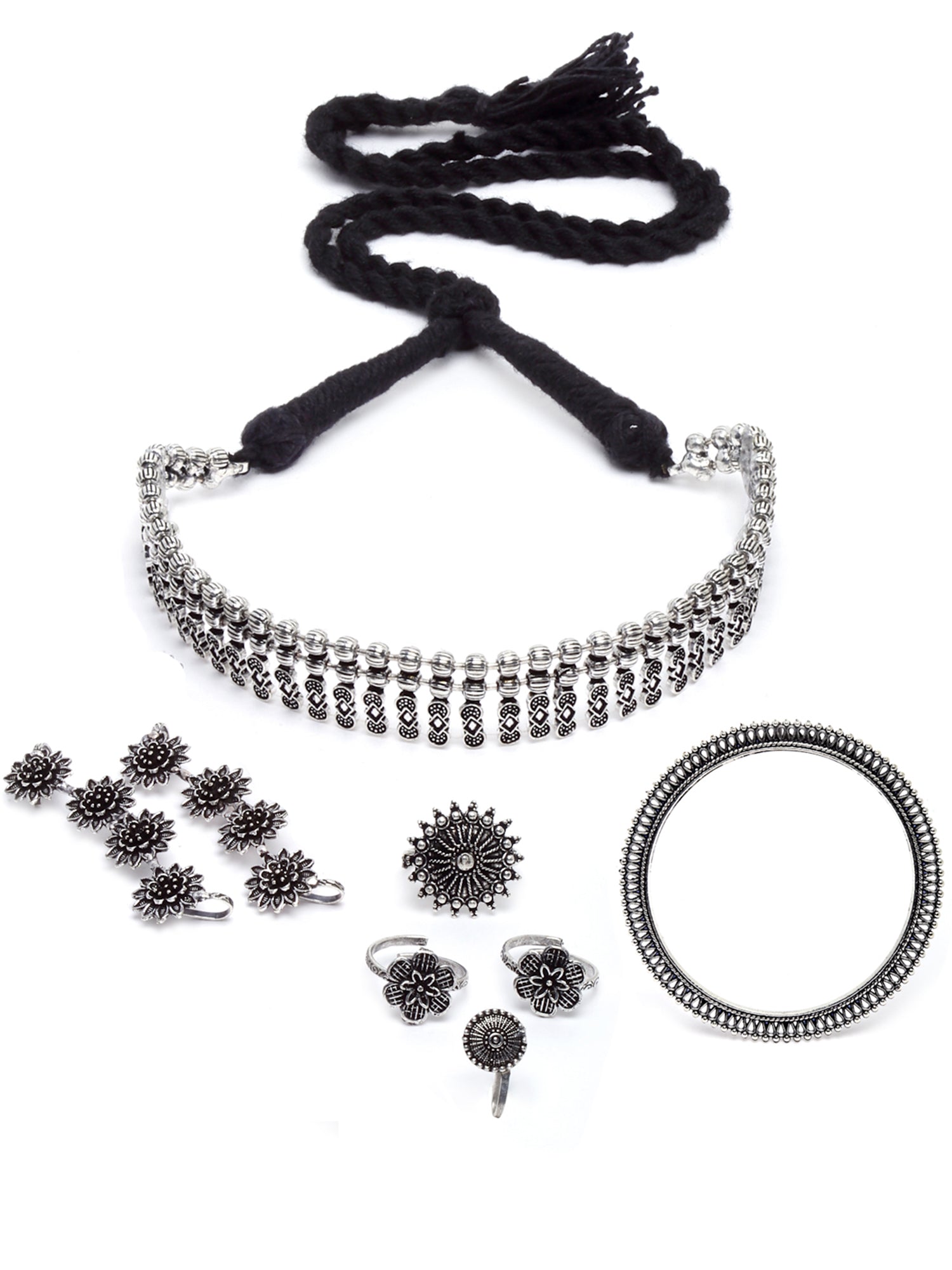 - Karatcart Oxidised Silver Combo Tribal Jewellery Set for Womens. Our products are designed with high-quality Kundan Stones and these products are enhanced with plating that are skin-friendly & with love to reach your heart.