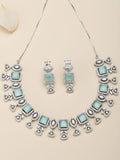 Karatcart Silver Plated Light Green Square Shape Cubic Zirconia Necklace Set for Women