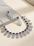 Karatcart Silver Plated Blue Cubic Zirconia Studded Necklace Set for Women