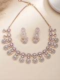 Karatcart Rose Gold Plated Pink Cubic Zirconia Studded Necklace Set for Women