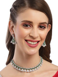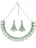Karatcart Silver Plated Triangle Shape Green Cubic Zirconia Studded Necklace Set for Women