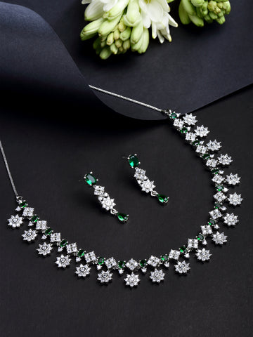 Karatcart Silver Plated Star Shape Green Cubic Zirconia Studded Necklace Set for Women