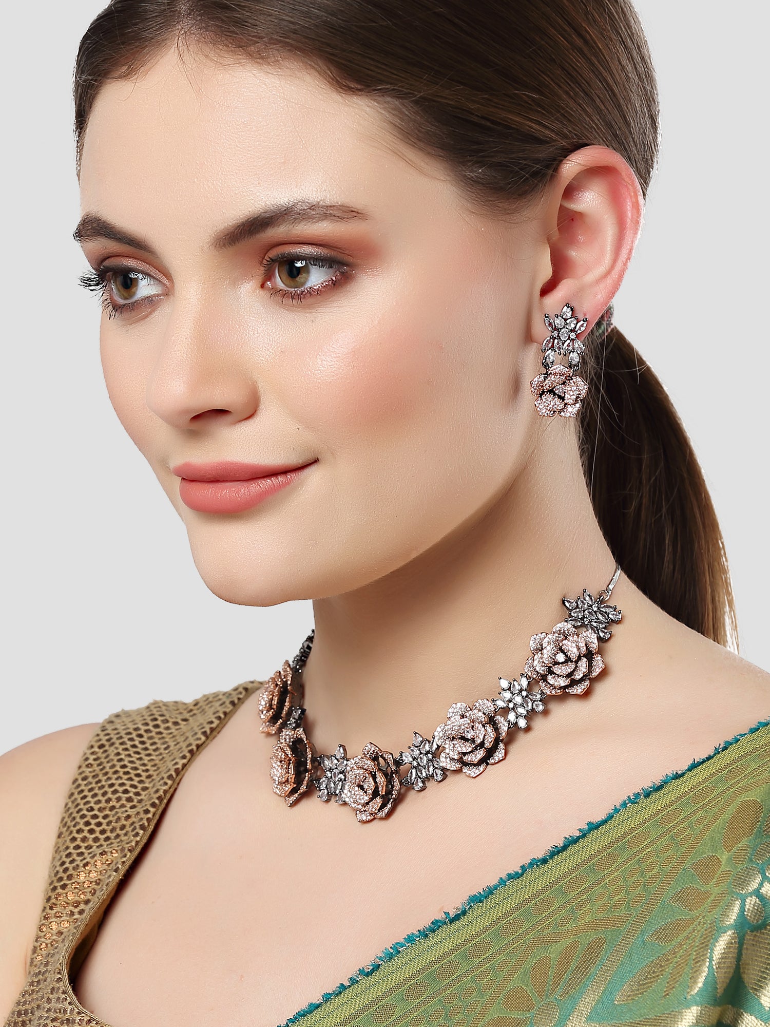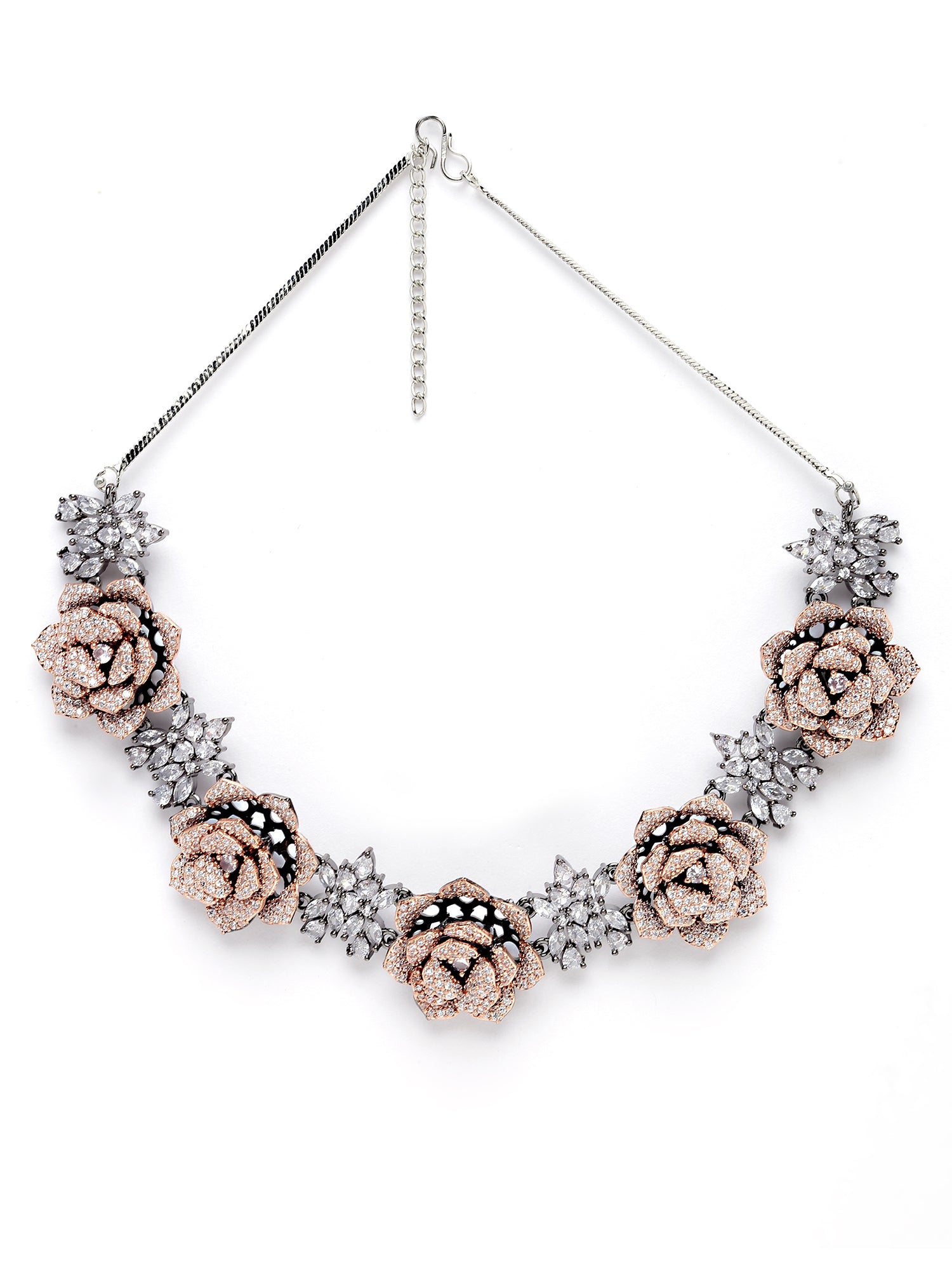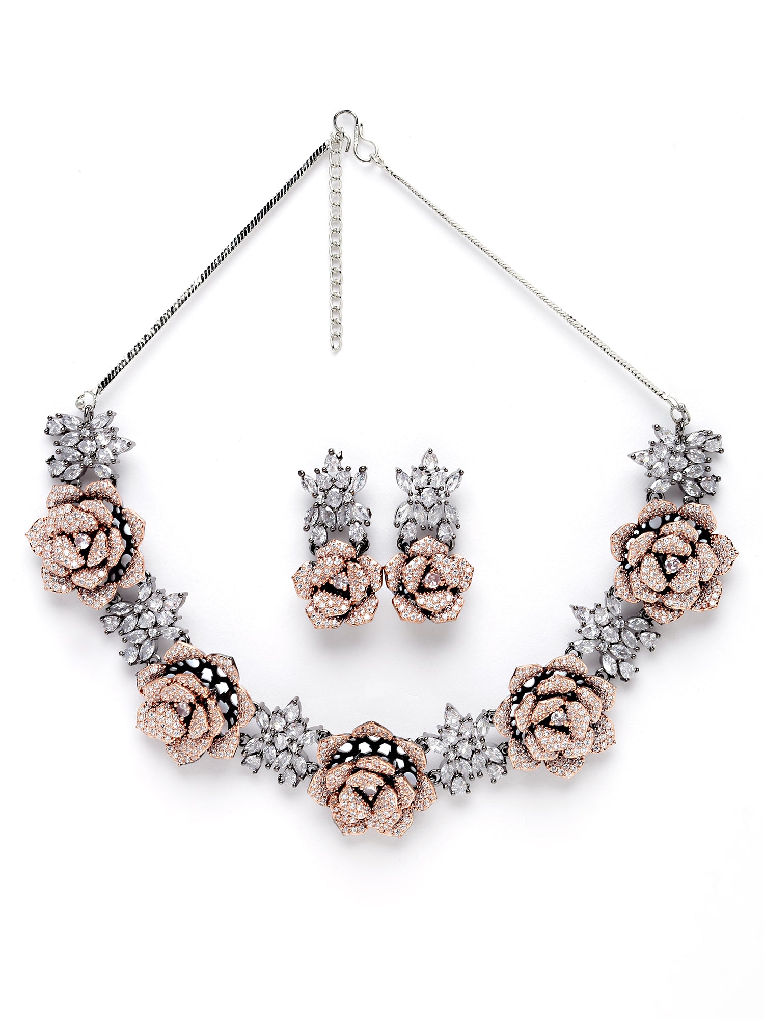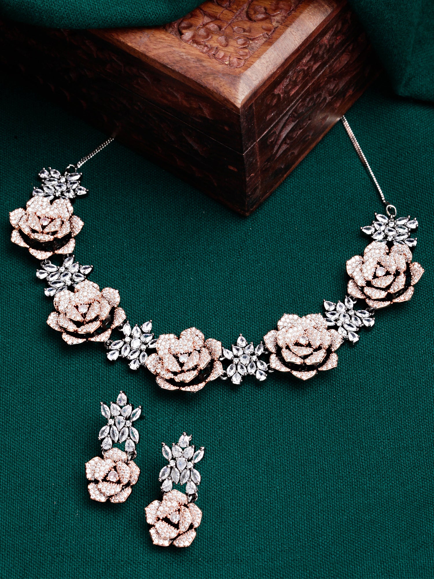 Karatcart Rose Shape Cubic Zirconia Studded Necklace Set for Women