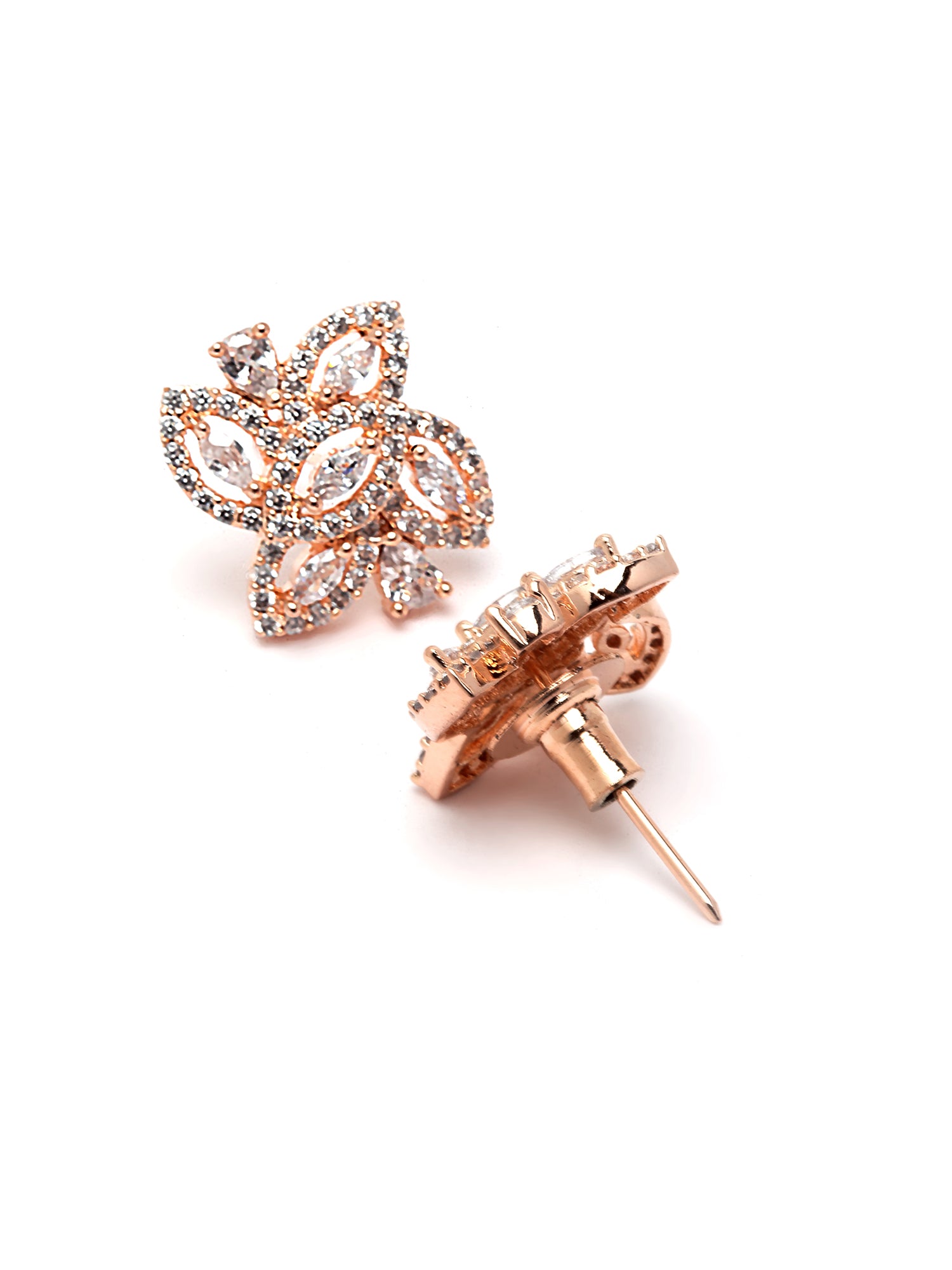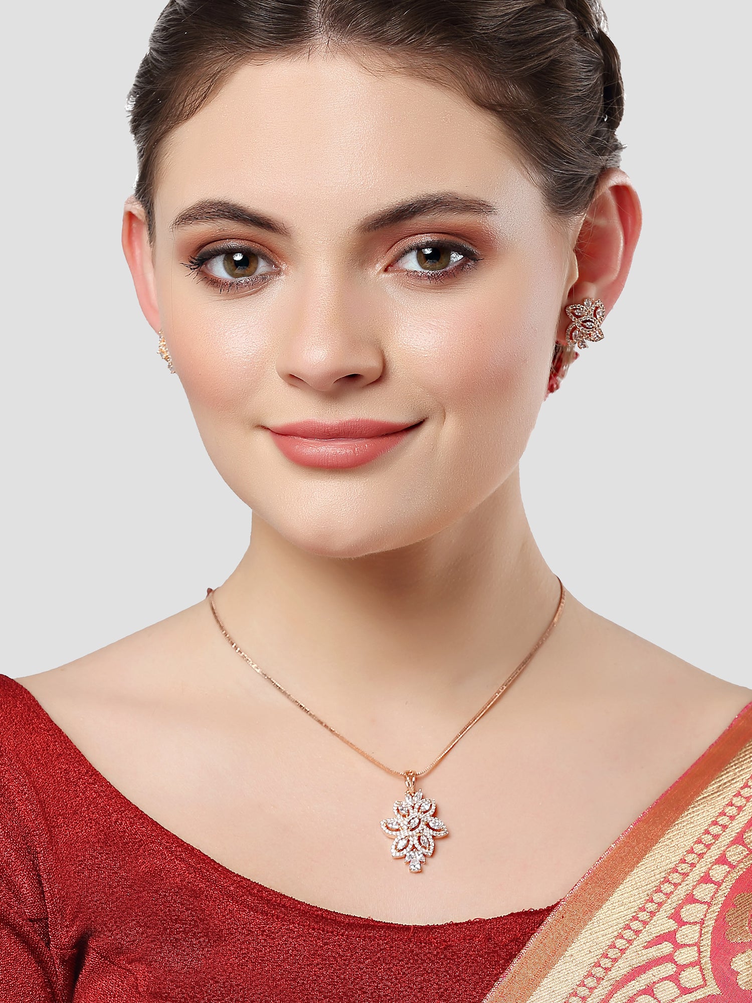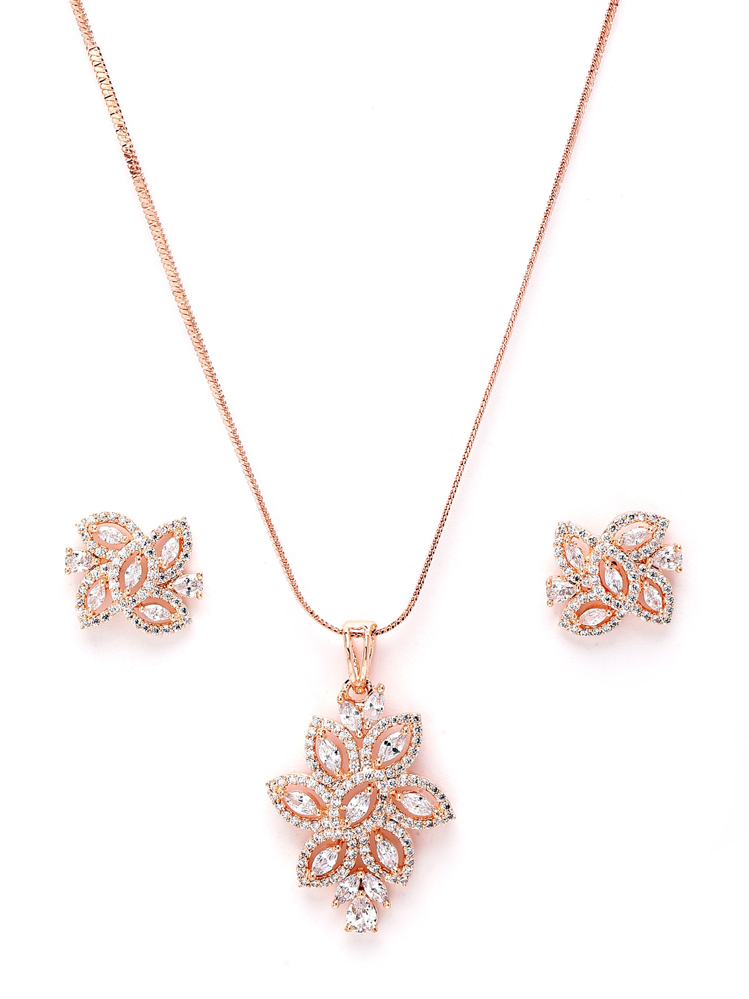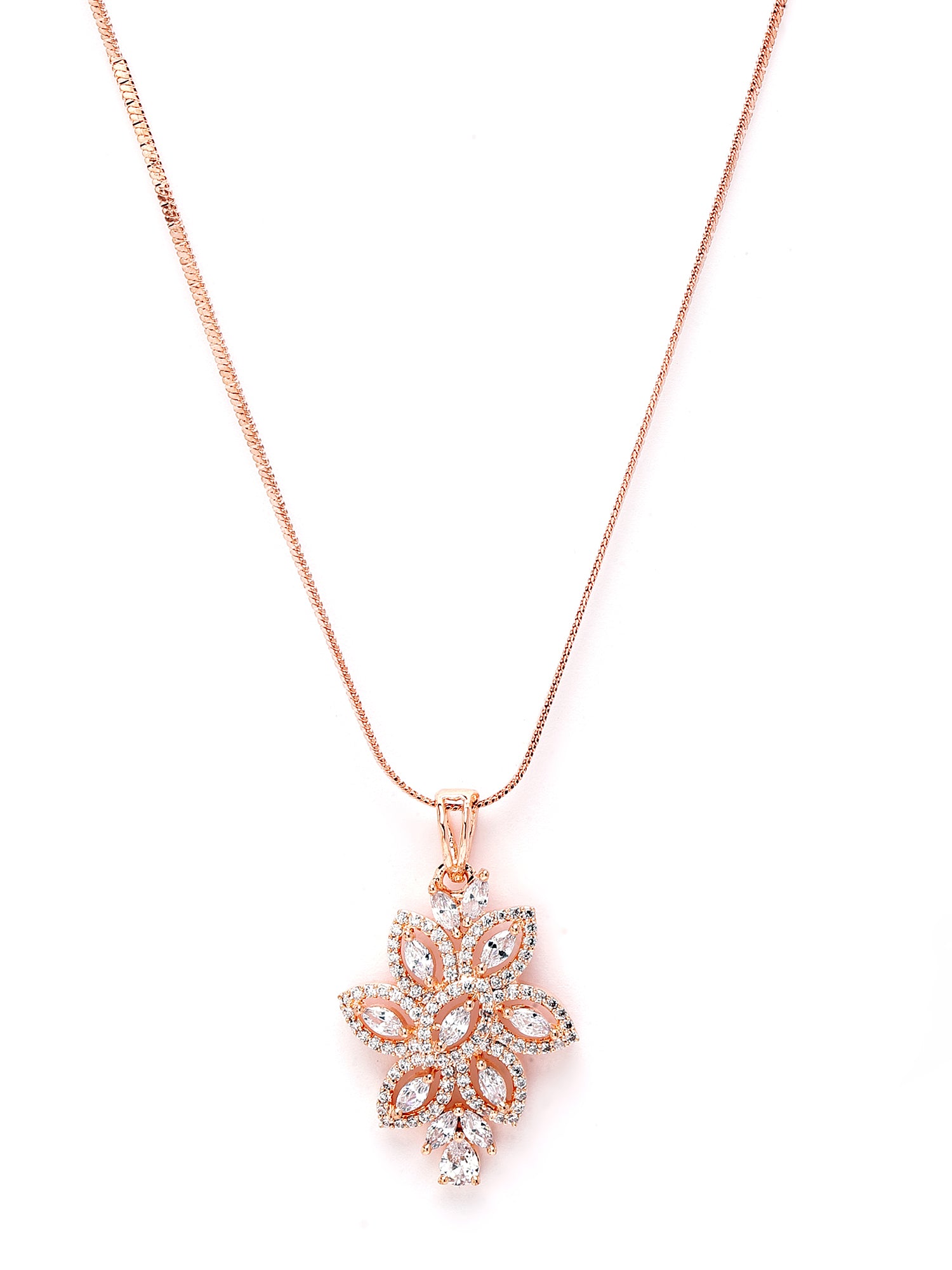 Karatcart Floral Rose Gold Plated Cubic Zirconia Studded Pendant Set for Women