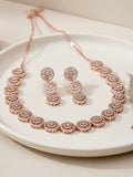 Karatcart Rose Gold Plated Round Design CZ Stone Studded Jewellery Set