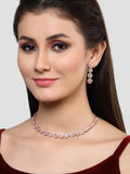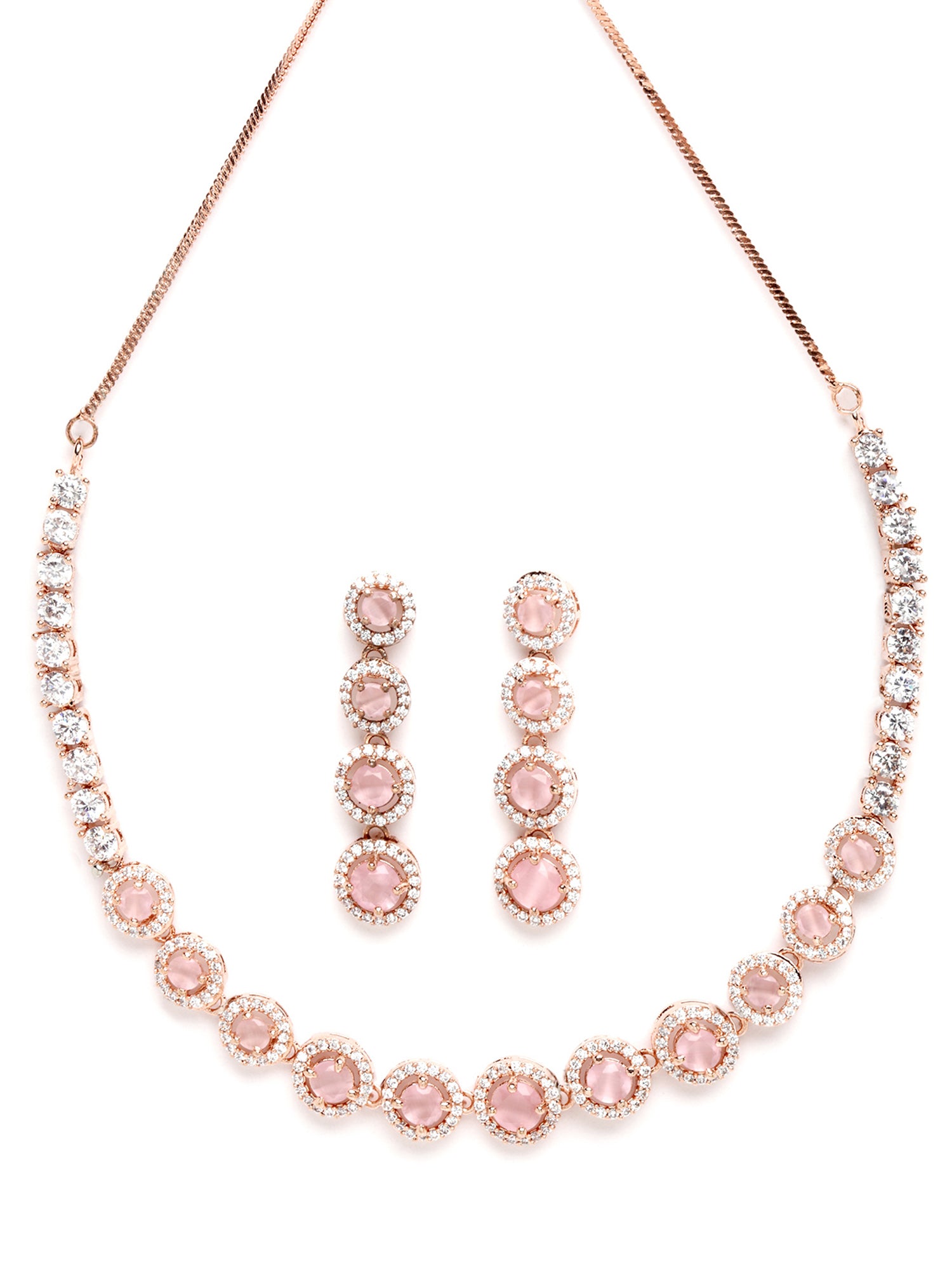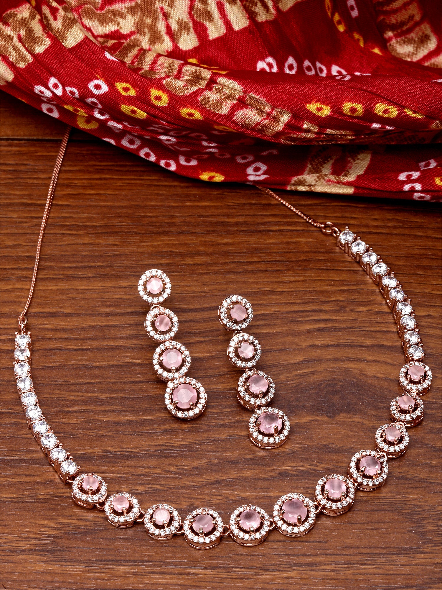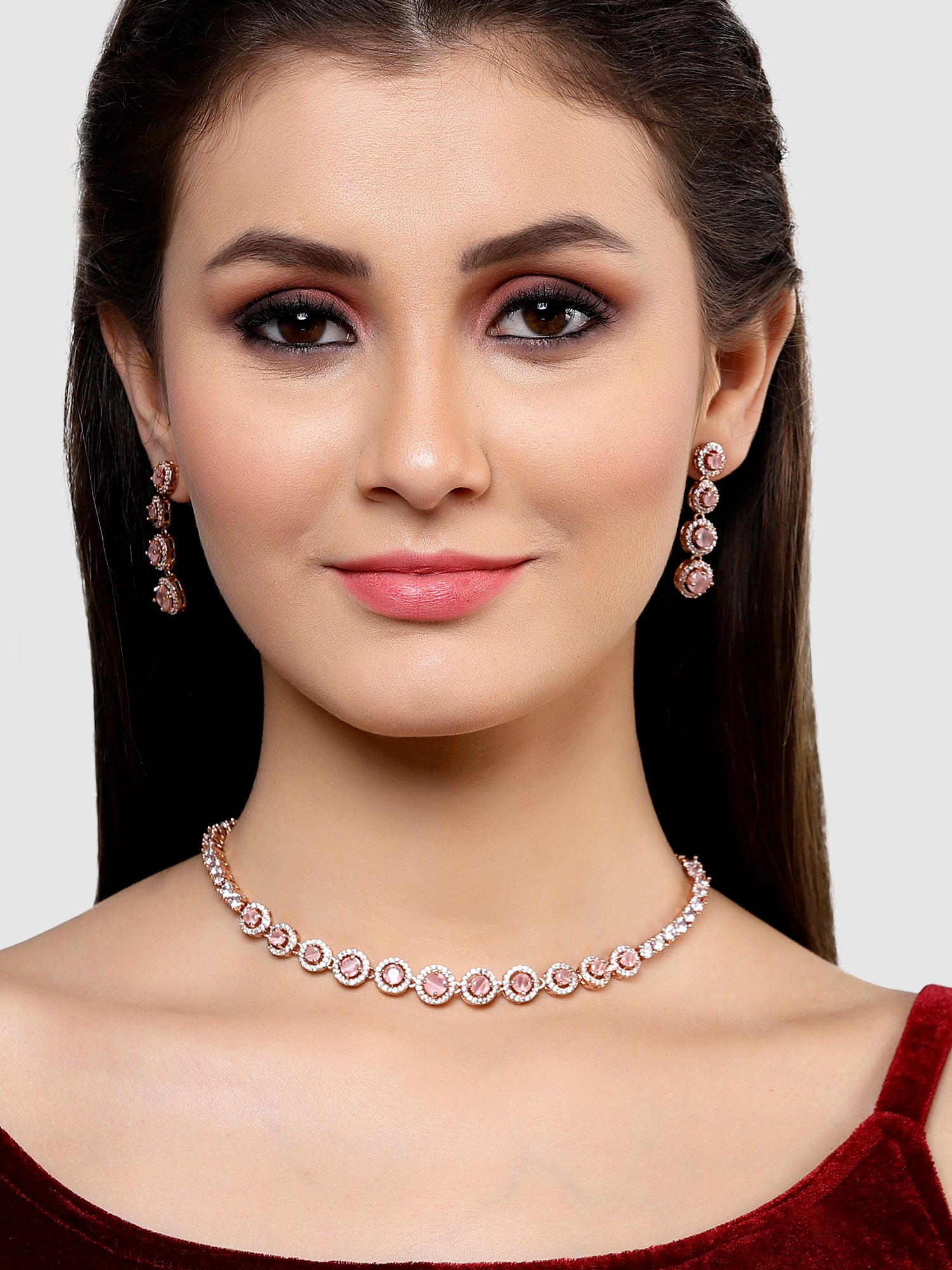 Karatcart Rose Gold Plated Pink CZ Stone Studded Jewellery Set