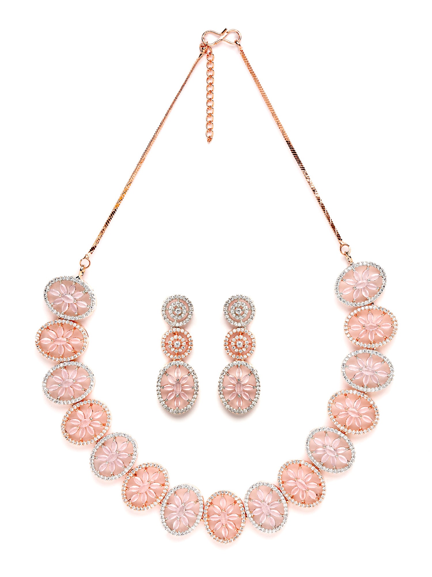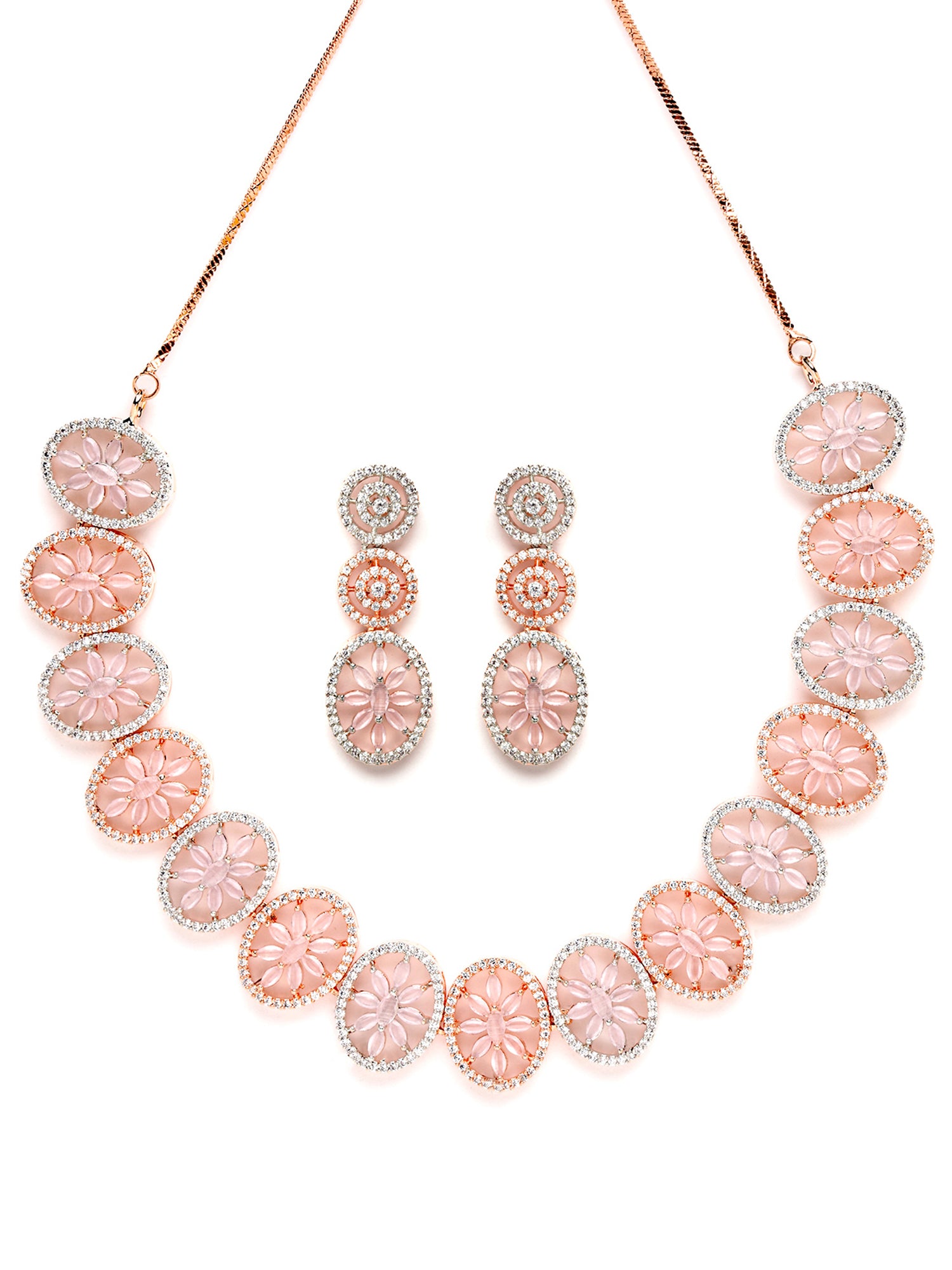 - This is a Rose Gold Jewellery Set by Brand Karatcart which has American Diamond stones.This is Rose Gold Plated. We at KARATCART understand your desire to look the best on any day & we thrive in making any day an occasion. Every individual at Karatcart carries a passion for jewellery and it reflects in our beautiful designs as well as in our breathtaking craftsmanship. We create unique jewellery so you can make heads turn..