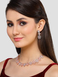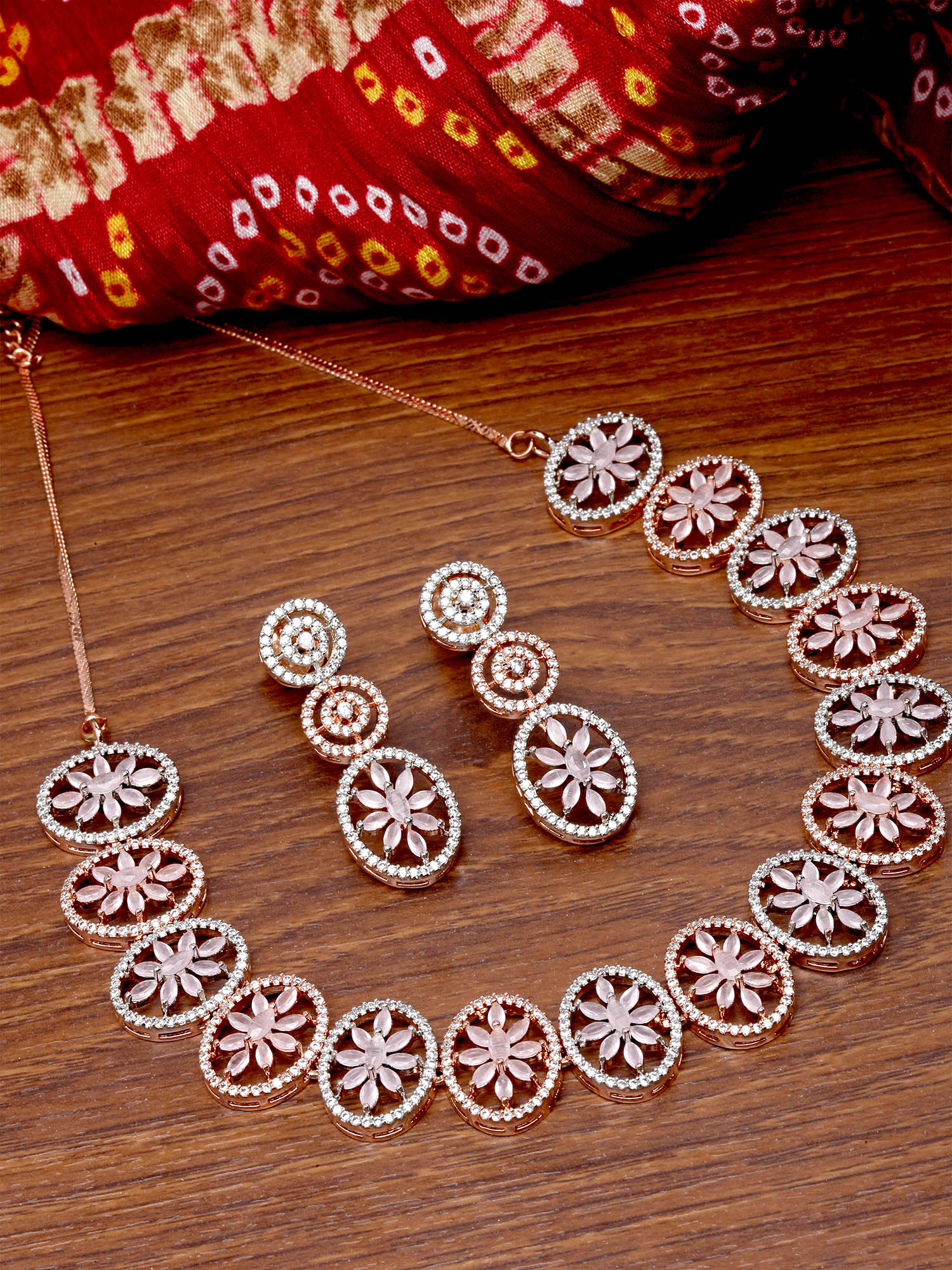 Karatcart Rose Gold Plated Pink Floral CZ Stone Studded Jewellery Set