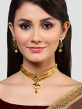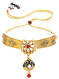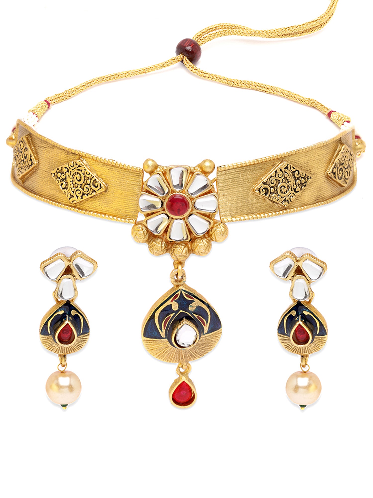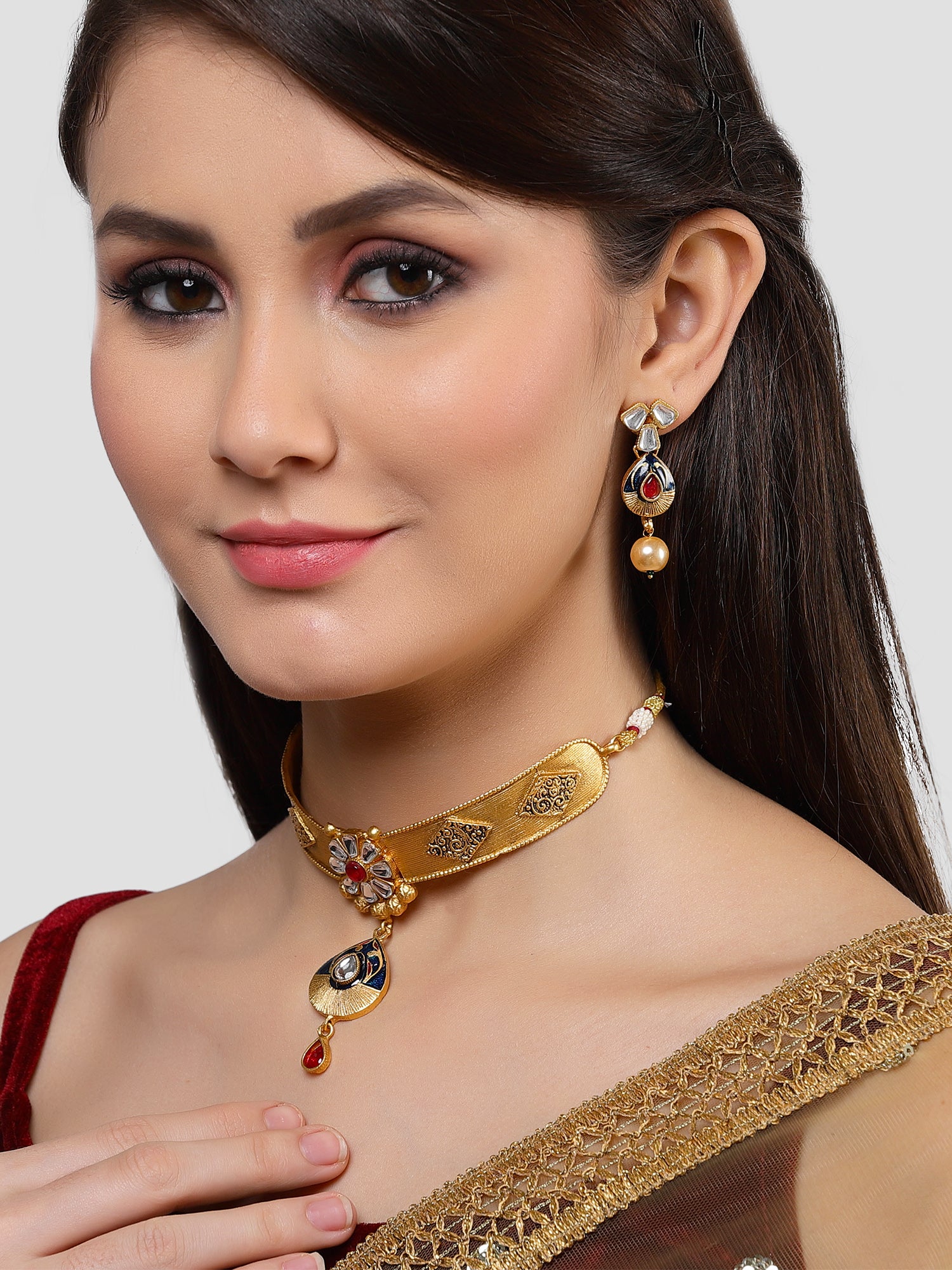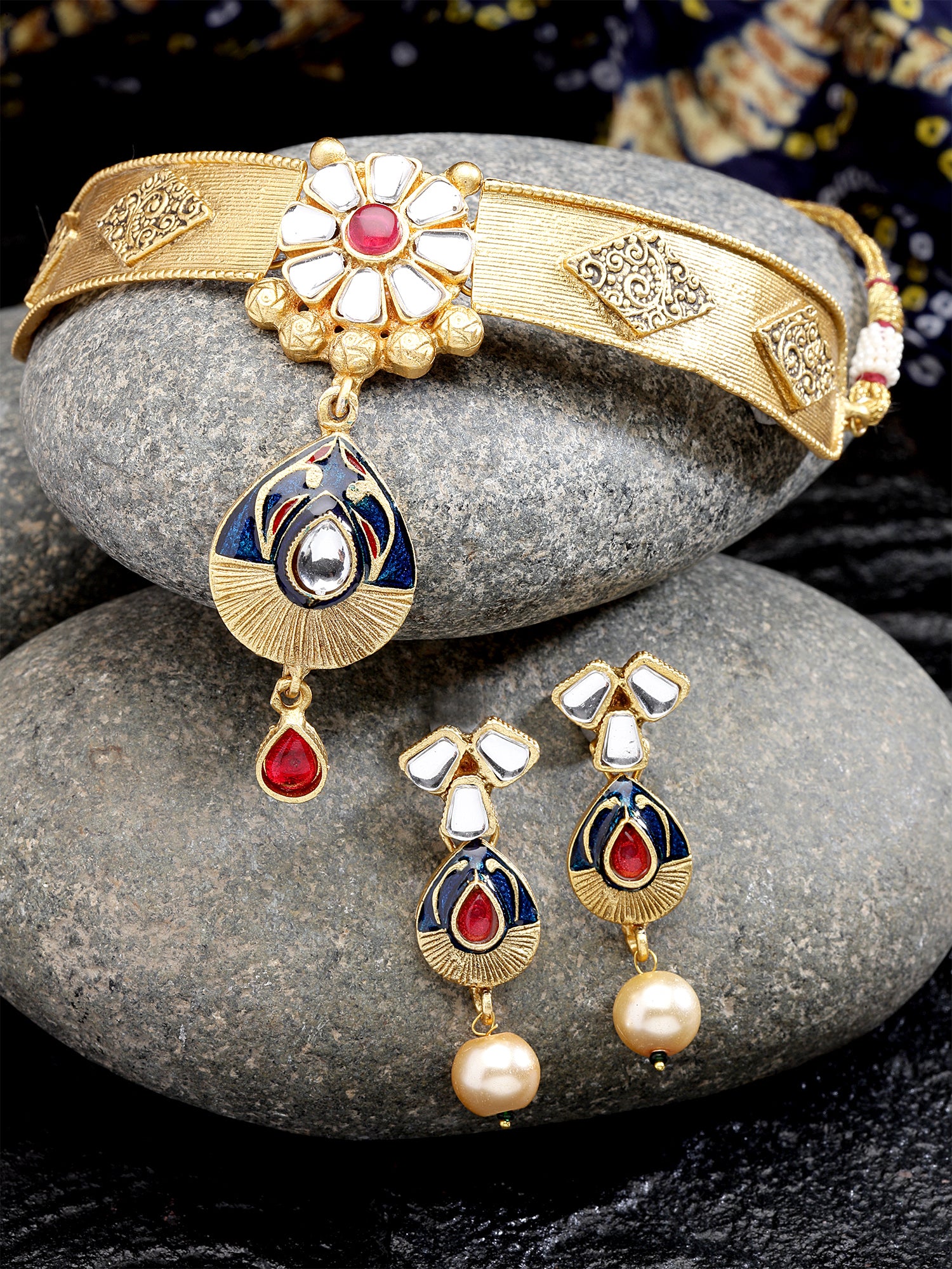 Karatcart Gold Plated Navy Blue Meena Tribal Choker Necklace Set