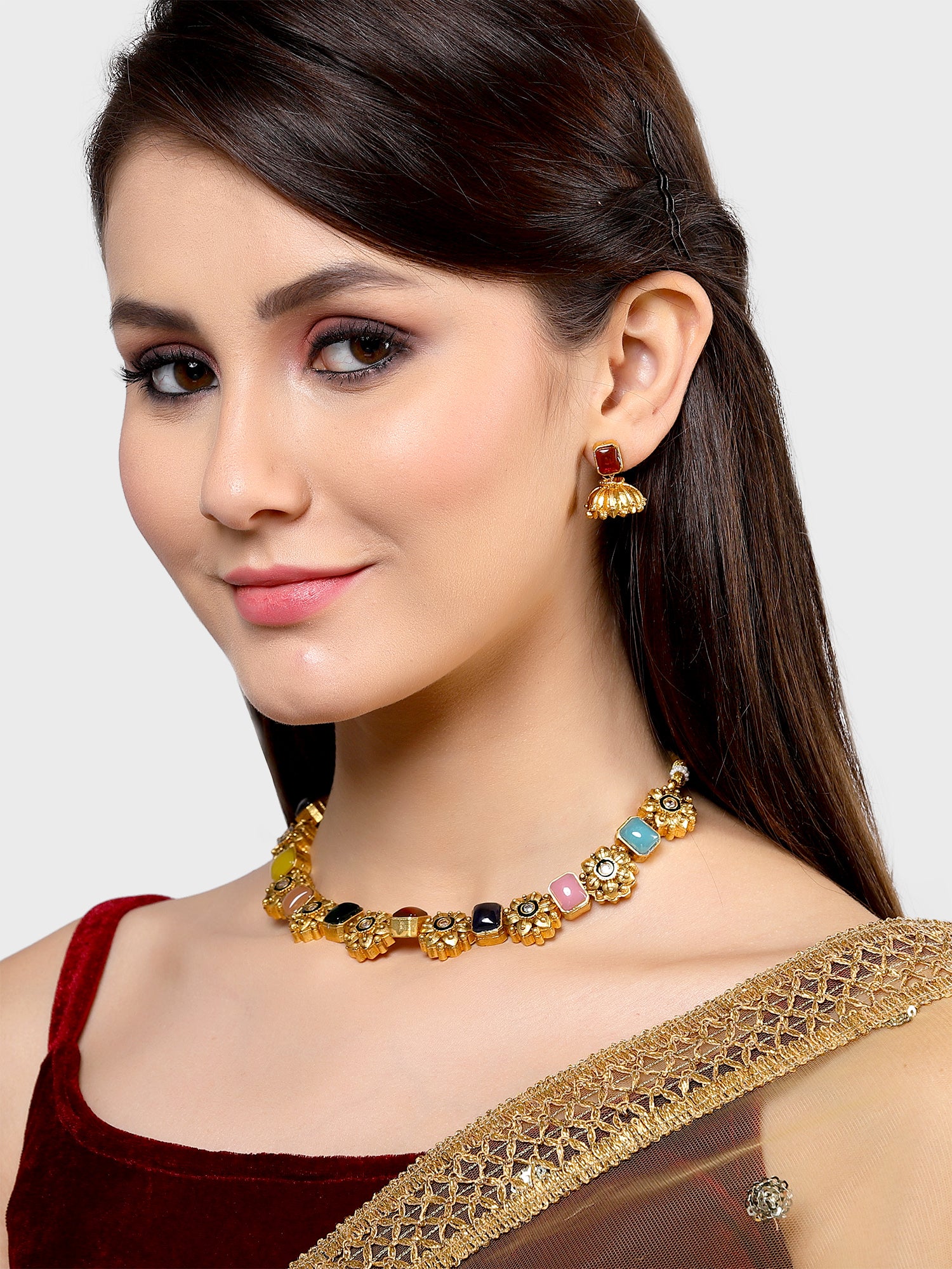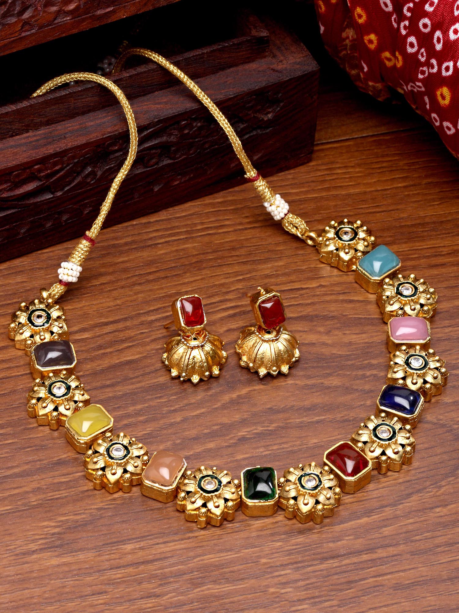 - This is a Multi Jewellery Set by Brand Karatcart which has Navratan stones.This is Gold Plated. We at KARATCART understand your desire to look the best on any day & we thrive in making any day an occasion. Every individual at Karatcart carries a passion for jewellery and it reflects in our beautiful designs as well as in our breathtaking craftsmanship. We create unique jewellery so you can make heads turn..