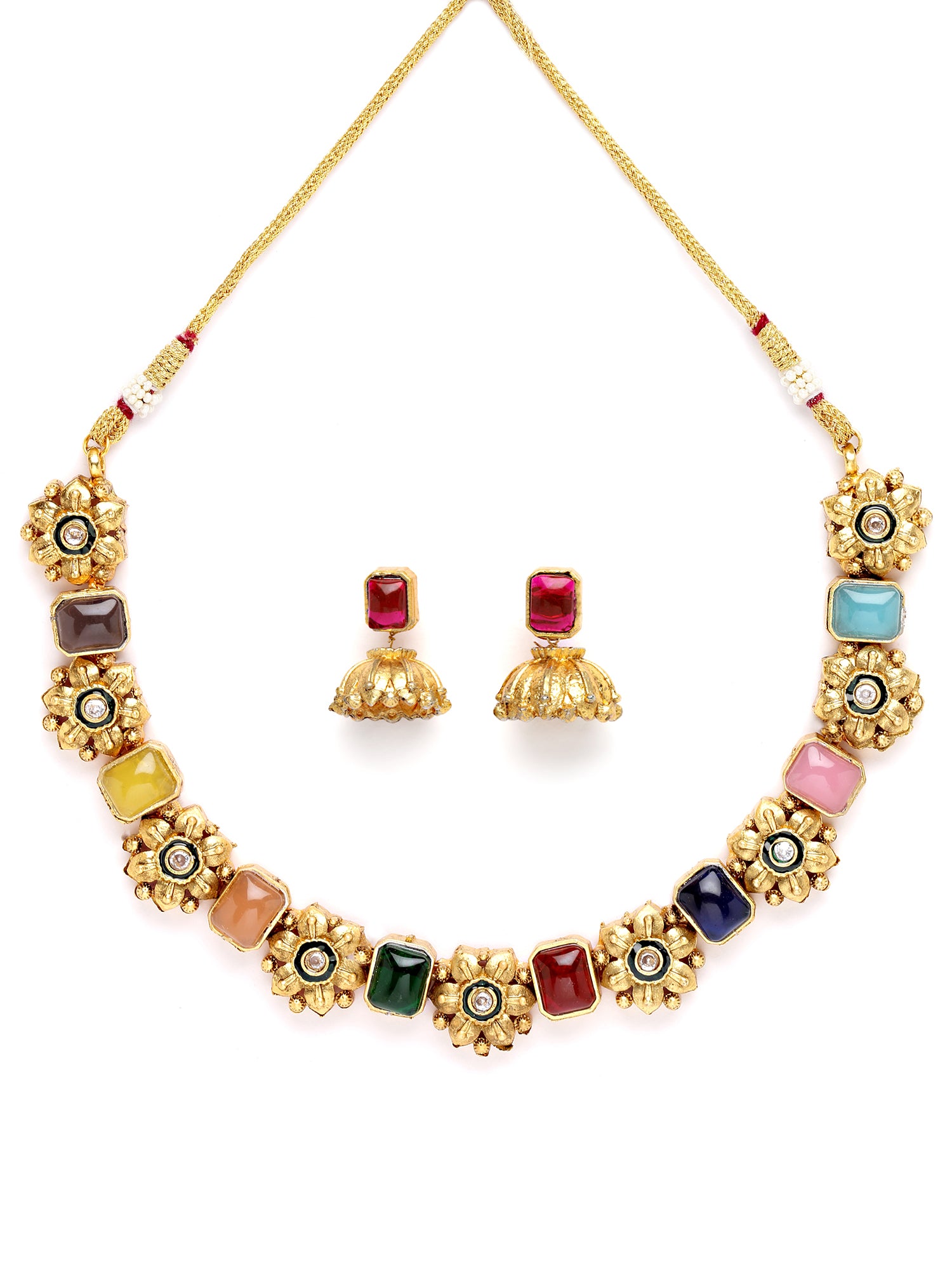 Karatcart Gold Plated Multicolor Stones Studded Floral Design Necklace Set