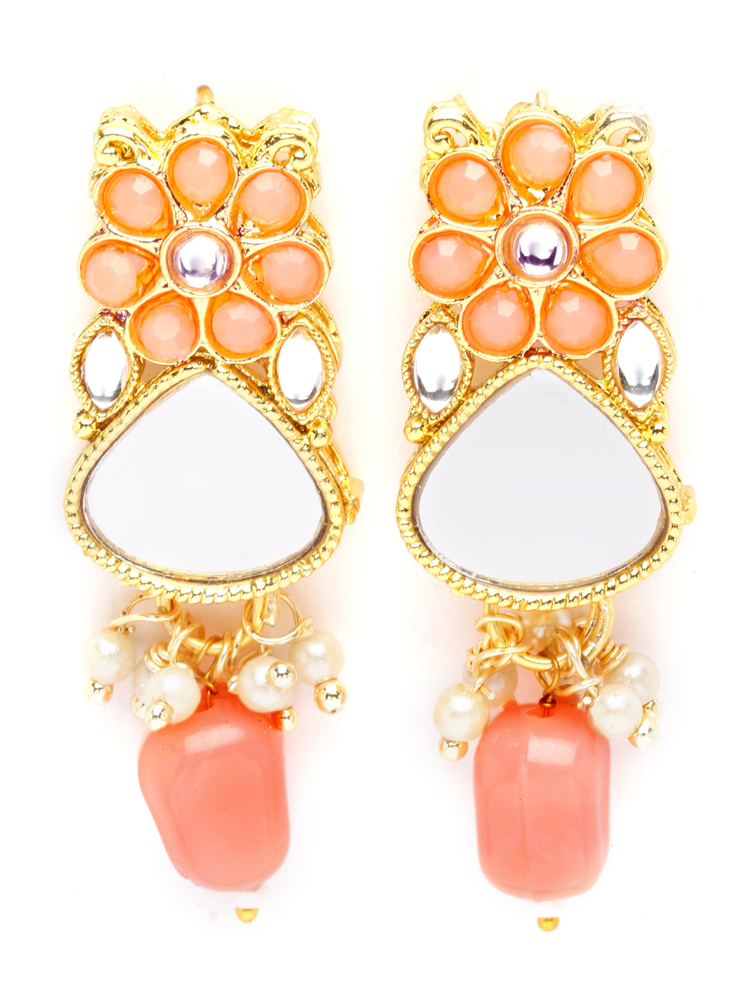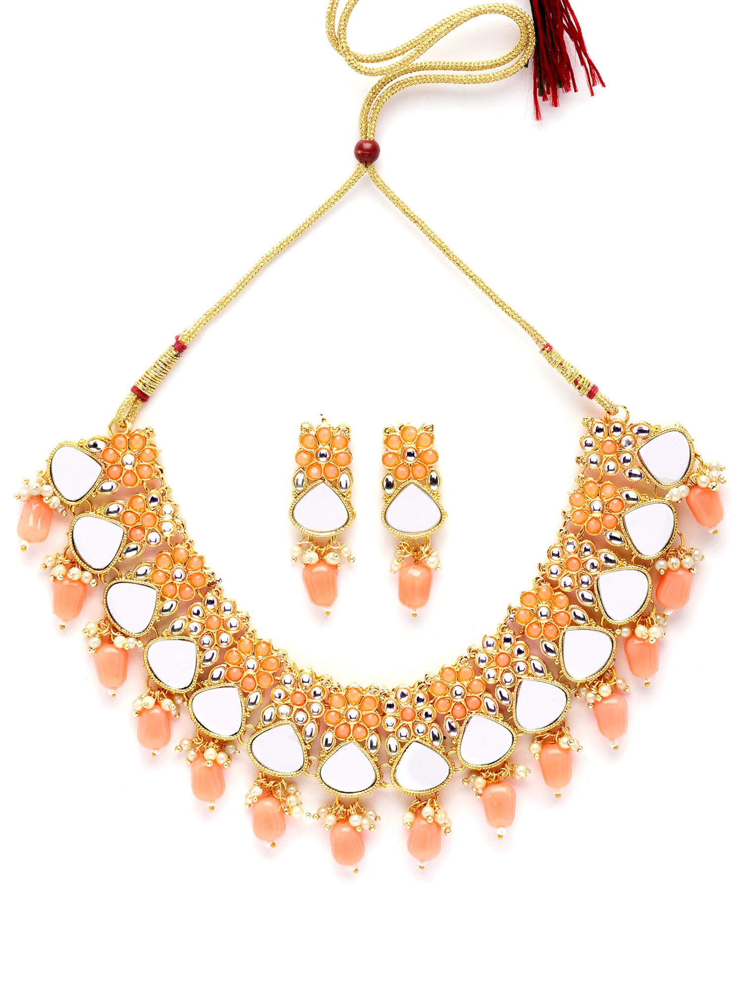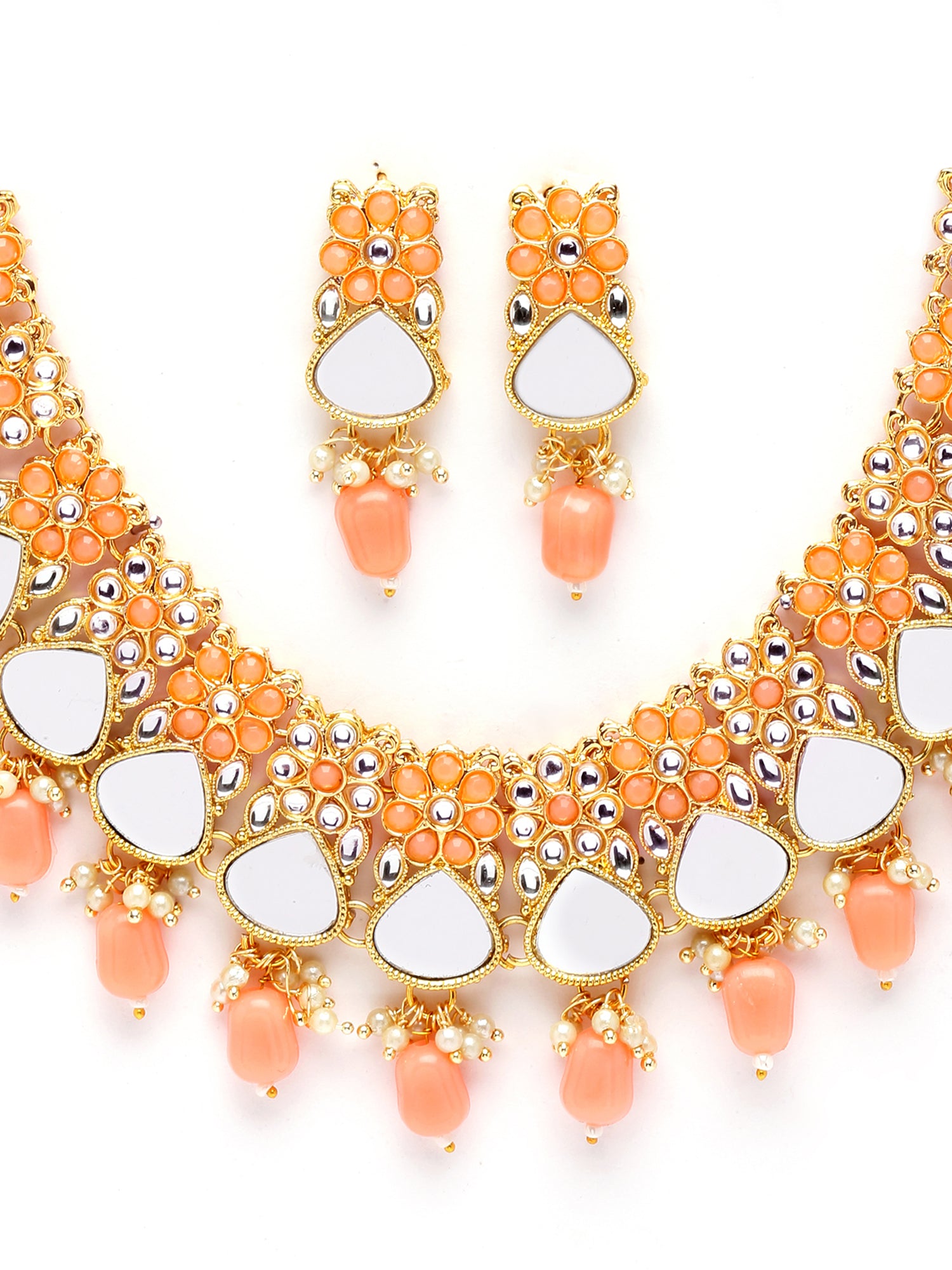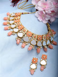 Karatcart Gold Plated Mirror Studded Peach Tumble Kundan Necklace Set