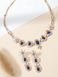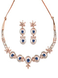 Karatcart Rose Gold Plated Blue CZ Studded Necklace Set