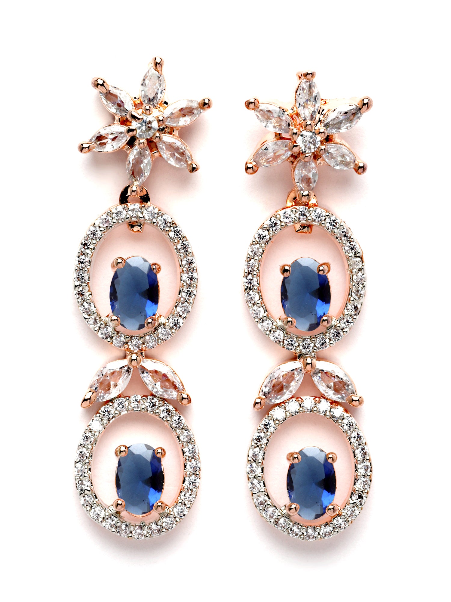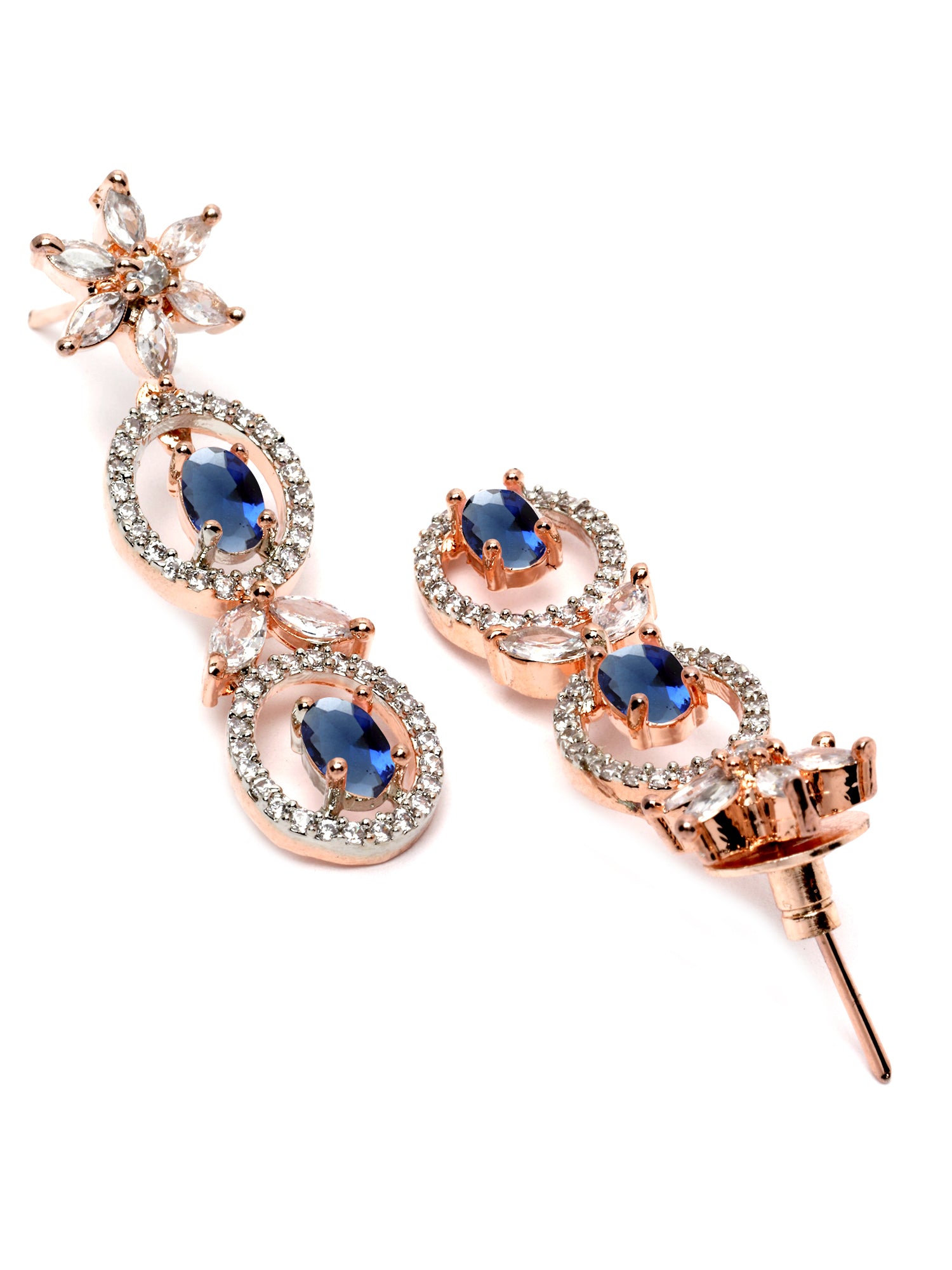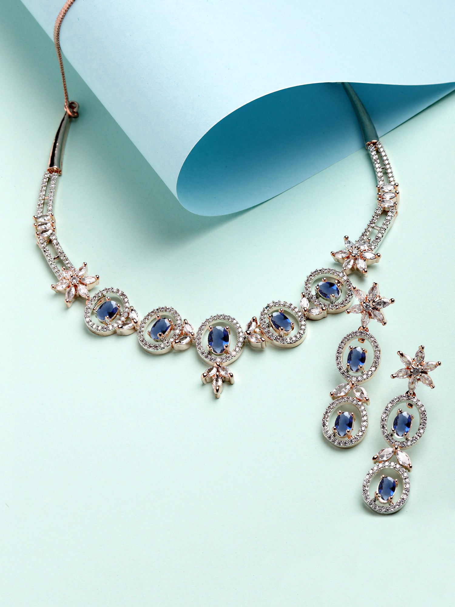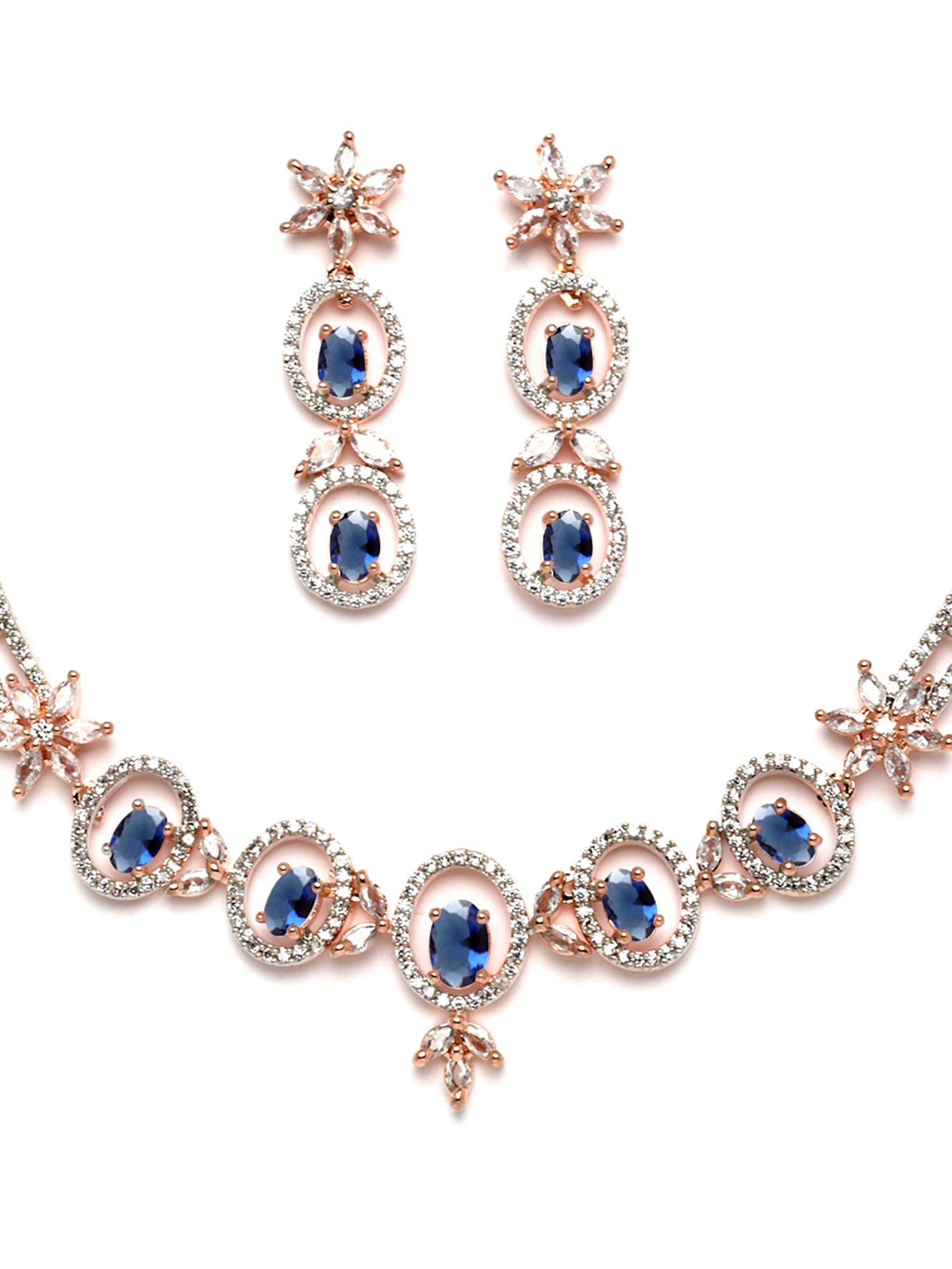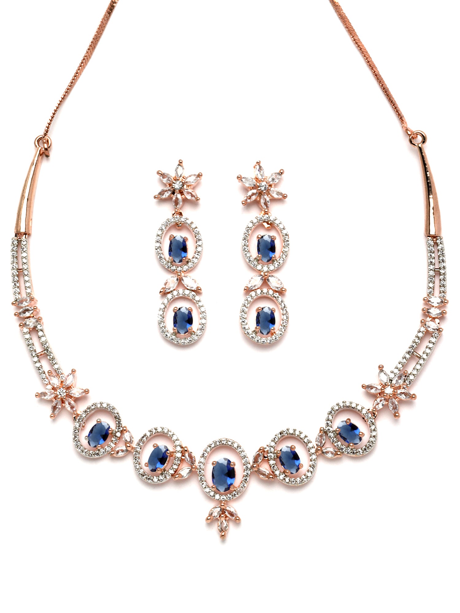 - This is a Blue Jewellery Set by Brand Karatcart which has American Diamond stones.This is Rose Gold Plated. We at KARATCART understand your desire to look the best on any day & we thrive in making any day an occasion. Every individual at Karatcart carries a passion for jewellery and it reflects in our beautiful designs as well as in our breathtaking craftsmanship. We create unique jewellery so you can make heads turn..
