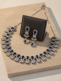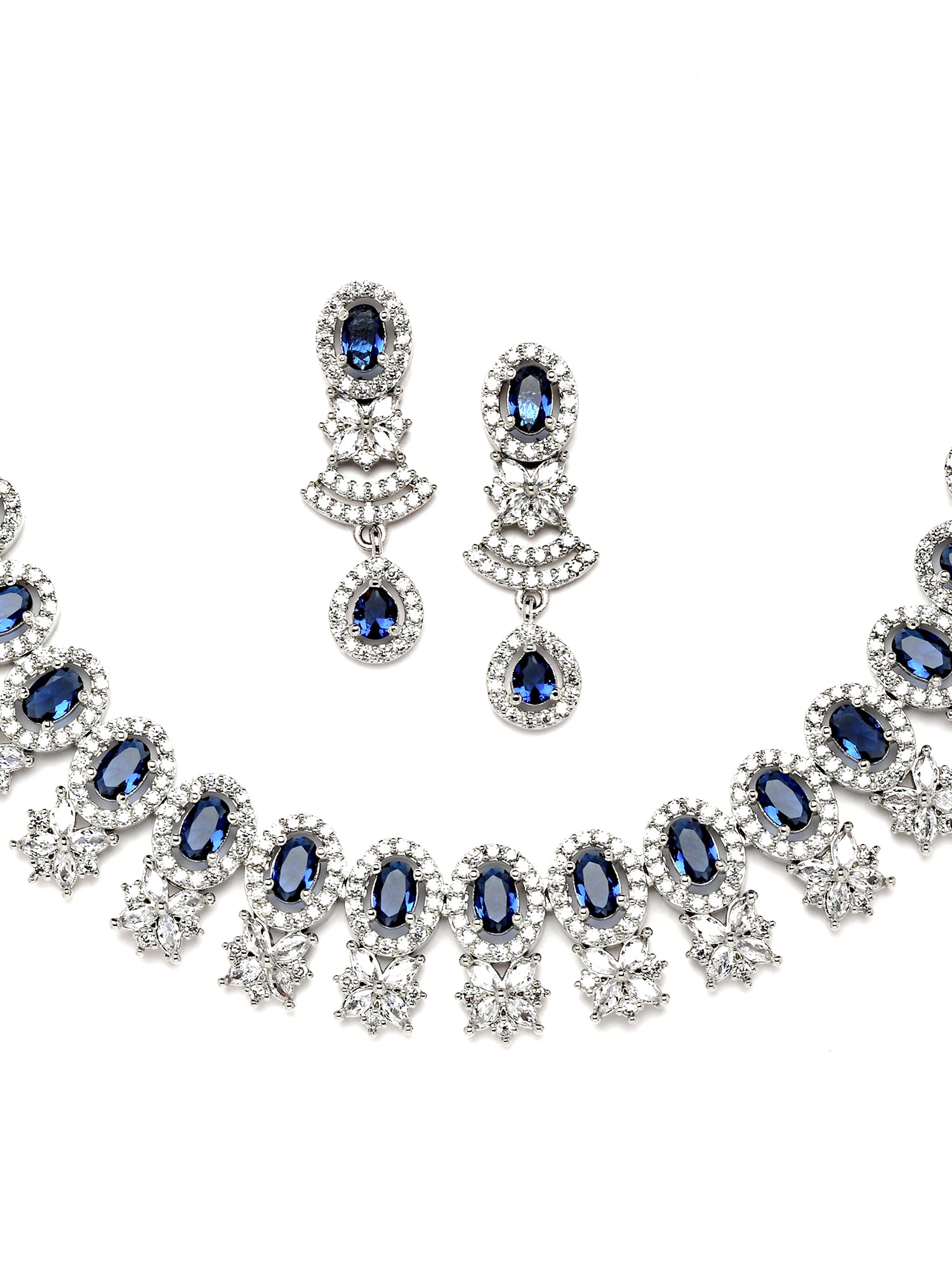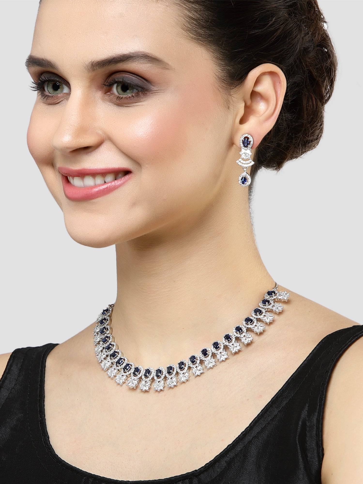 Karatcart Silver Plated Blue Cubic Zirconia Studded Necklace Set