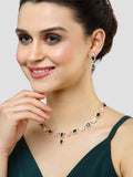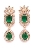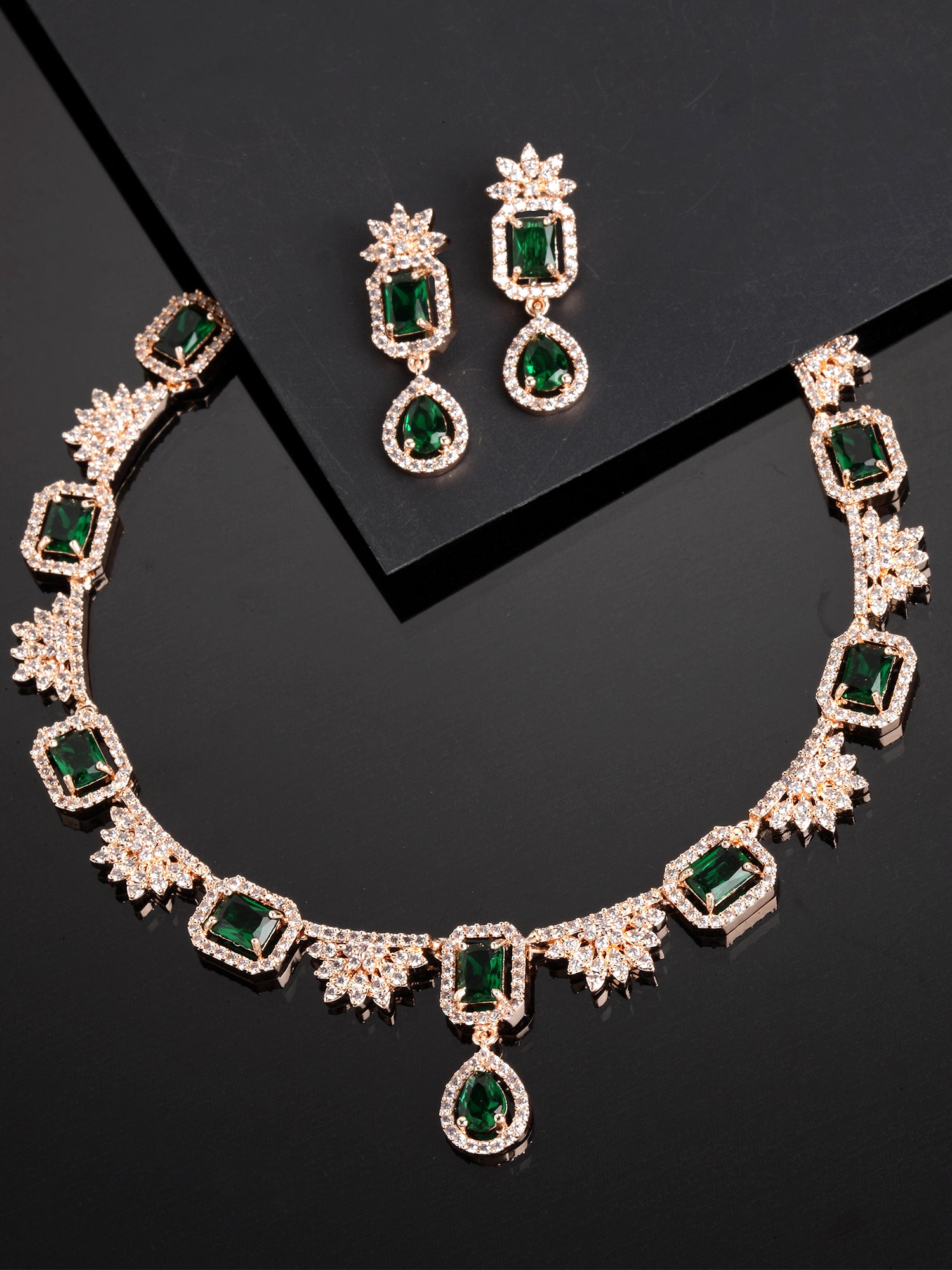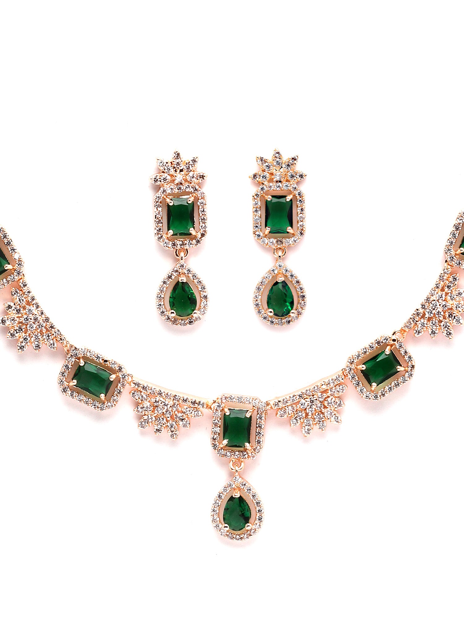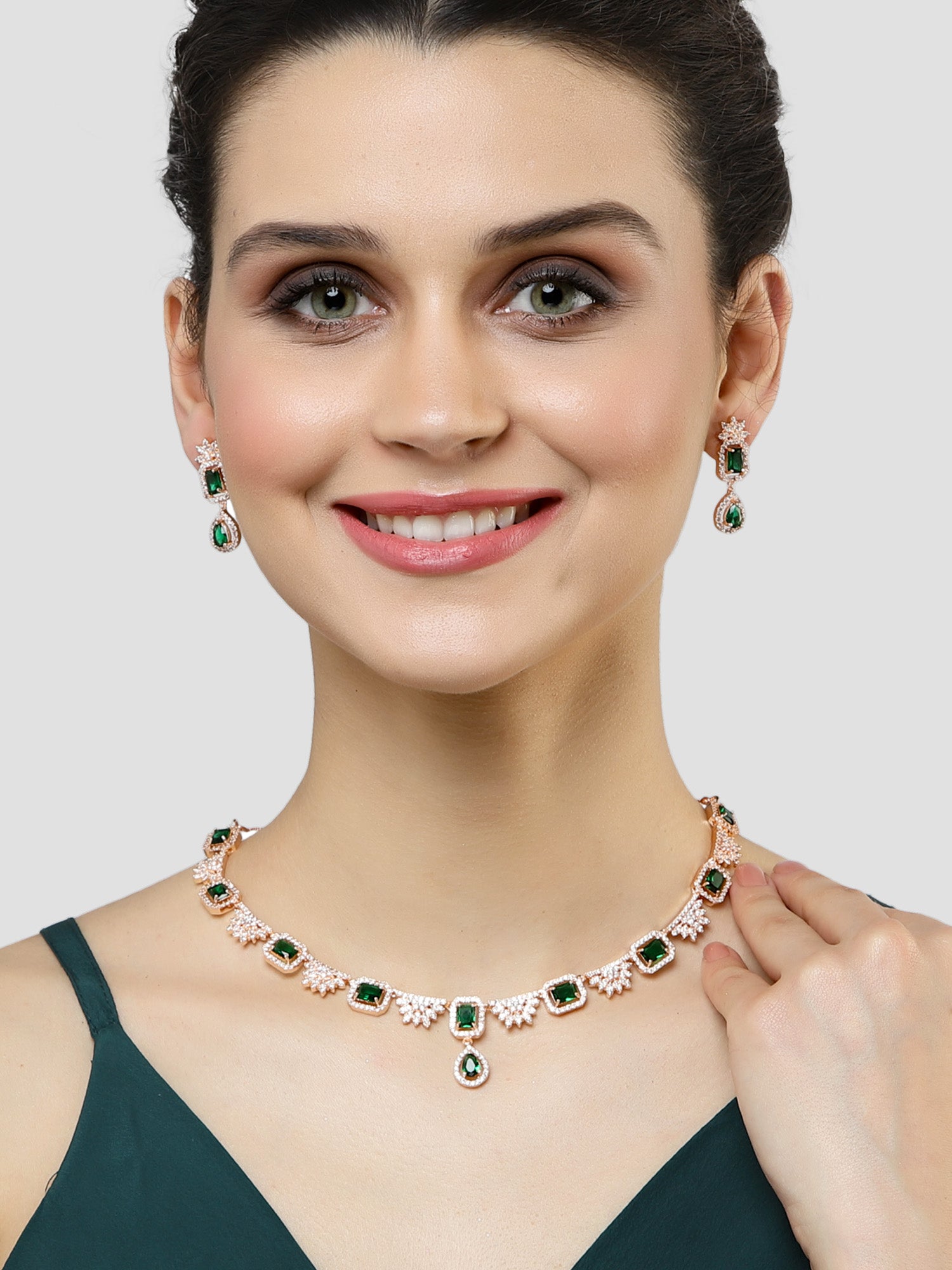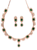 Karatcart Rose Gold Plated Floral Design Green Cubic Zirconia Studded Necklace Set