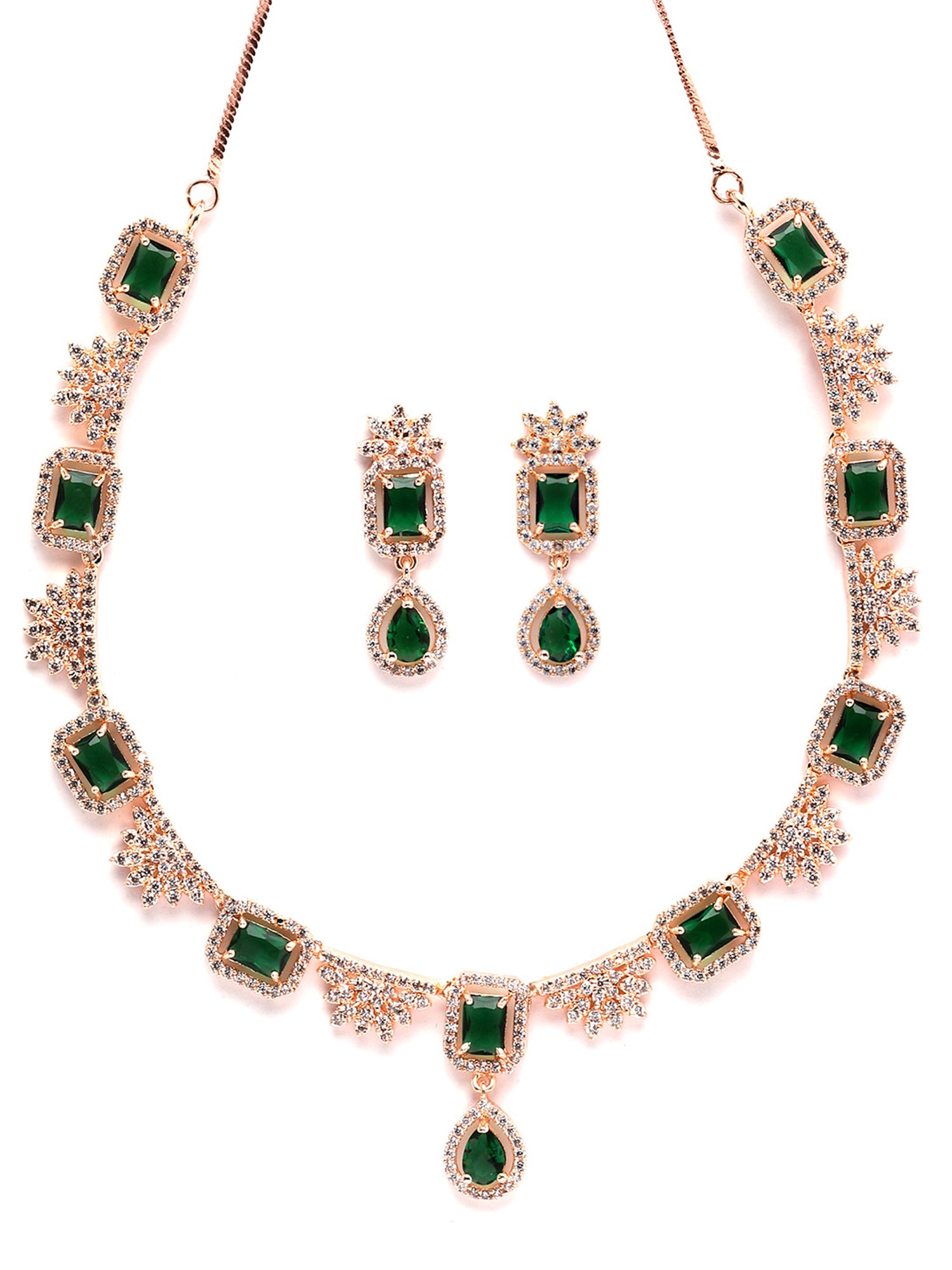 - This is a Green Jewellery Set by Brand Karatcart which has American Diamond stones.This is Rose Gold Plated. We at KARATCART understand your desire to look the best on any day & we thrive in making any day an occasion. Every individual at Karatcart carries a passion for jewellery and it reflects in our beautiful designs as well as in our breathtaking craftsmanship. We create unique jewellery so you can make heads turn..