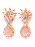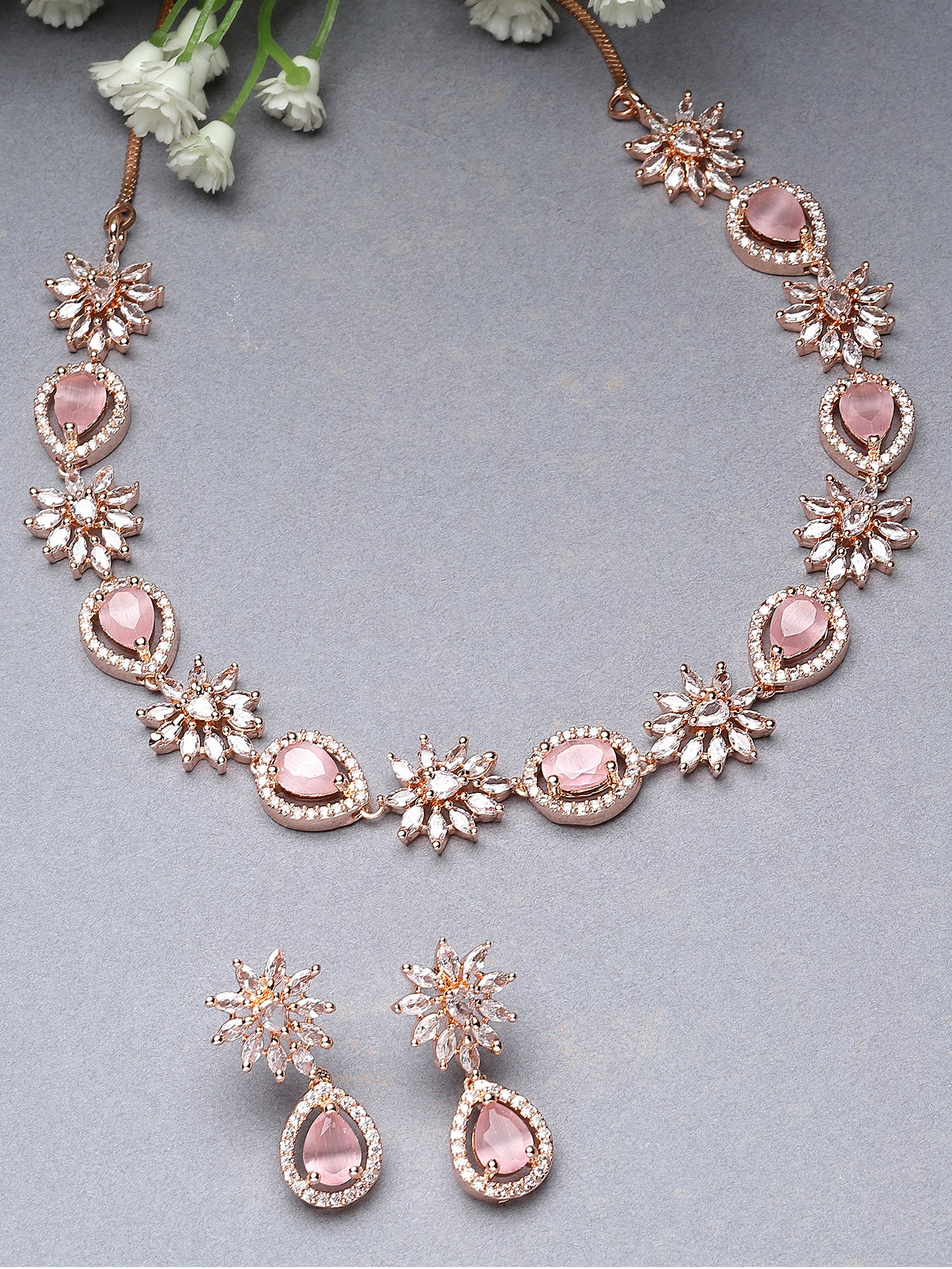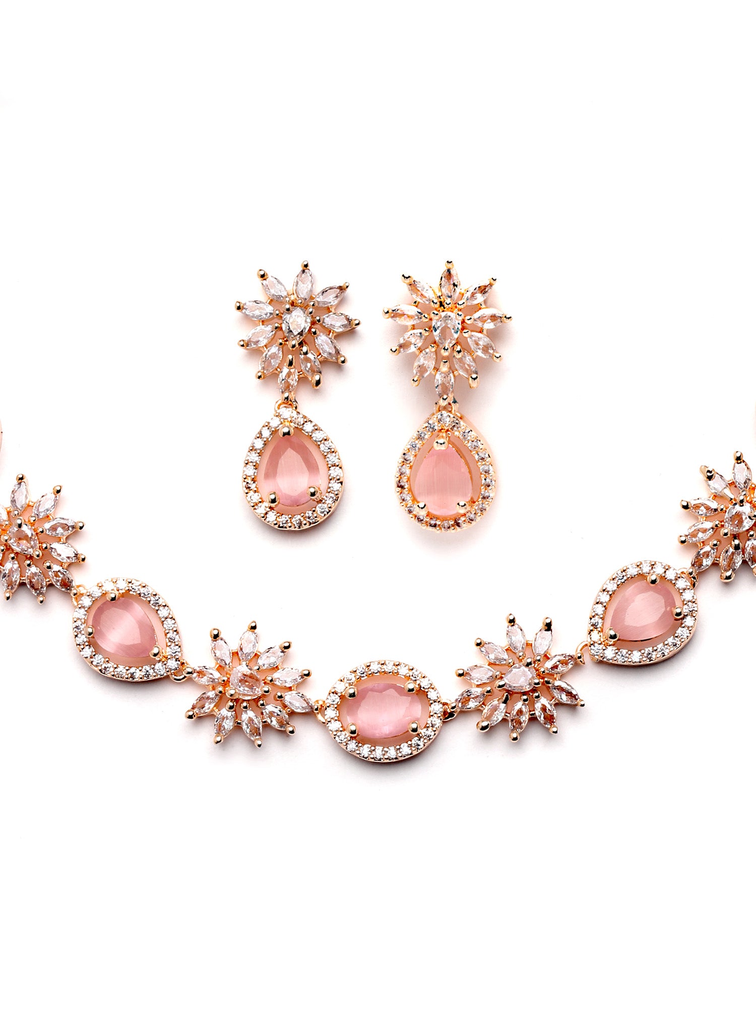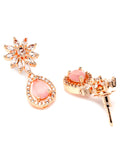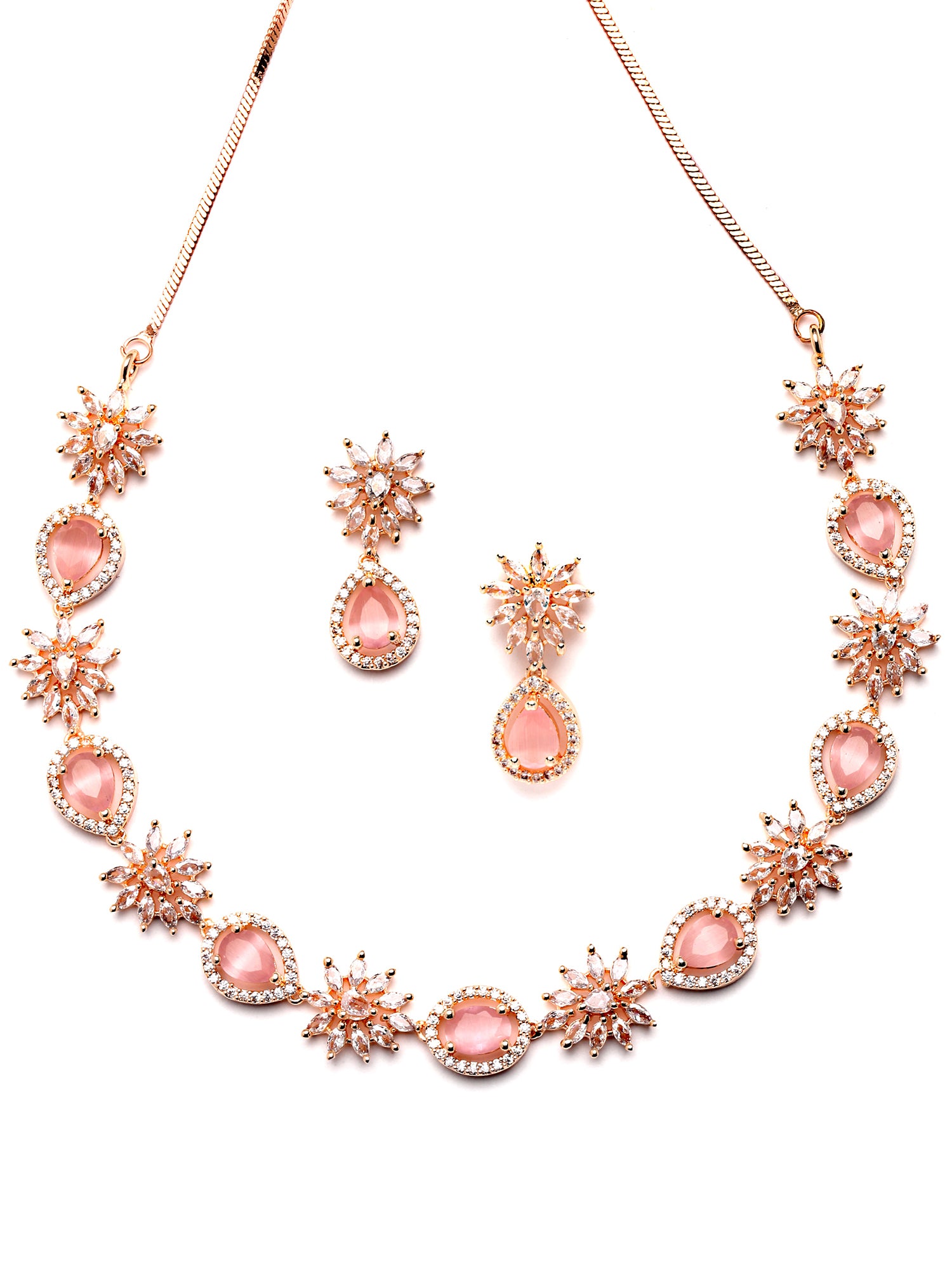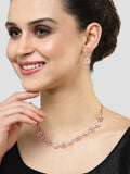 Karatcart Floral Design Pink Cubic Zirconia Studded Rose Gold Plated Necklace Set
