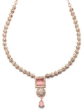 Karatcart Pink American Diamond Studded Rose Gold Plated Necklace Set for Women