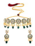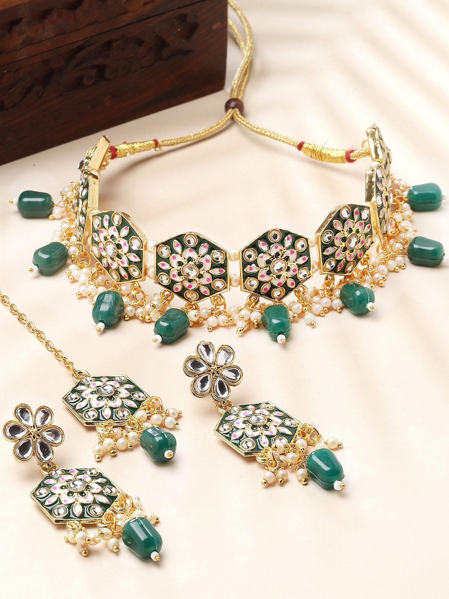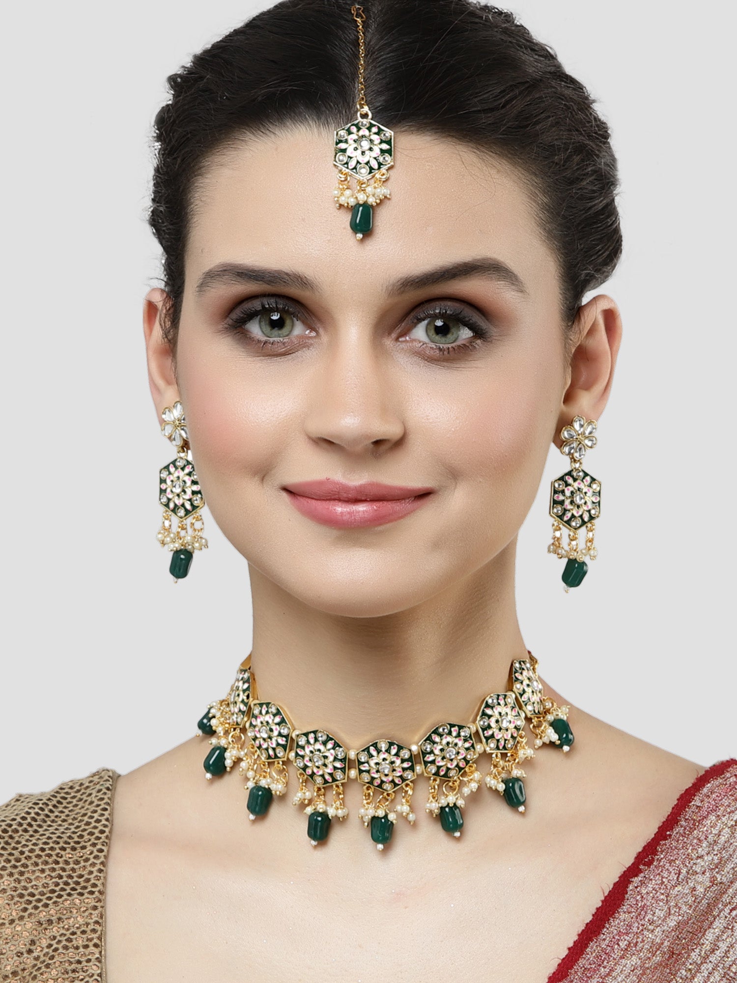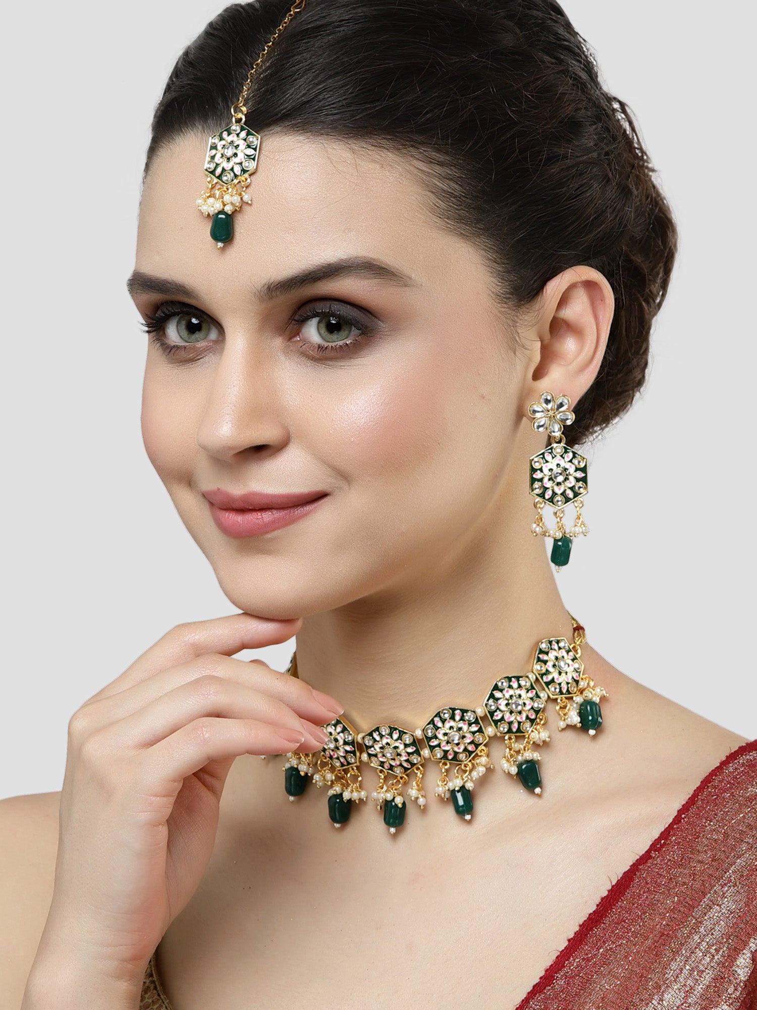 Karatcart Women Gold Plated Green Meena And Tumble Studded Kundan Necklace Set