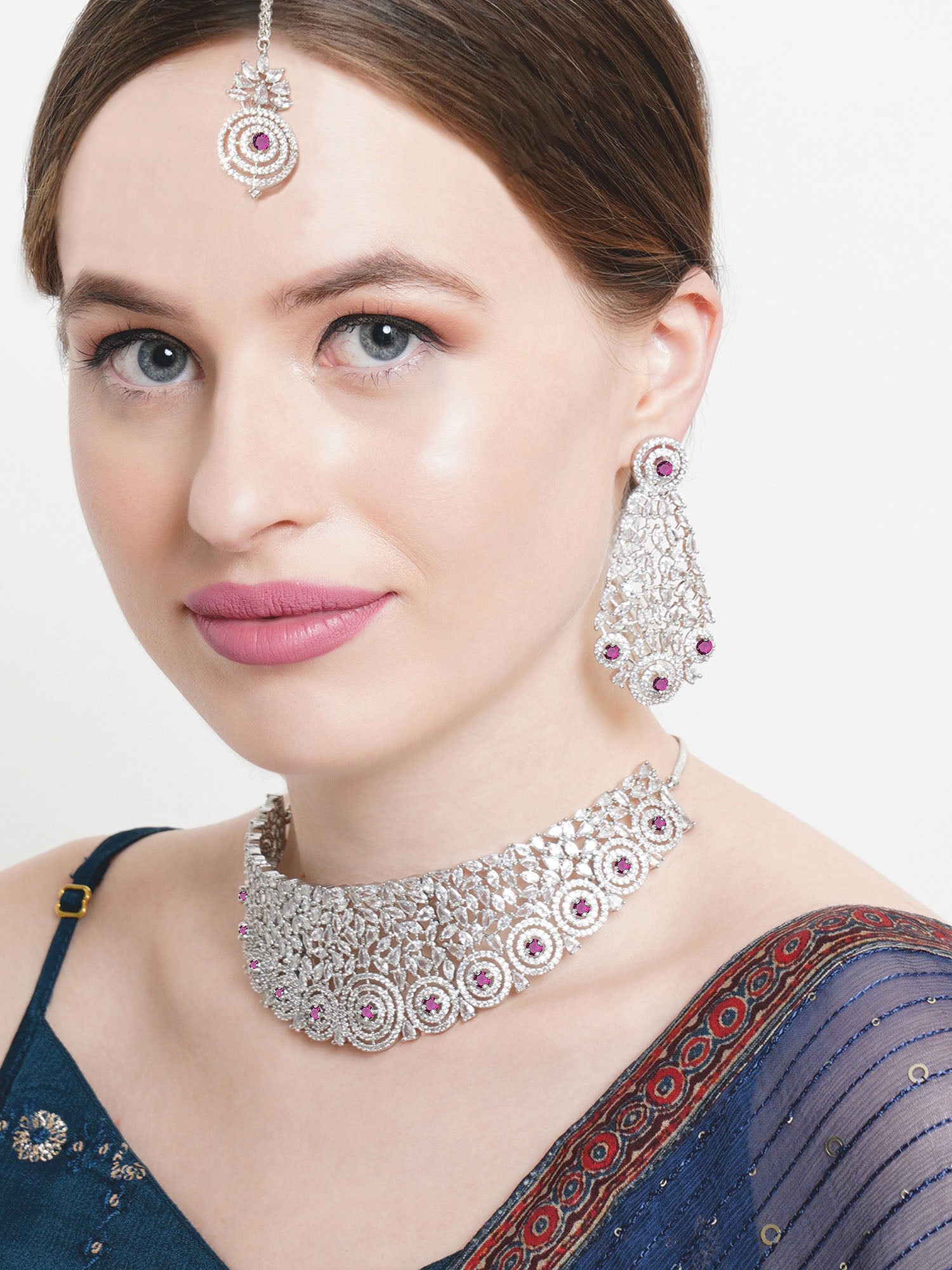 - This is a Pink Jewellery Set by Brand Karatcart which has American Diamond stones.This is Silver Plated. We at KARATCART understand your desire to look the best on any day & we thrive in making any day an occasion. Every individual at Karatcart carries a passion for jewellery and it reflects in our beautiful designs as well as in our breathtaking craftsmanship. We create unique jewellery so you can make heads turn..