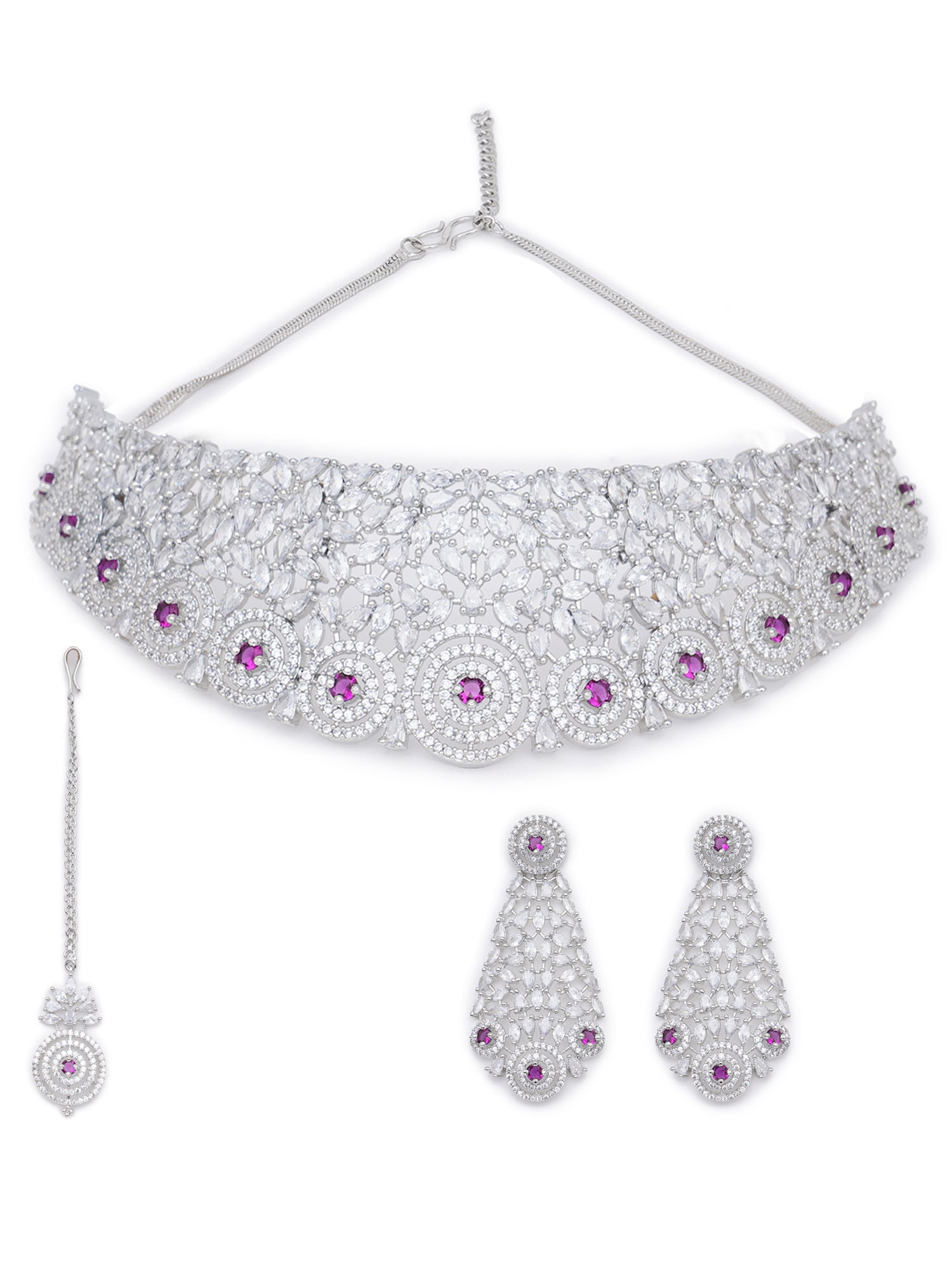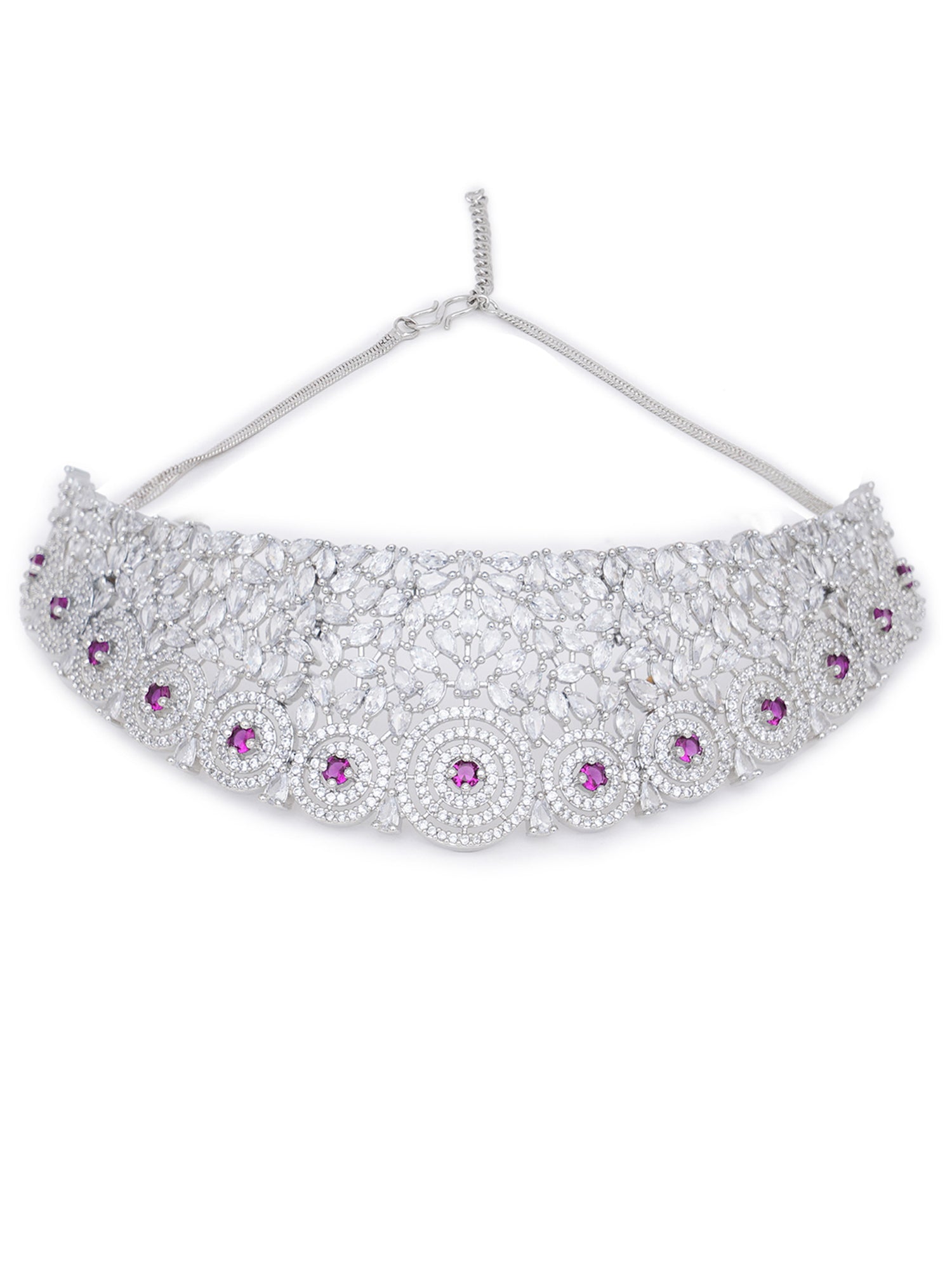 Karatcart Silver Plated Red CZ Stone Studded Choker Necklace Set for Women