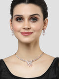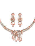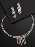 Karatcart Rose Gold Plated Pink Cubic Zirconia Studded Necklace Set