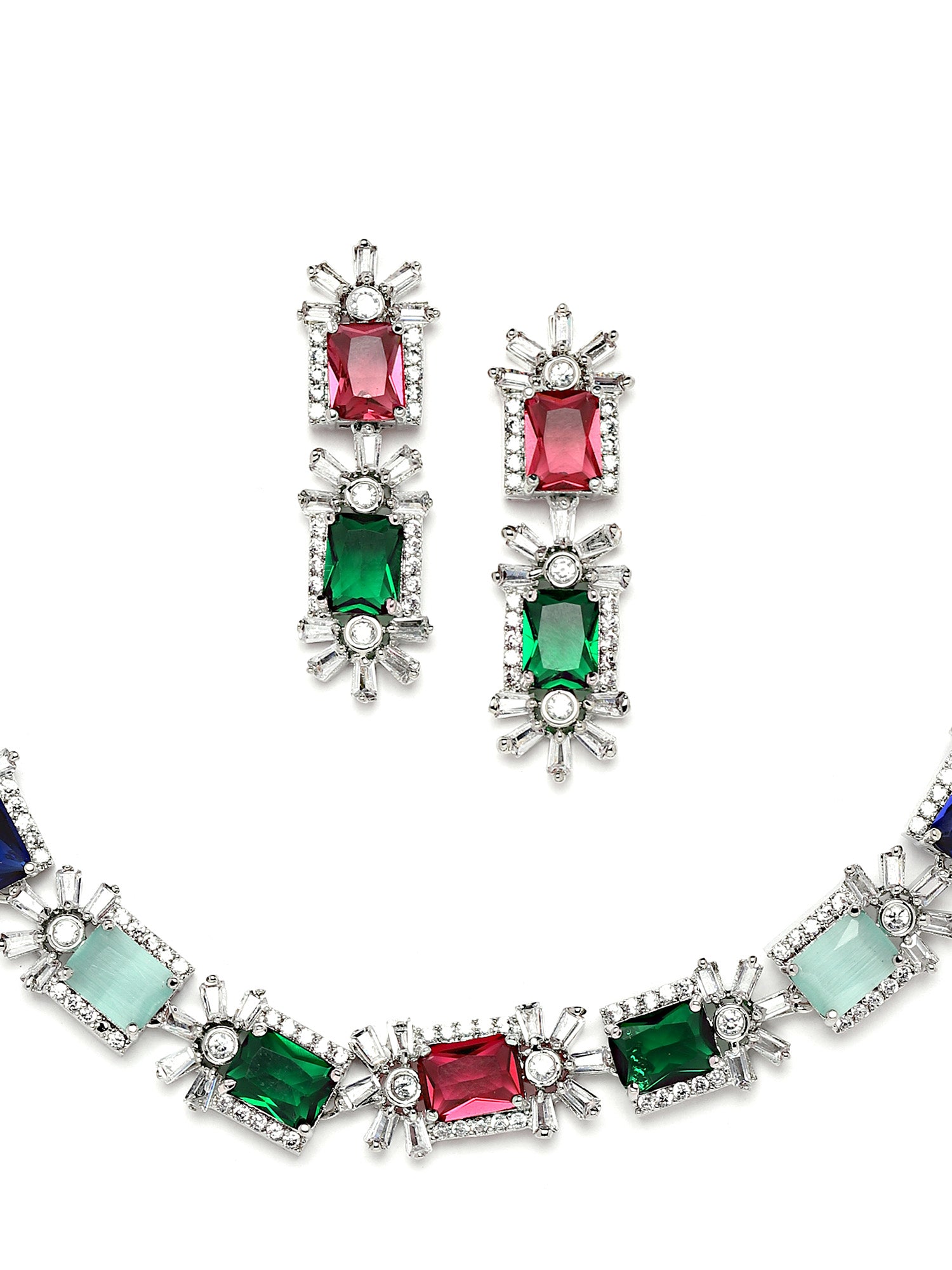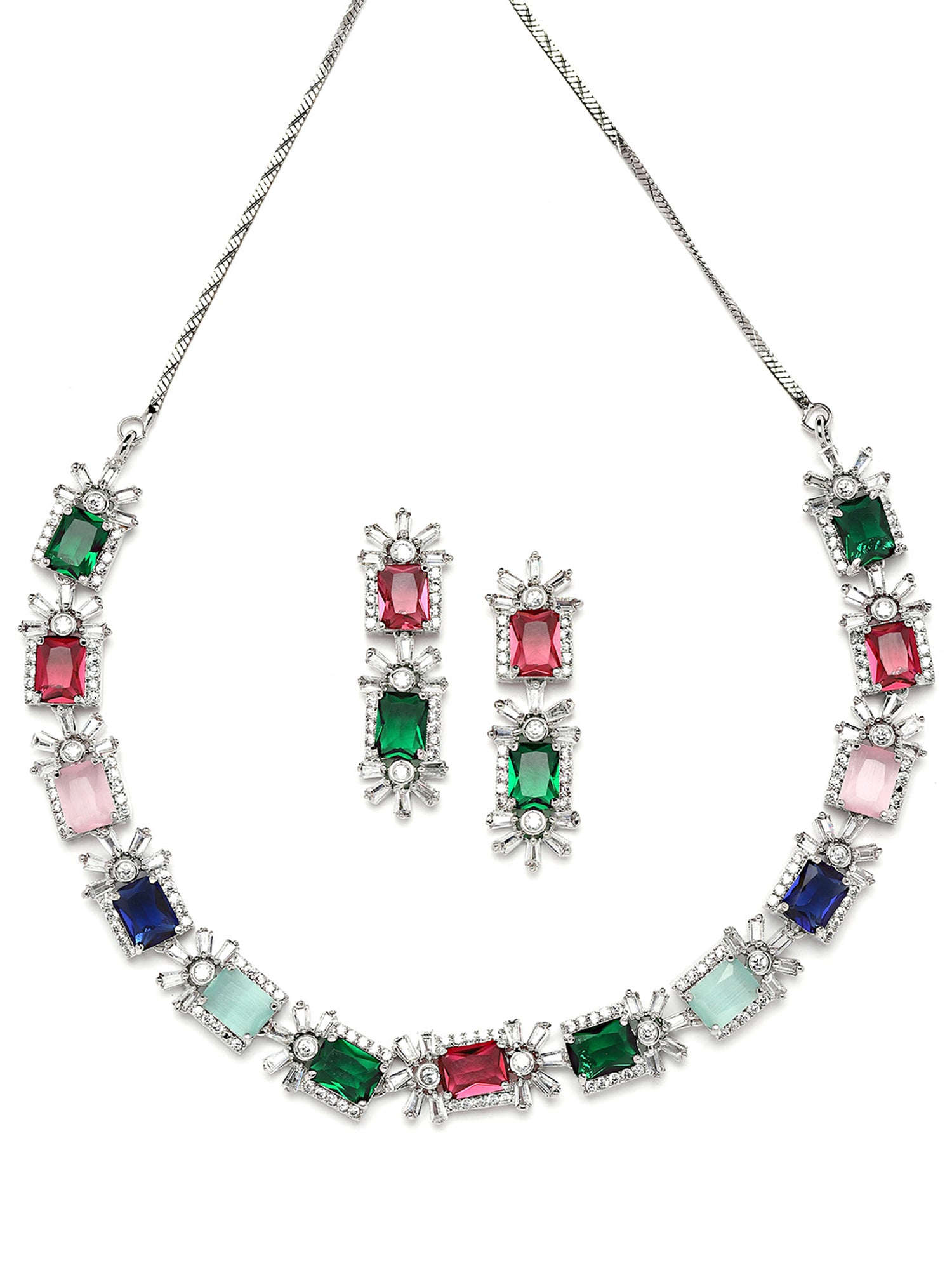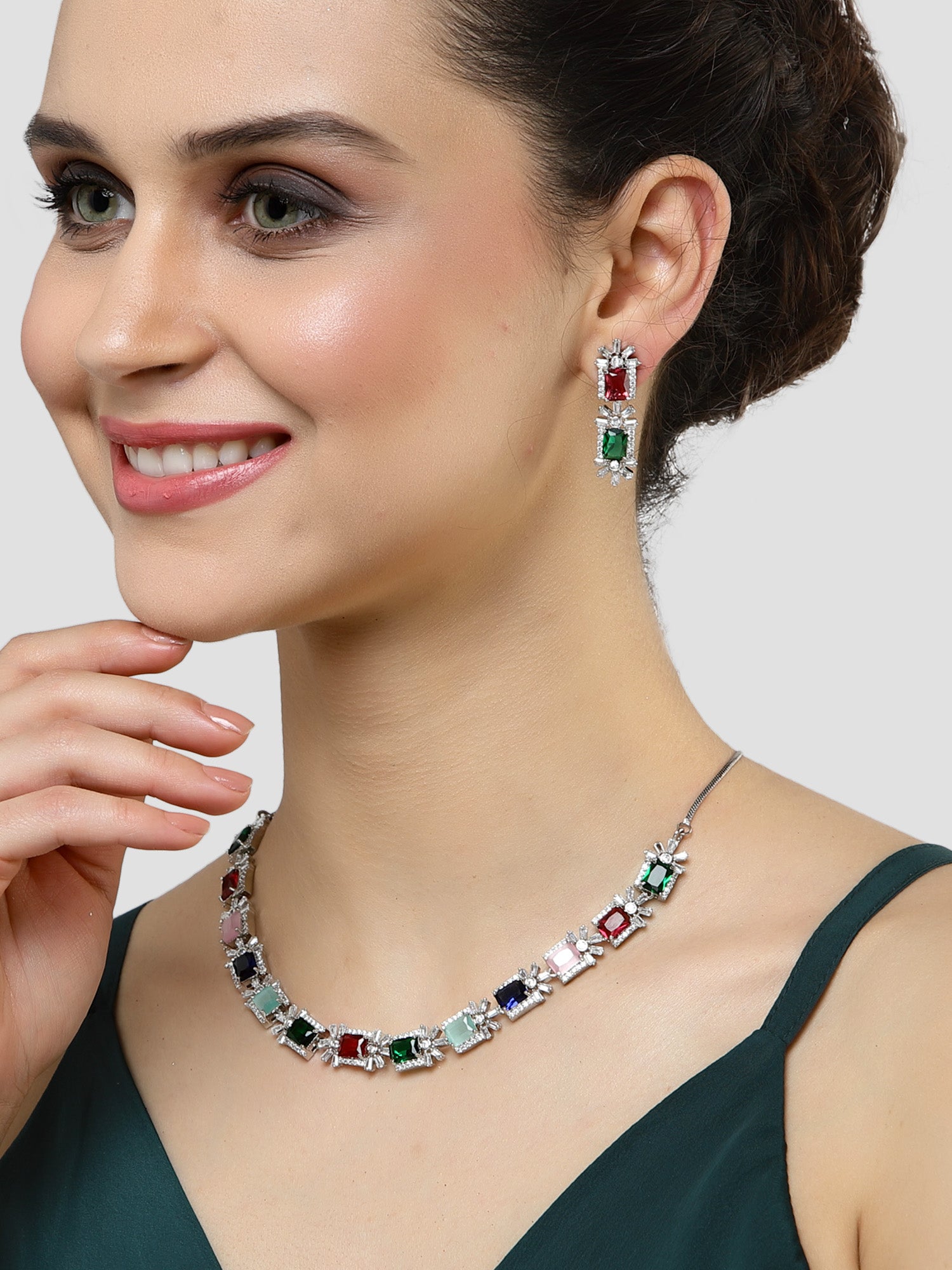 Karatcart Silver Tone Multicolor Cubic Zirconia Studded Necklace Set