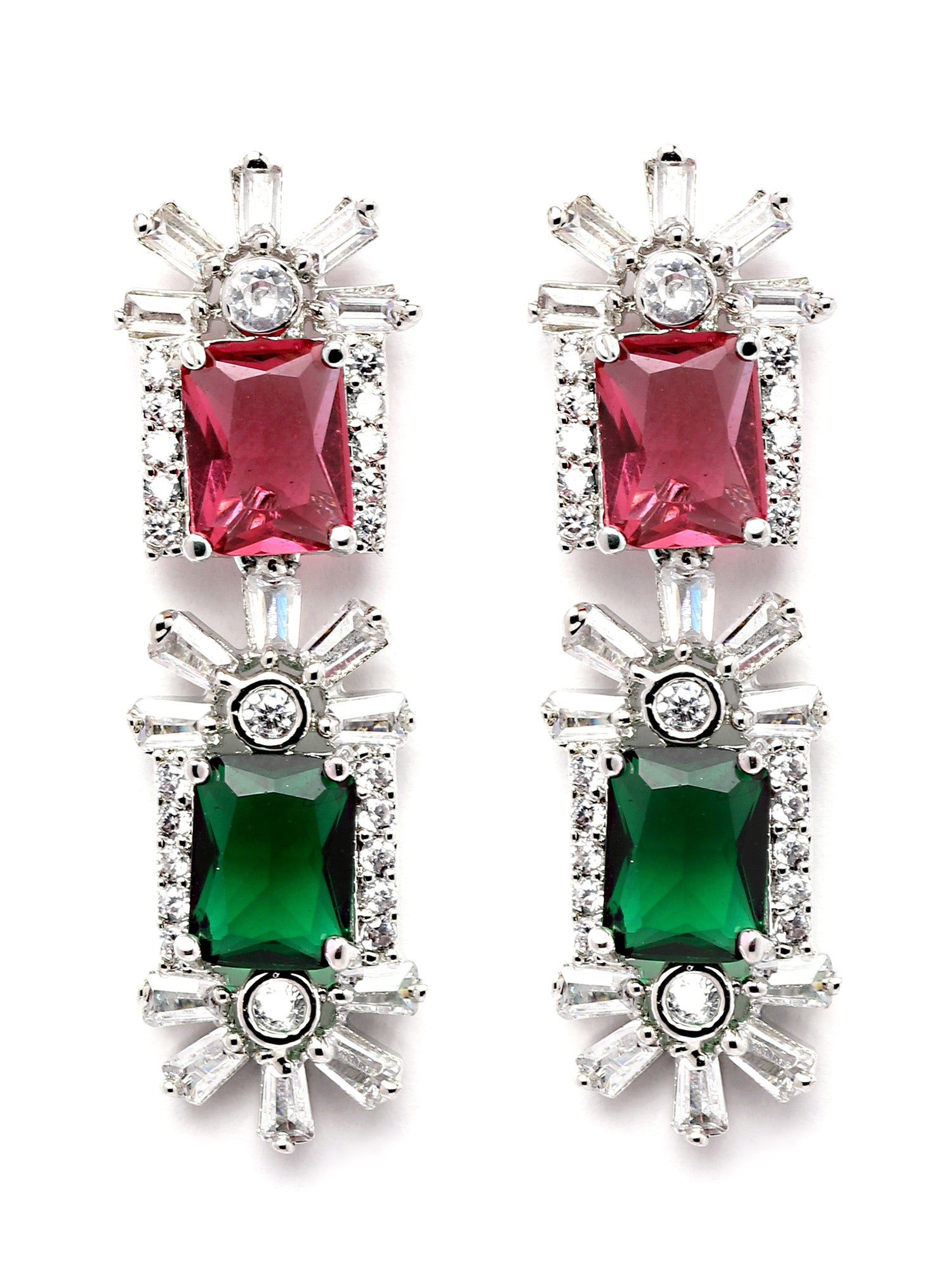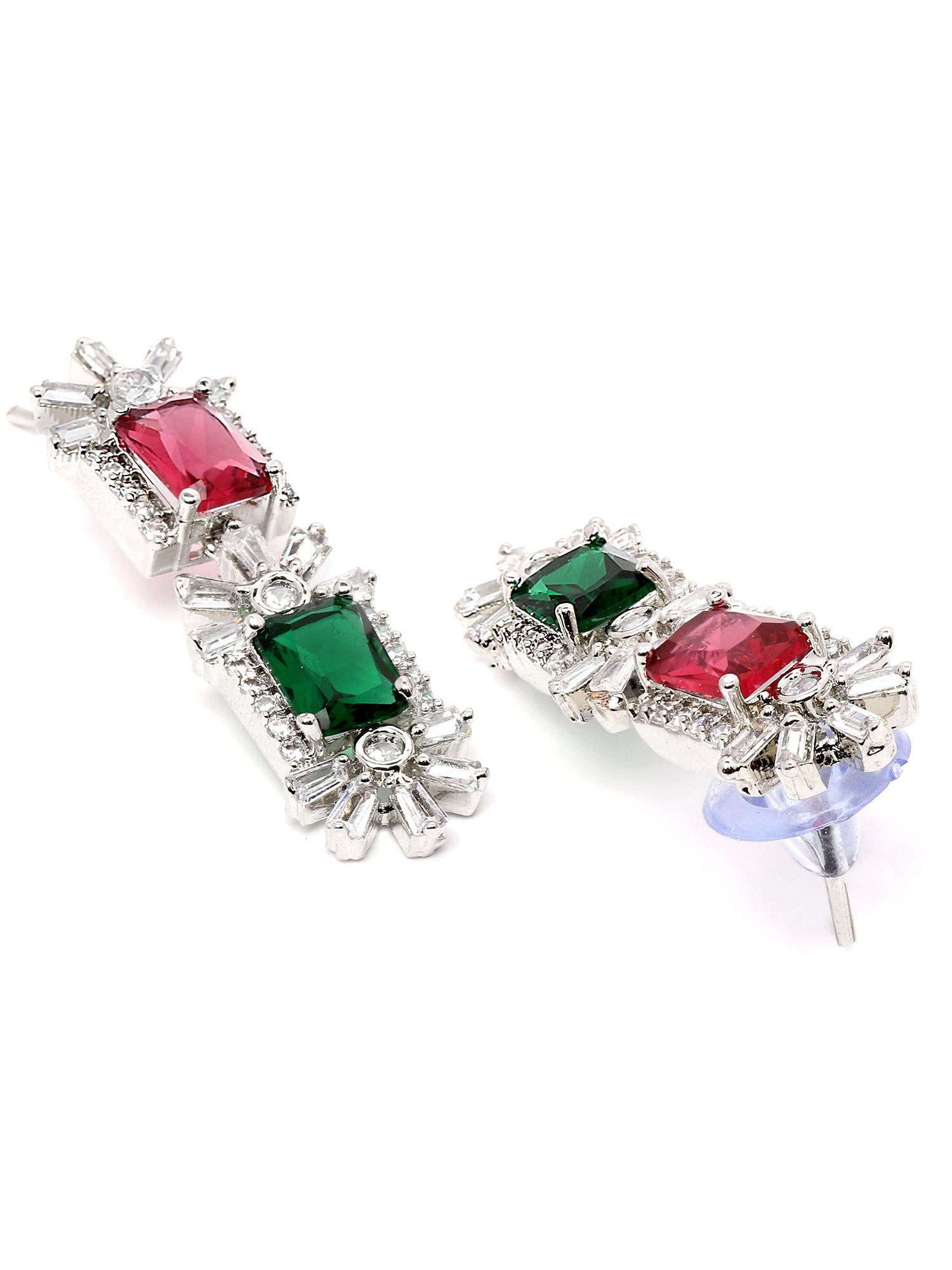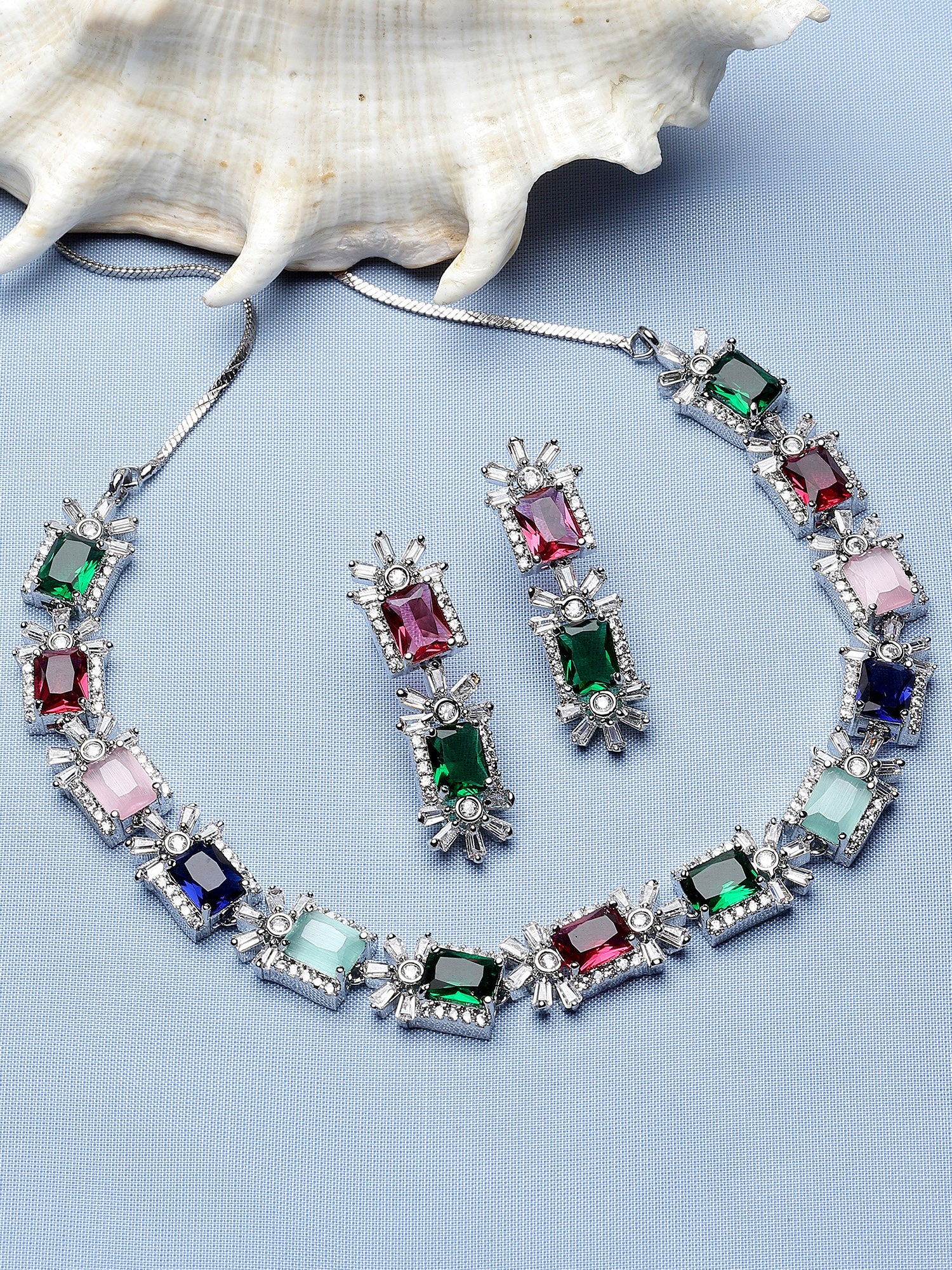 Karatcart Silver Tone Multicolor Cubic Zirconia Studded Necklace Set