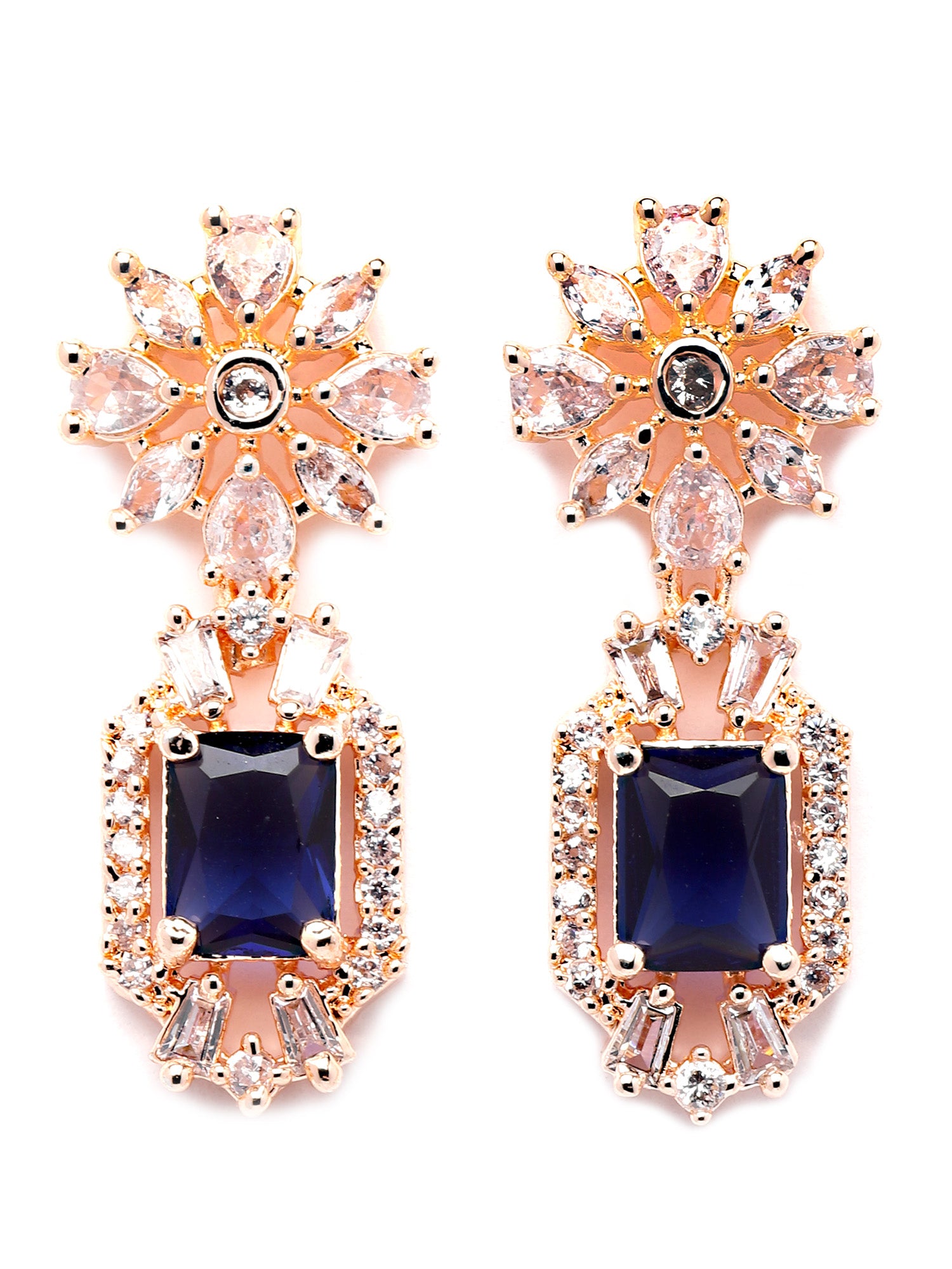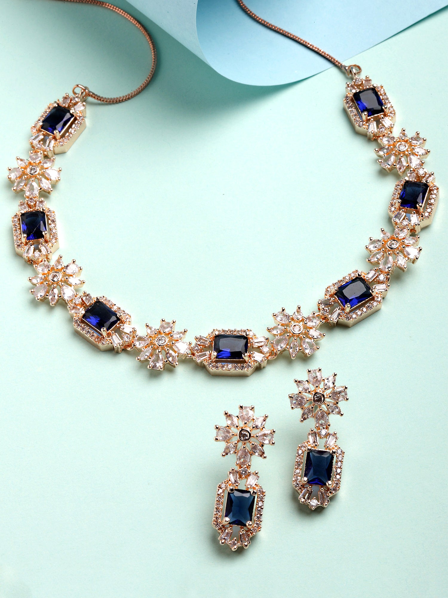 - This is a Blue Jewellery Set by Brand Karatcart which has American Diamond stones.This is Rose Gold Plated. We at KARATCART understand your desire to look the best on any day & we thrive in making any day an occasion. Every individual at Karatcart carries a passion for jewellery and it reflects in our beautiful designs as well as in our breathtaking craftsmanship. We create unique jewellery so you can make heads turn..