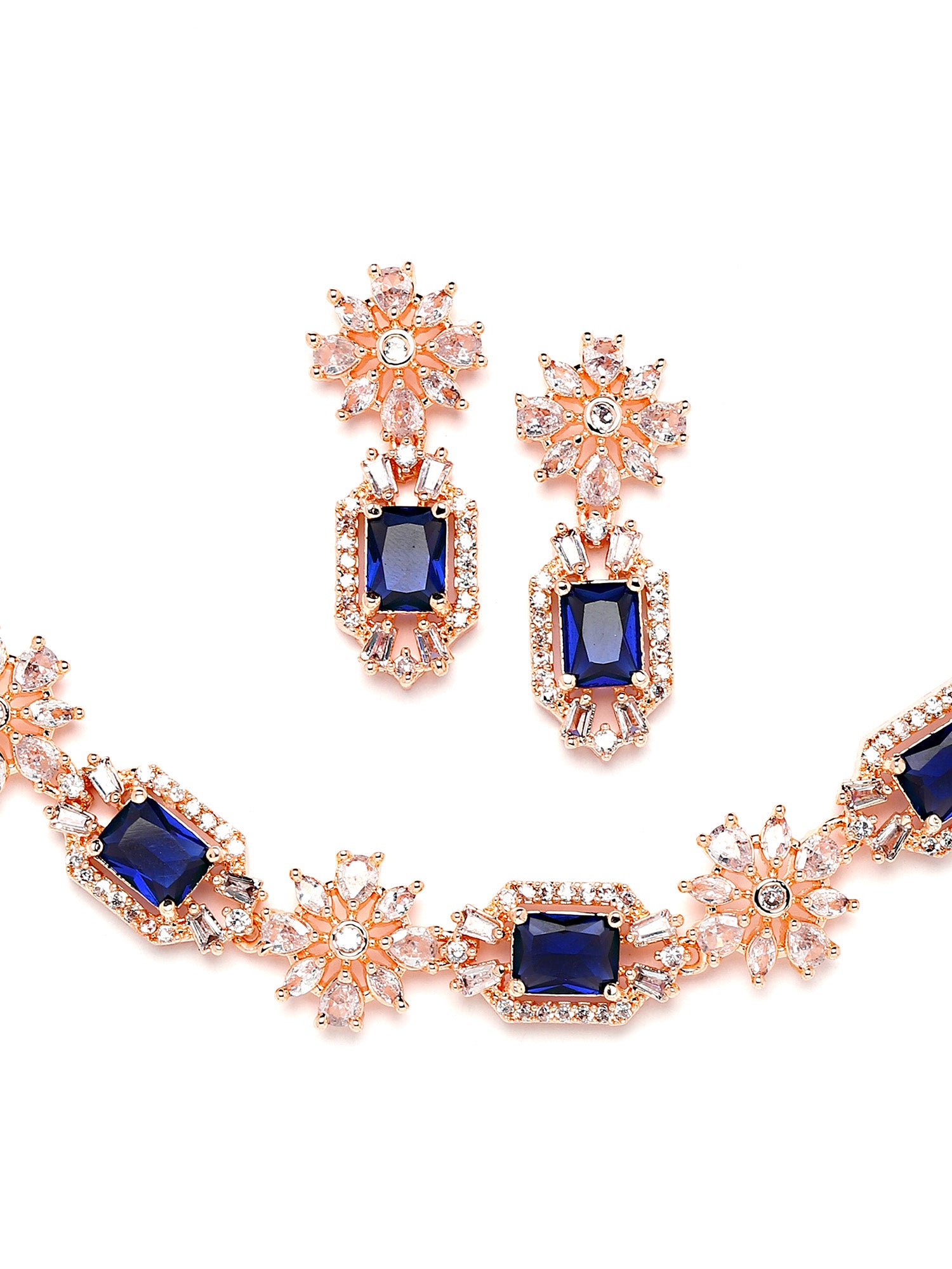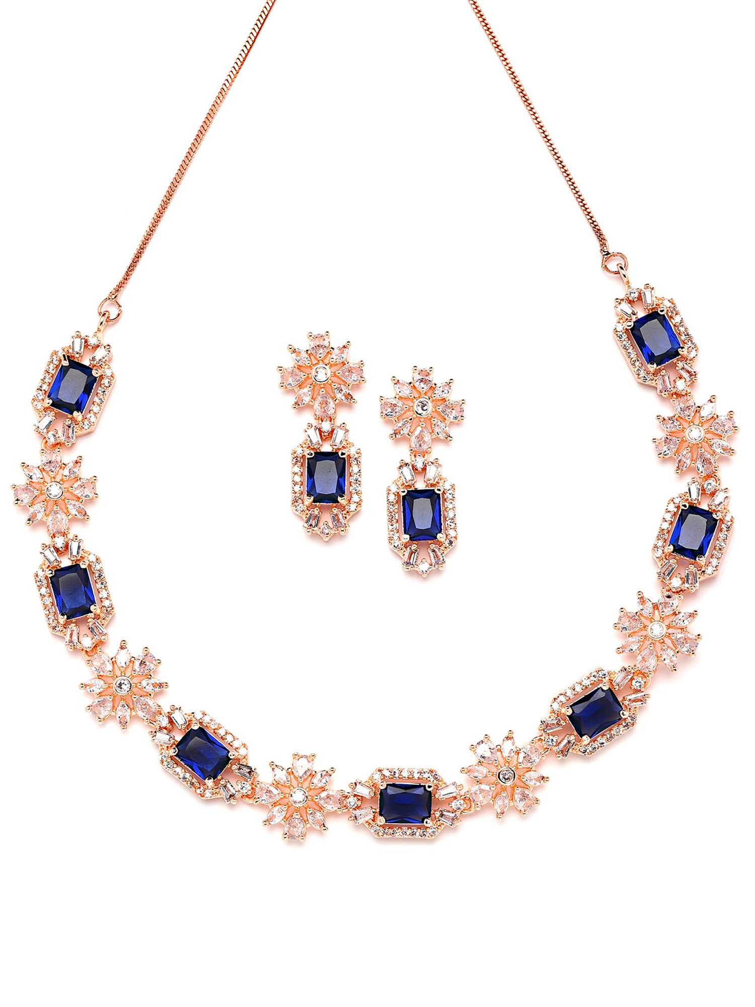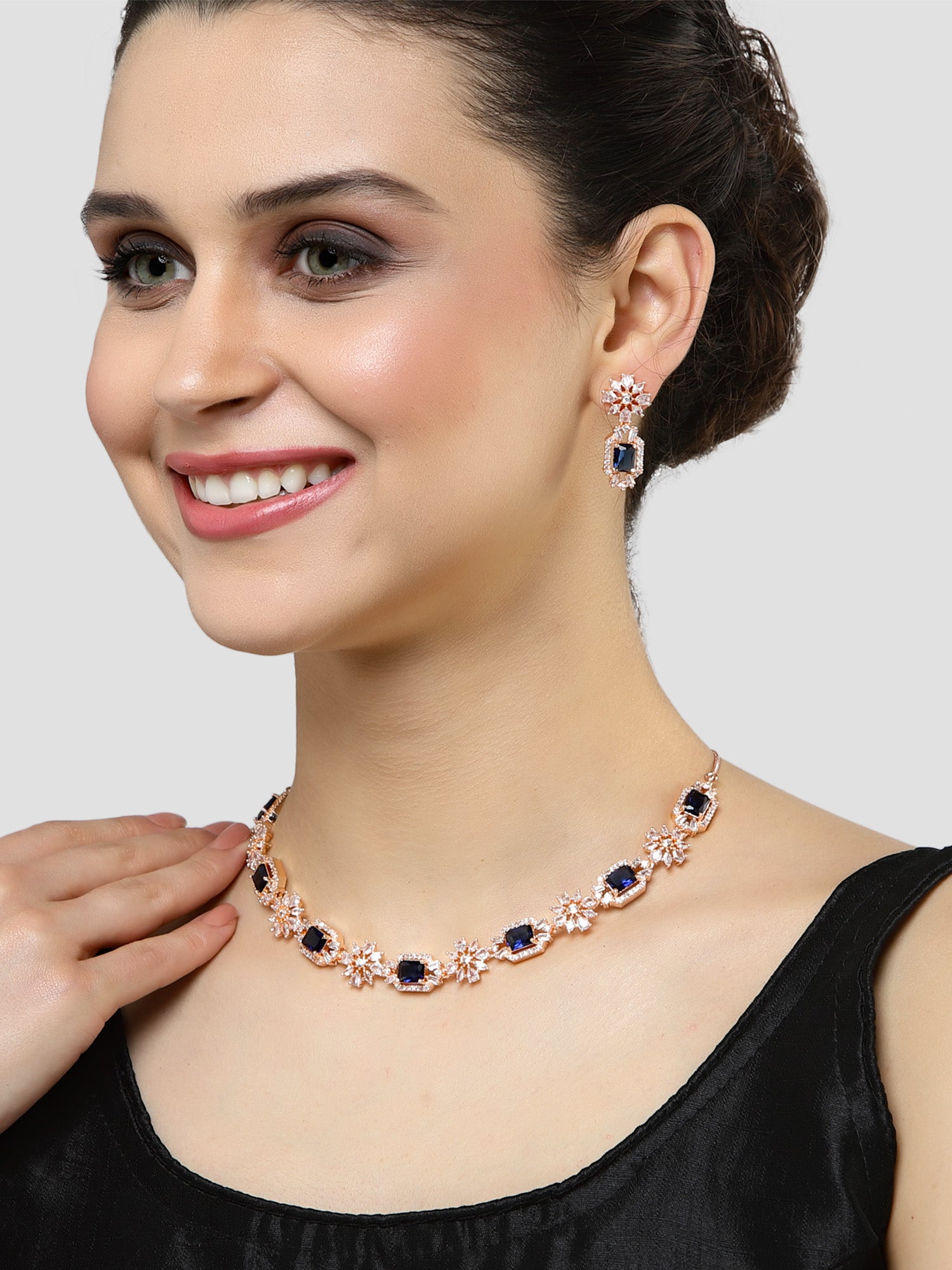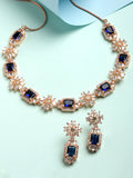 Karatcart Rose Gold Plated Blue Cubic Zirconia Studded Necklace Set