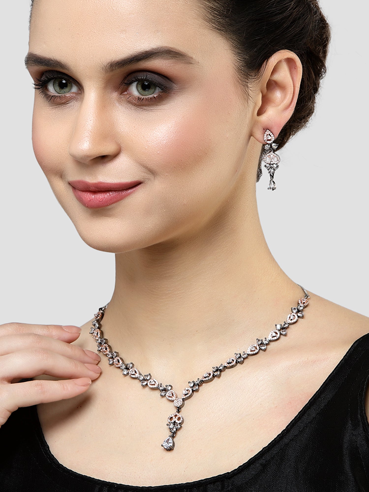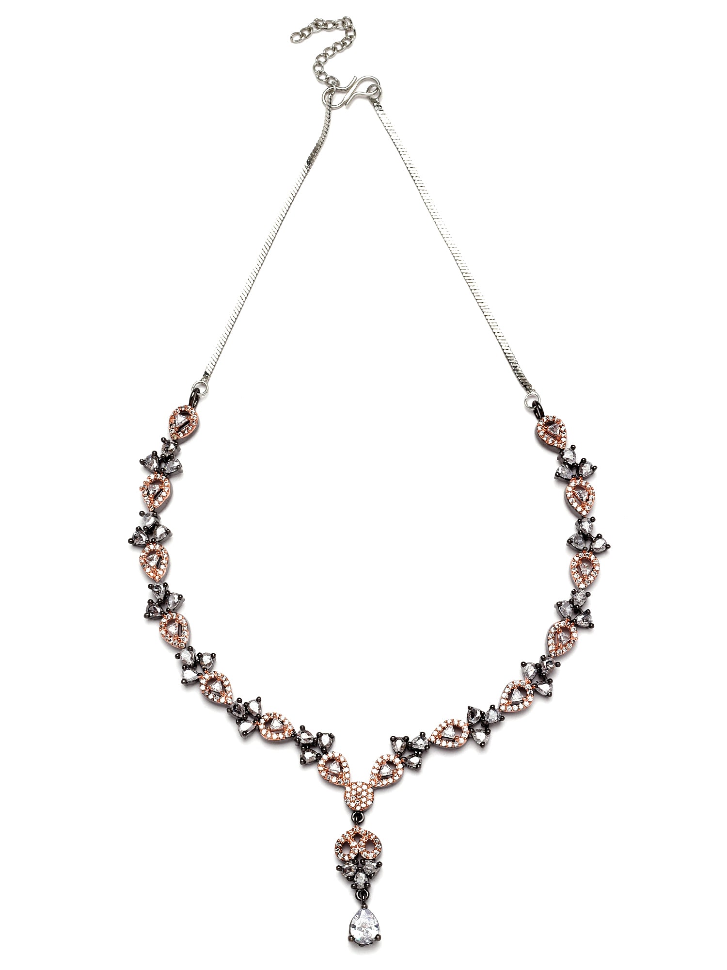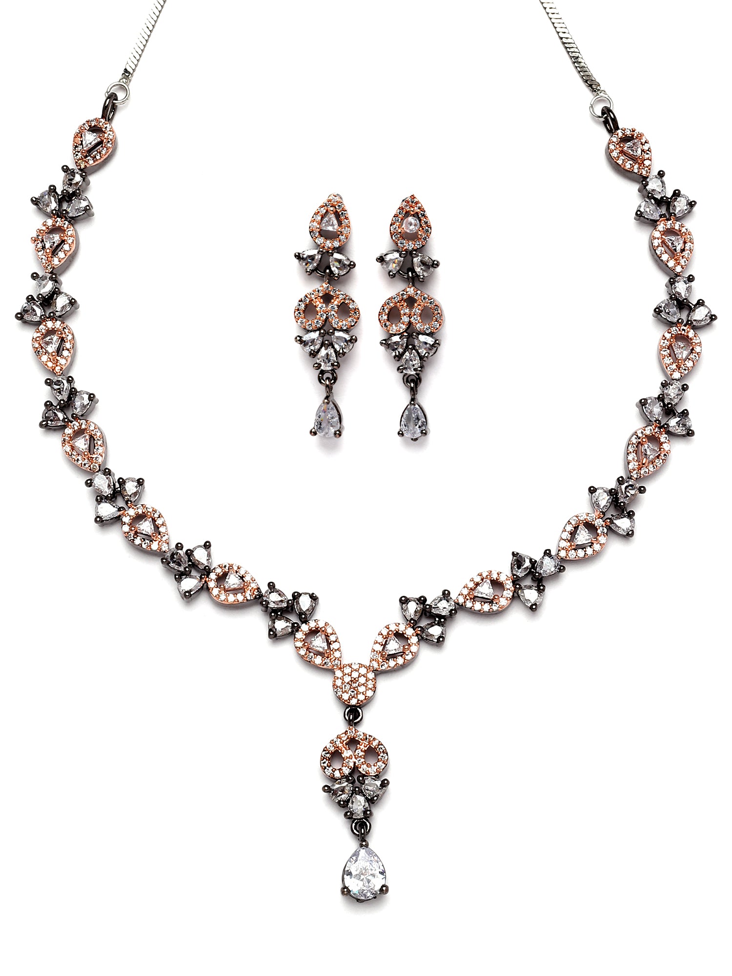 Karatcart Black and Rose Gold Plated Cubic Zirconia Studded Necklace Set