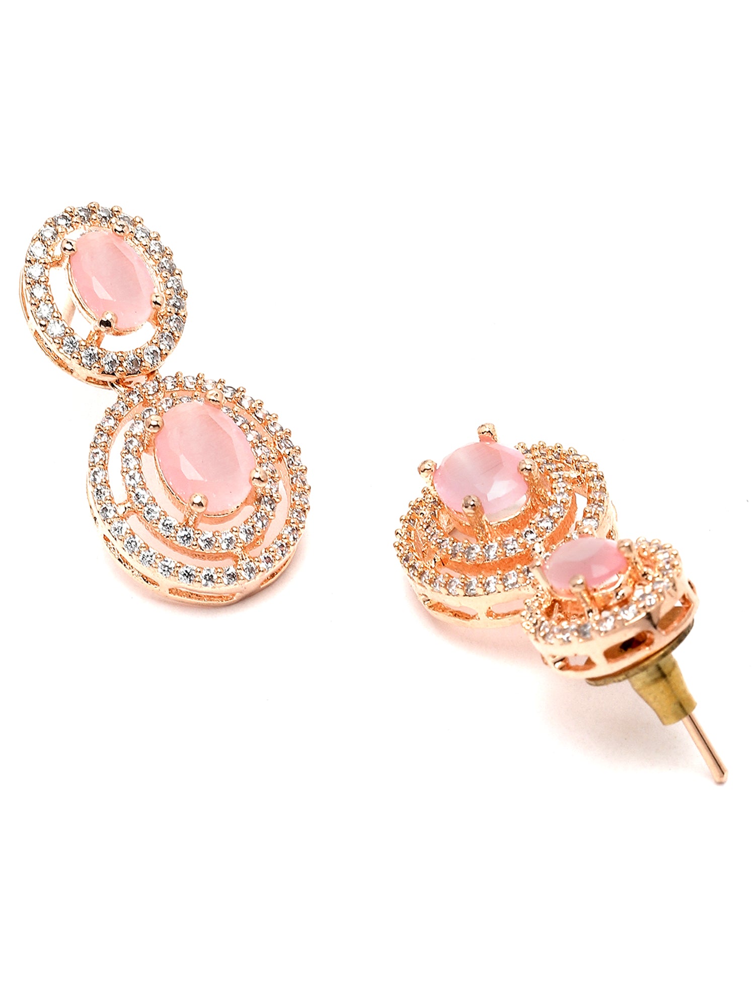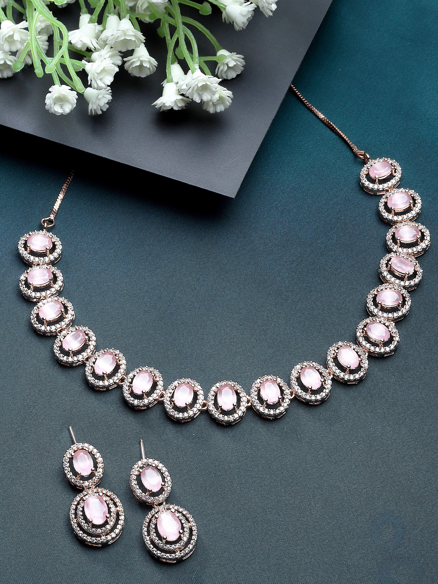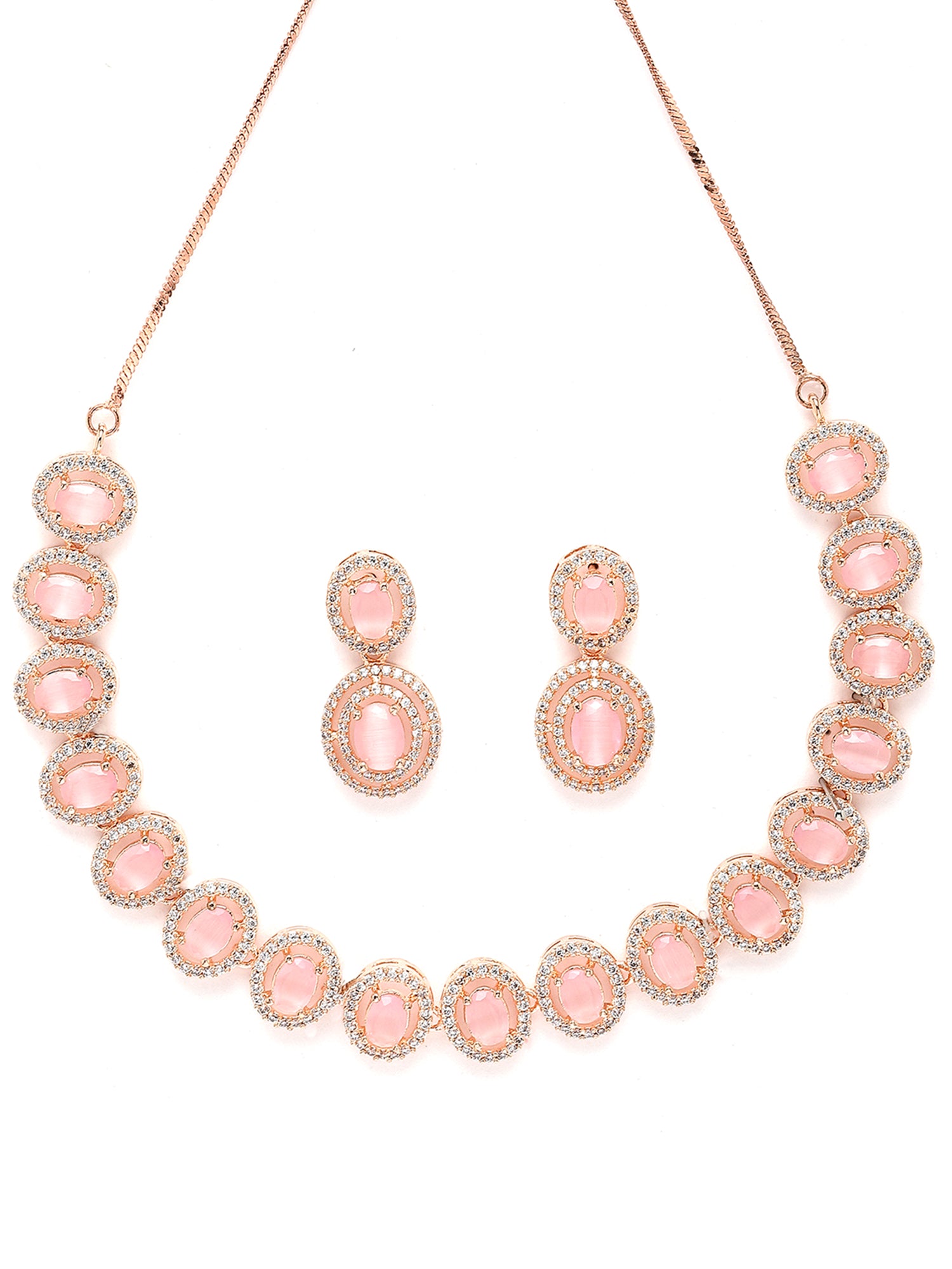 - This is a Rose Gold Jewellery Set by Brand Karatcart which has American Diamond stones.This is Rose Gold Plated. We at KARATCART understand your desire to look the best on any day & we thrive in making any day an occasion. Every individual at Karatcart carries a passion for jewellery and it reflects in our beautiful designs as well as in our breathtaking craftsmanship. We create unique jewellery so you can make heads turn..