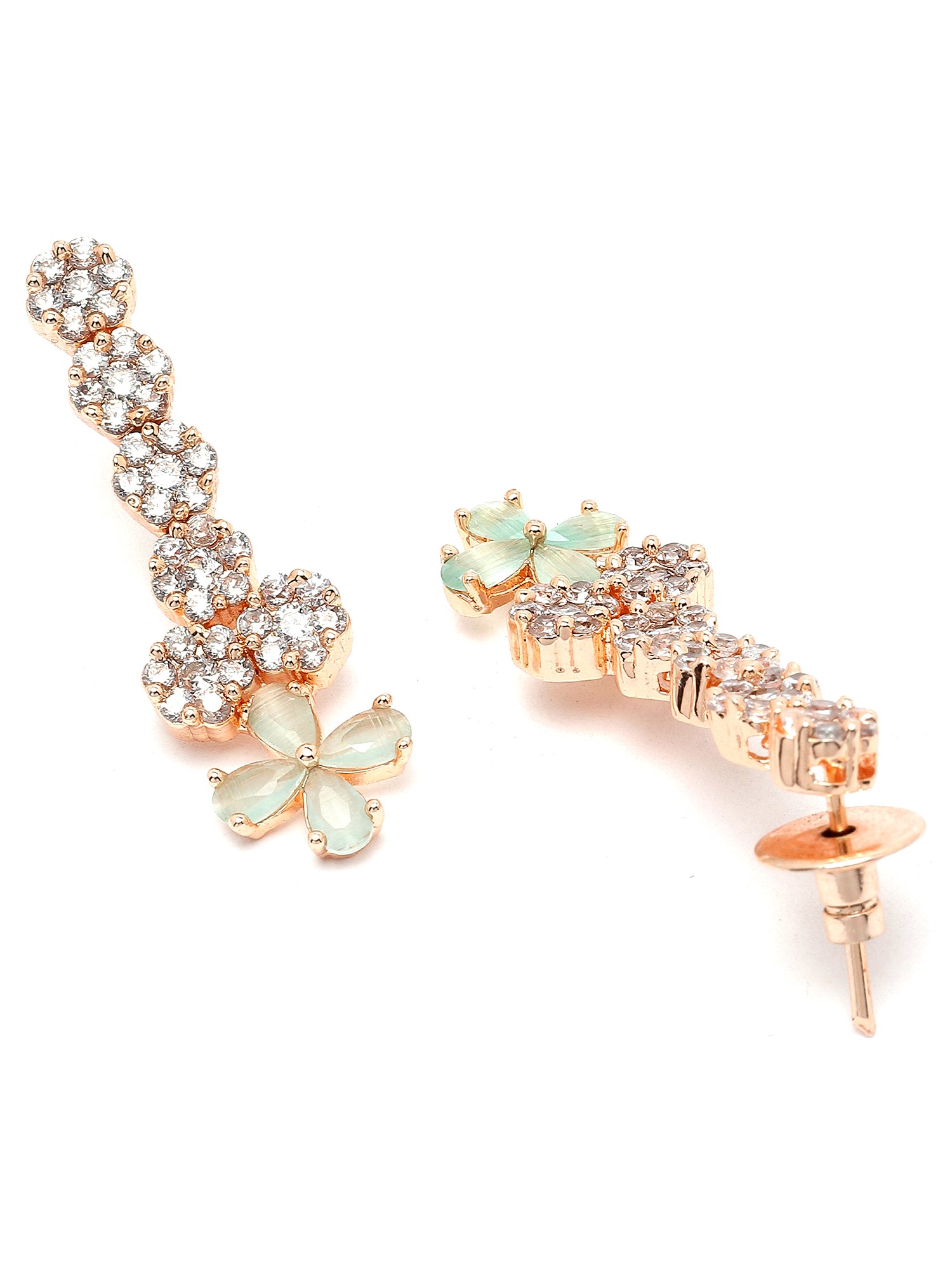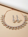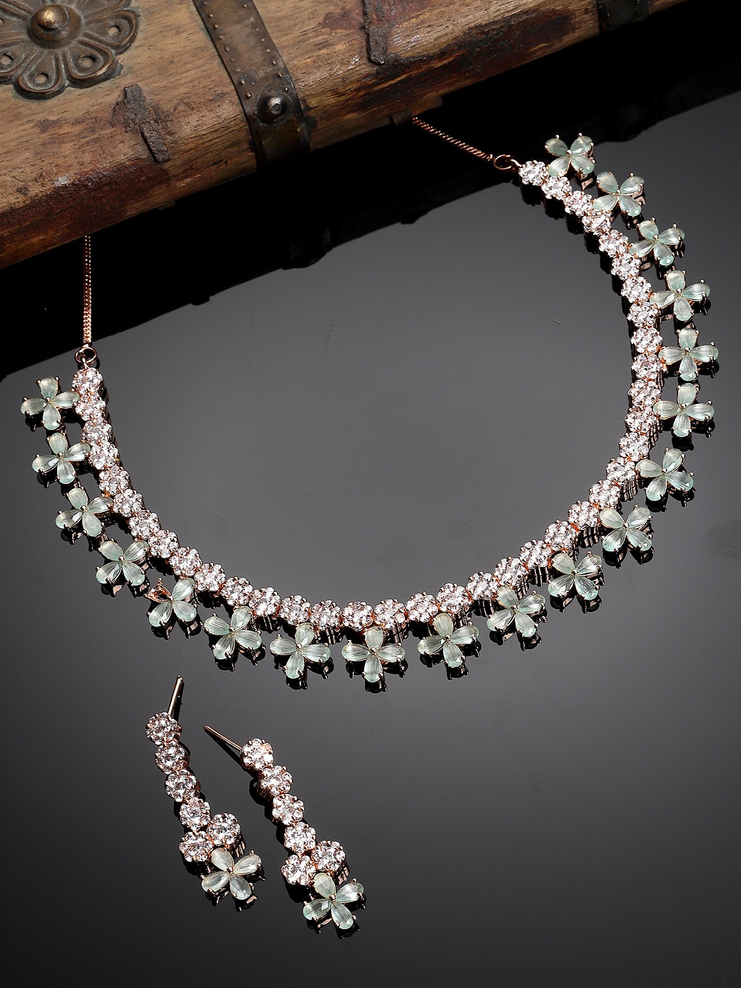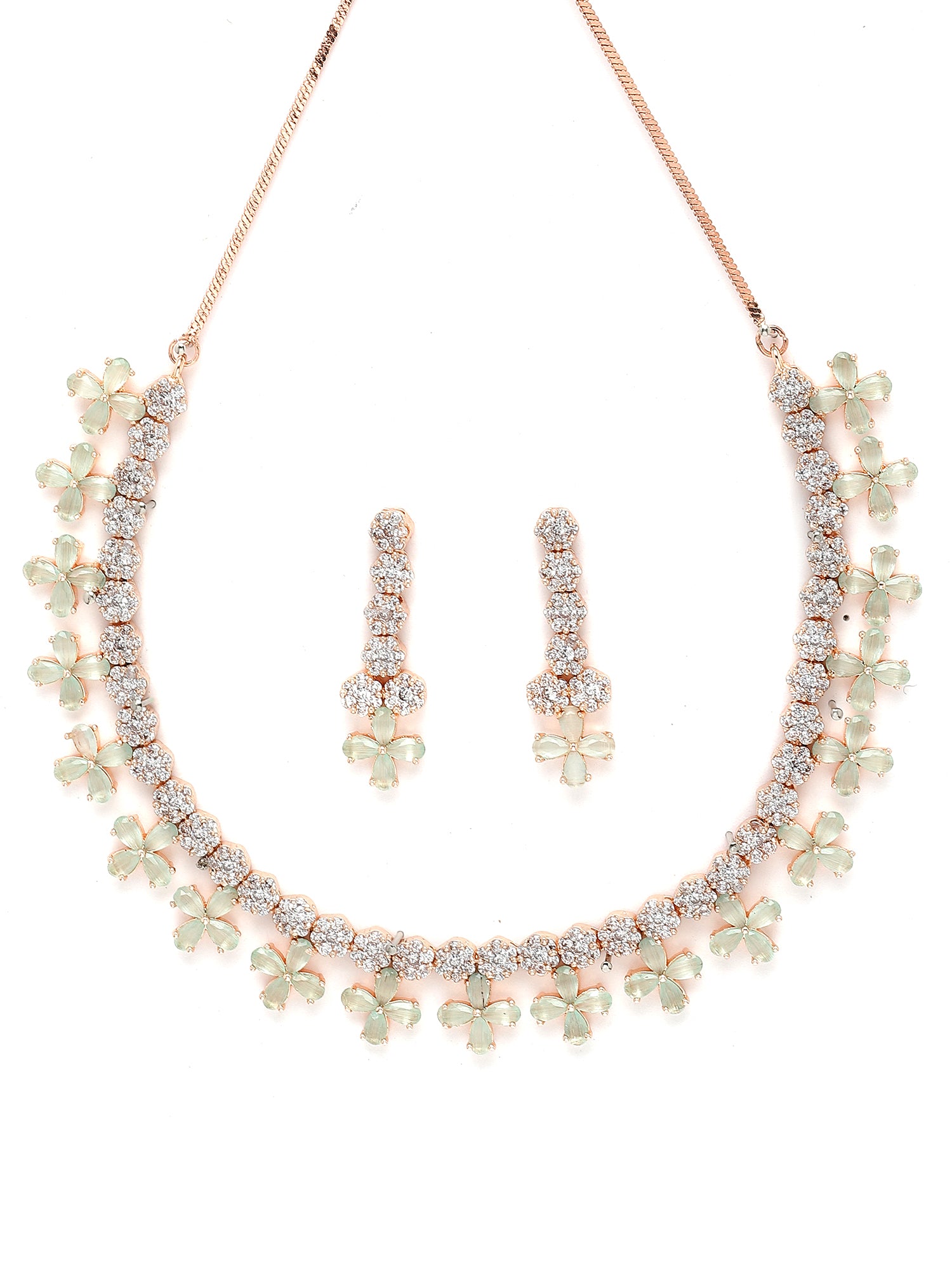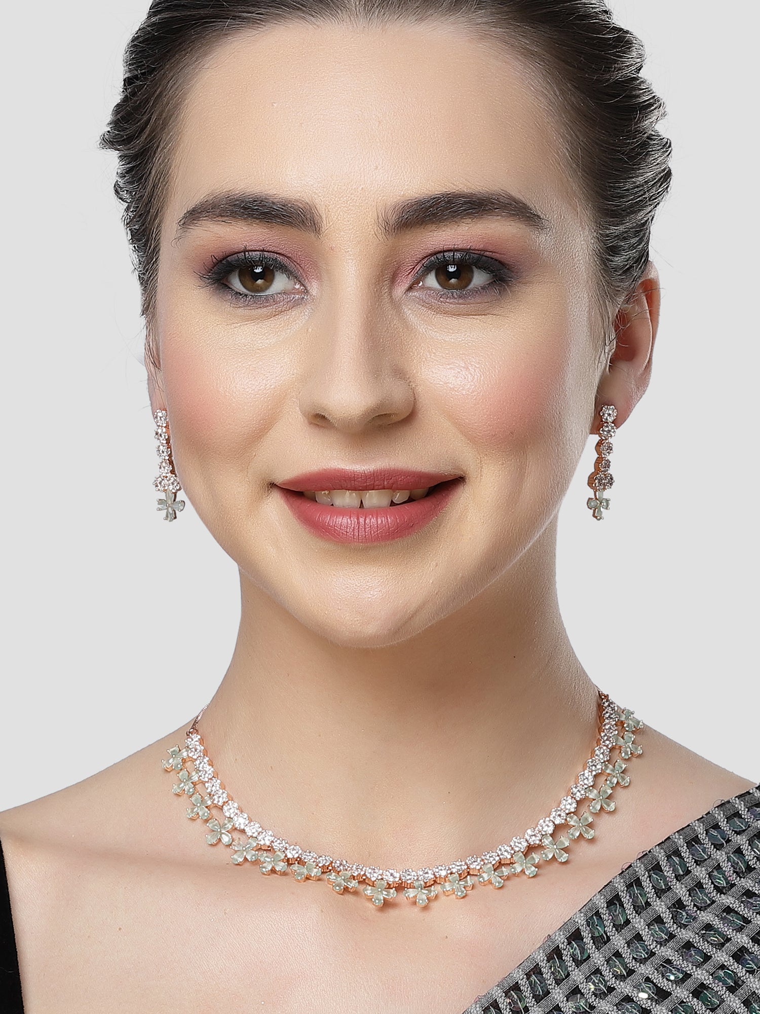 Karatcart Rose Gold Plated Light Green Cubic Zirconia Studded Floral Design Necklace Set for Women