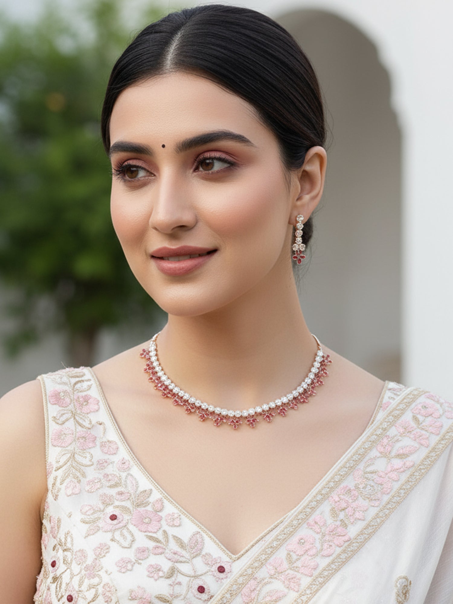 Karatcart Rose Gold Plated Red Cubic Zirconia Studded Floral Design Necklace Set for Women