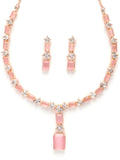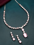 Karatcart Pink Cubic Zirconia Studded Rose Gold Plated Necklace Set for Women