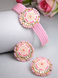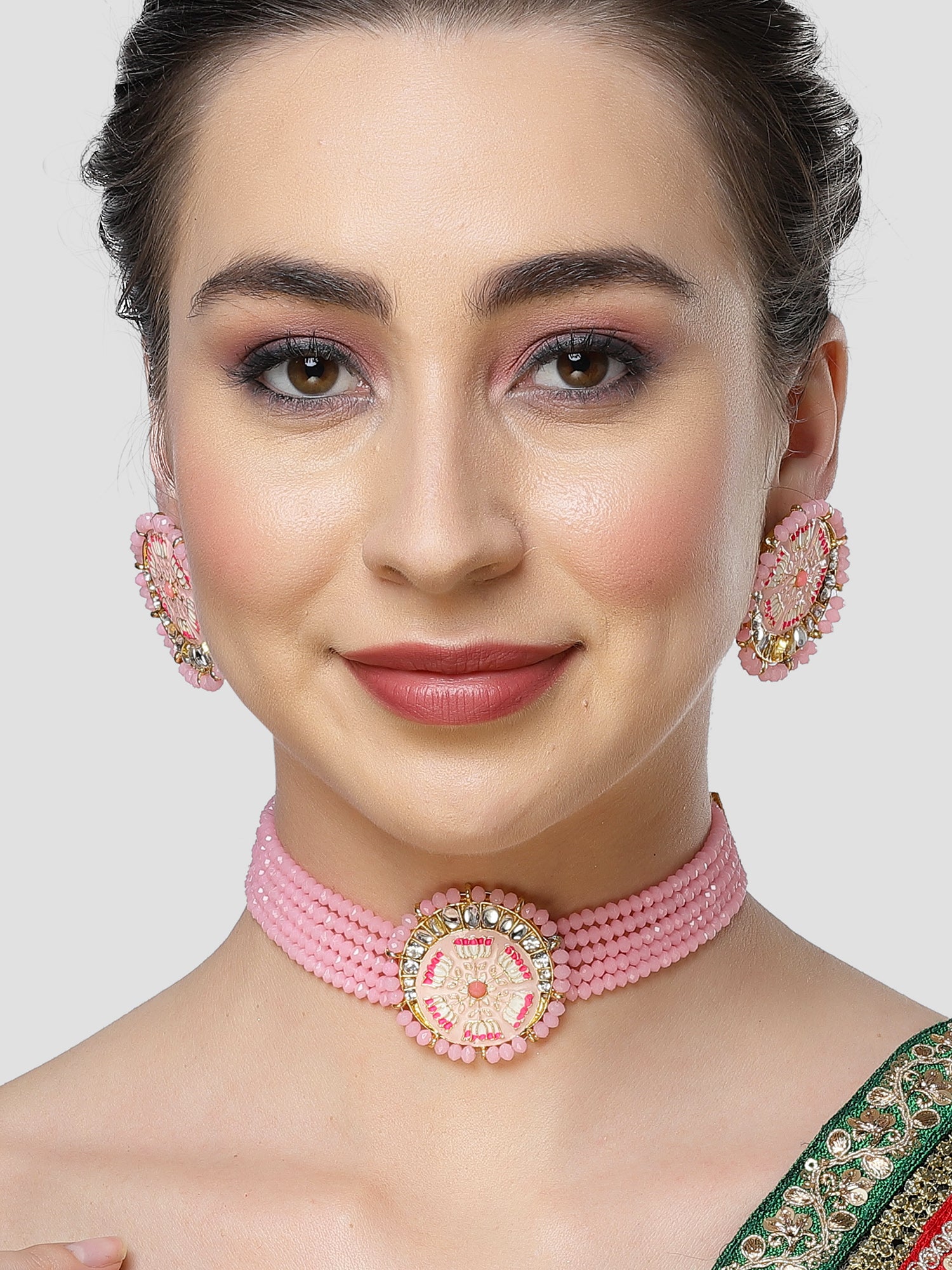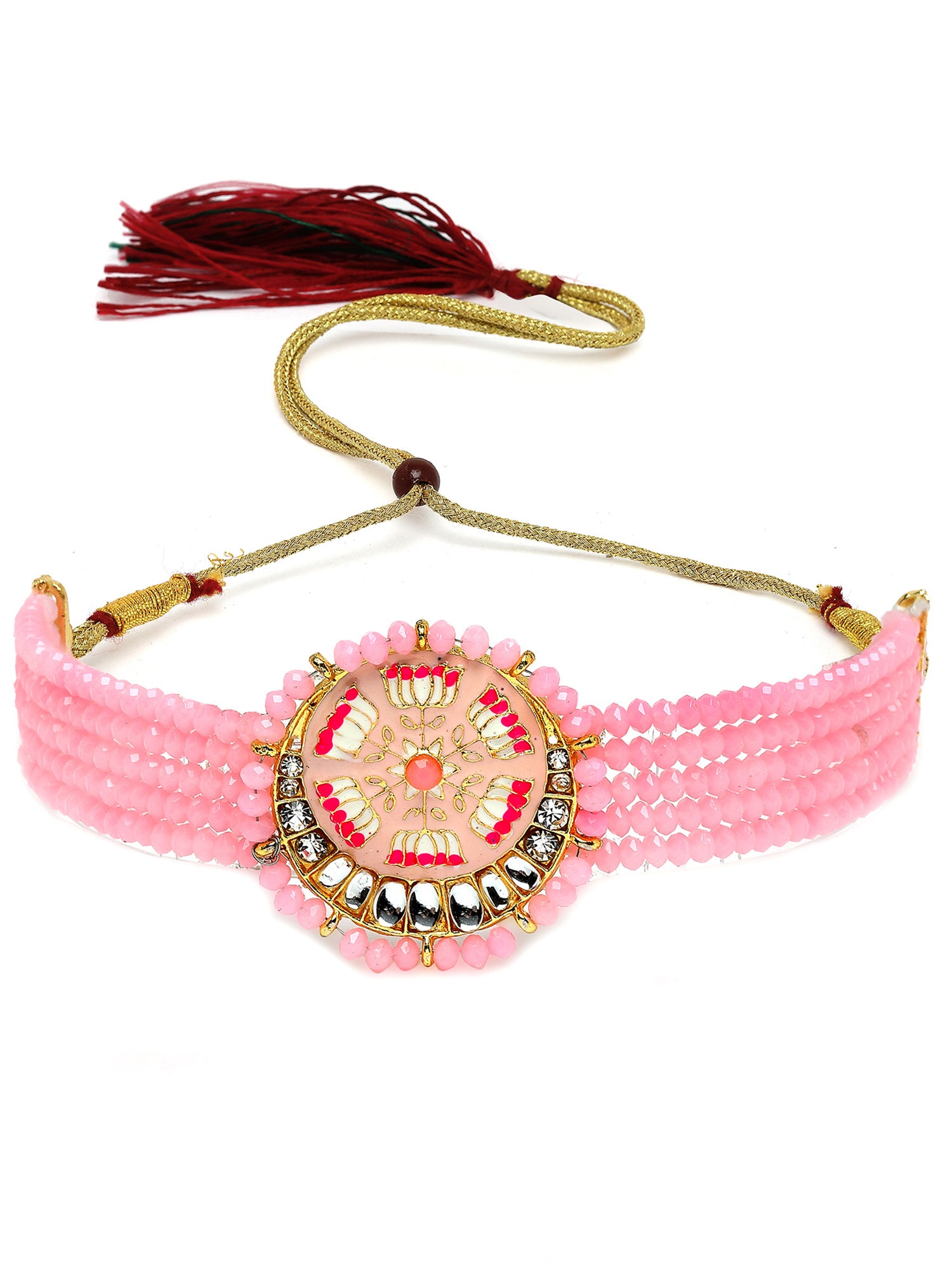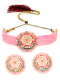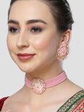 Karatcart Pink Meena Lotus Design Crystal Choker Necklace Set for Women