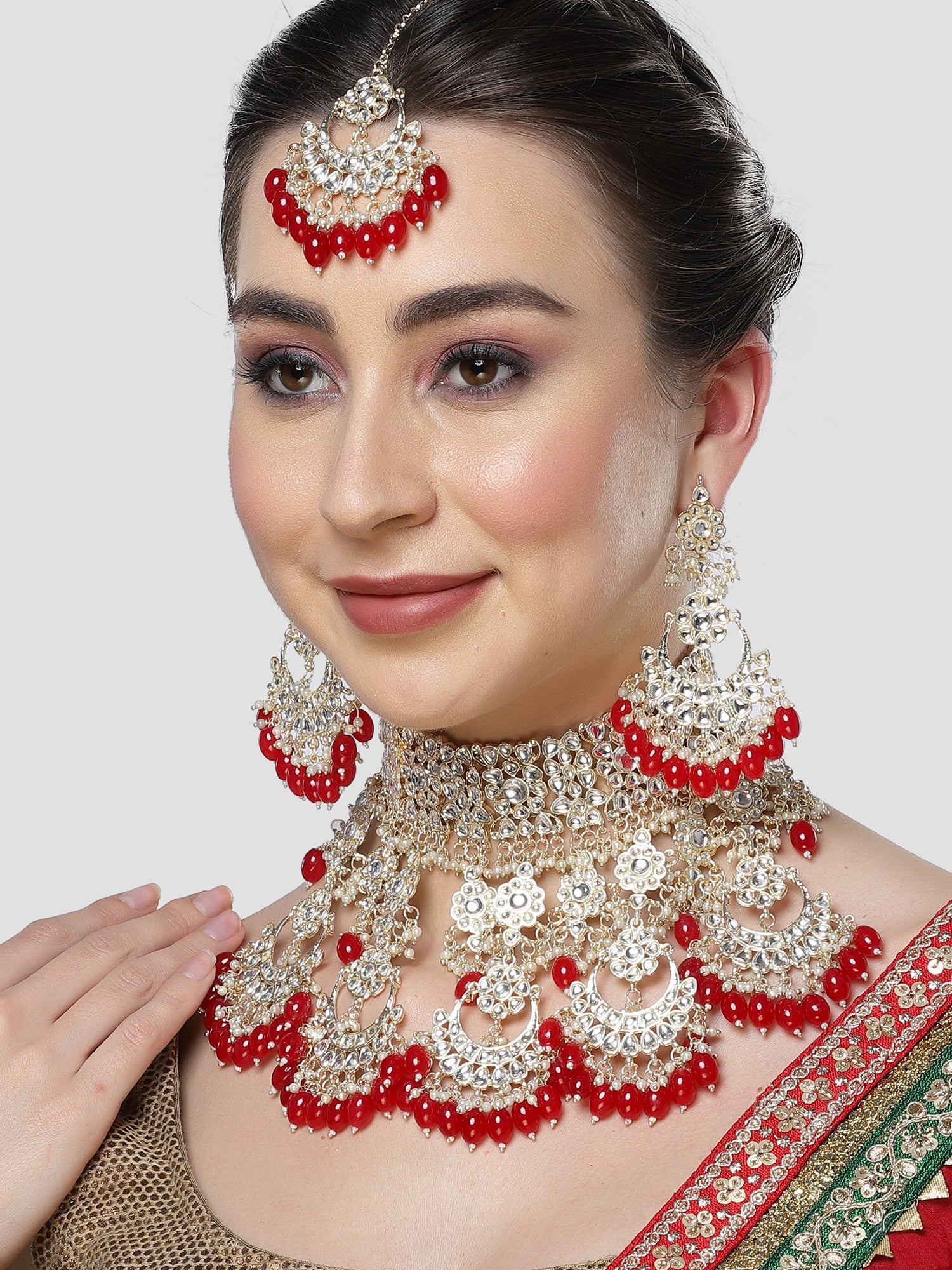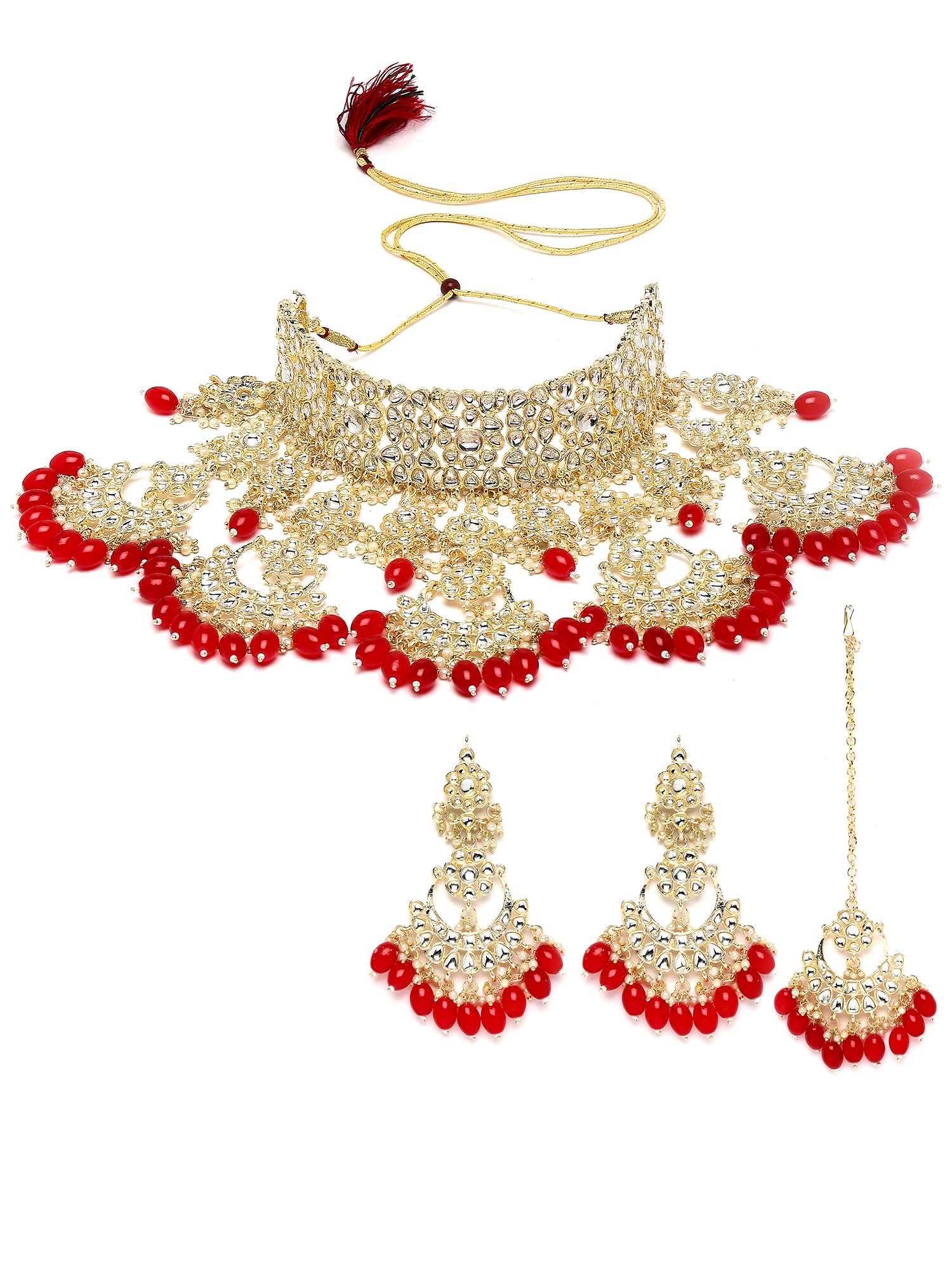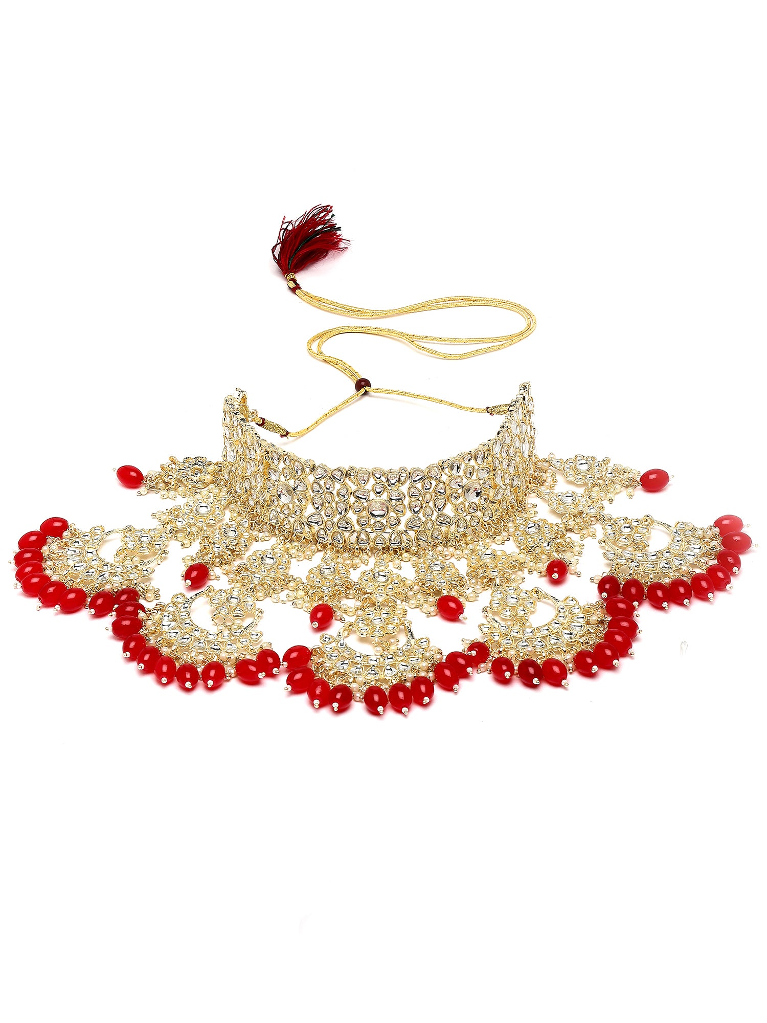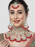 Karatcart Gold Plated Red Tumble Studded Kundan Bridal Necklace Set for Women