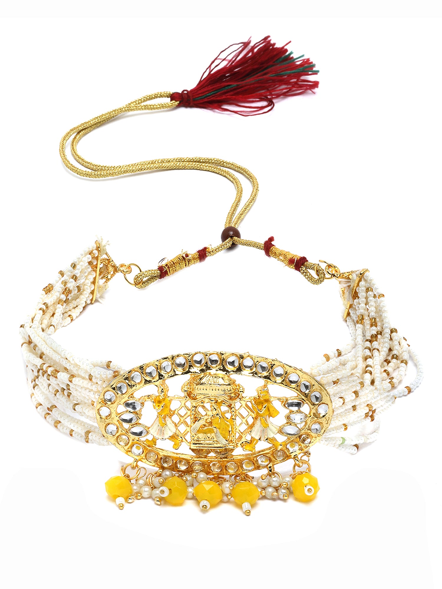 Karatcart Gold Plated Yellow Dulhan Doli Design Choker Necklace Set for Women