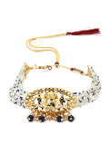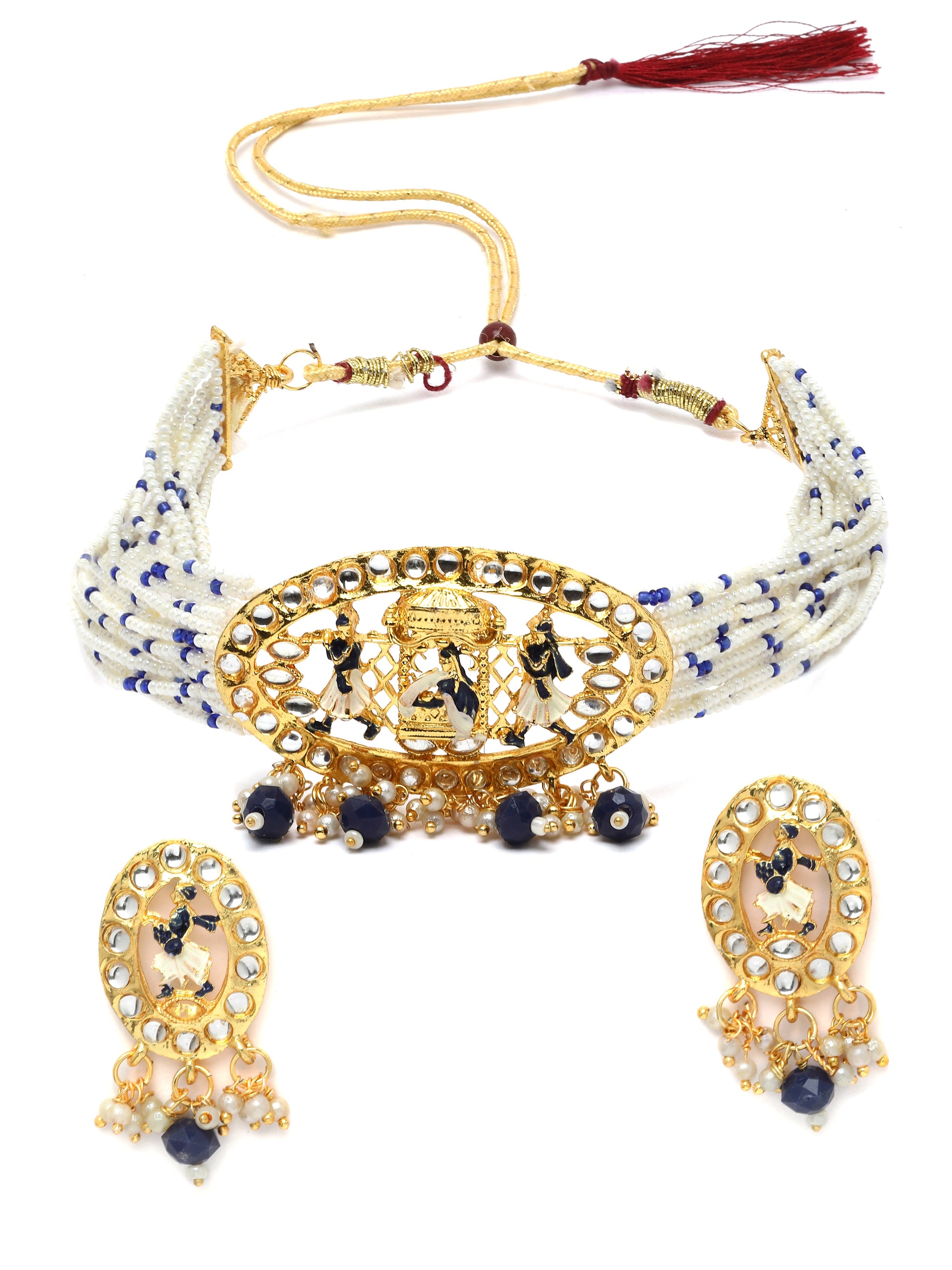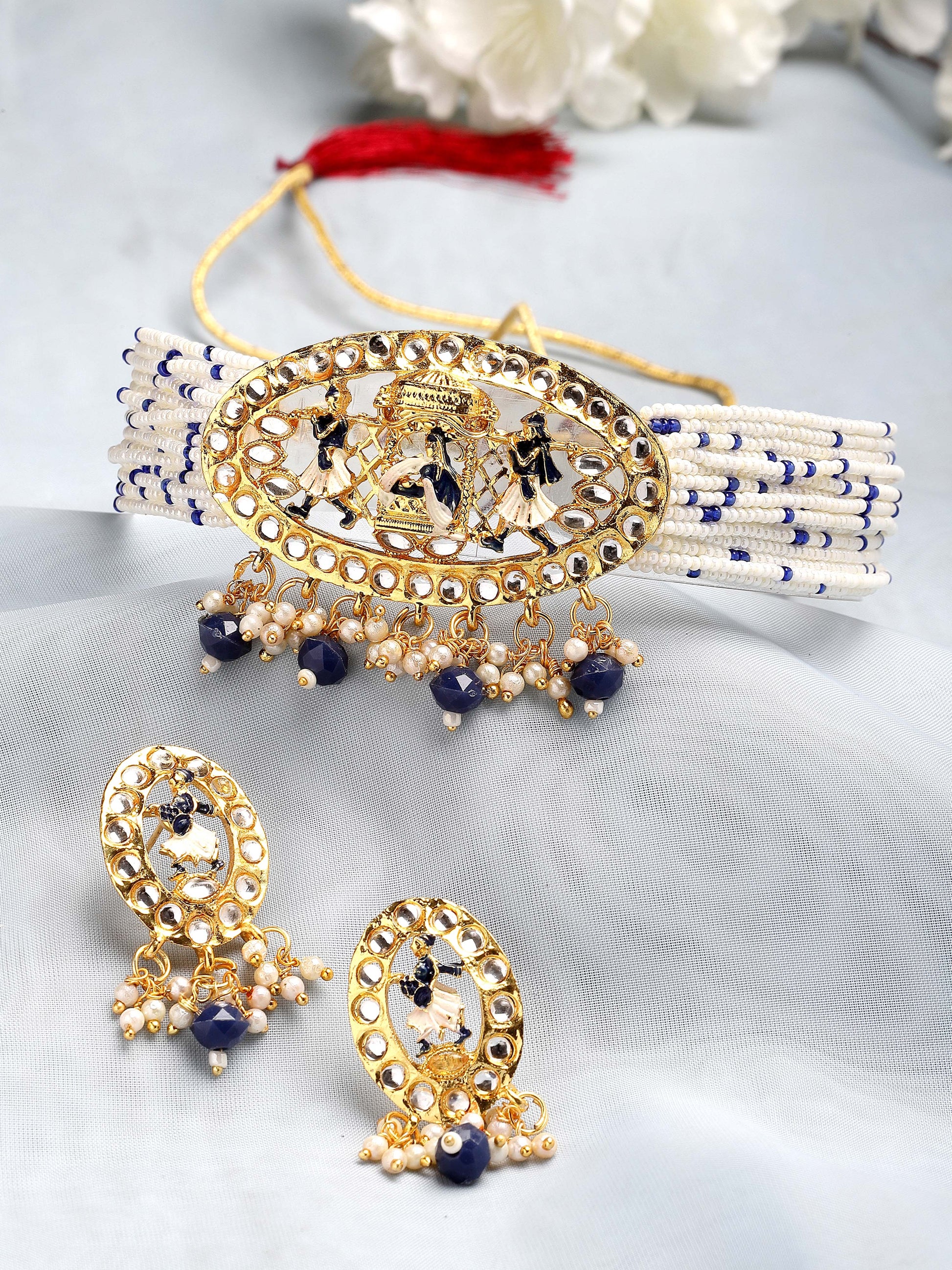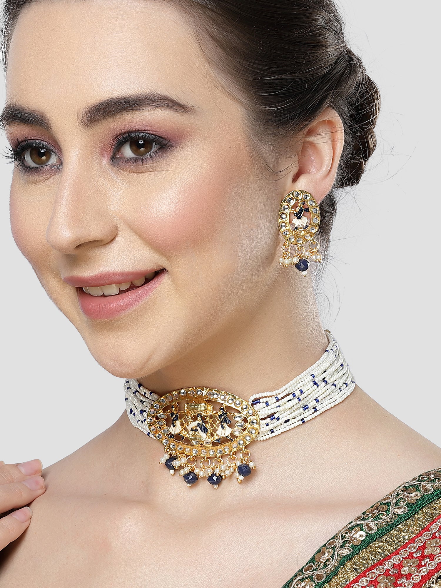 Karatcart Gold Plated Blue Dulhan Doli Design Choker Necklace Set for Women