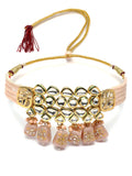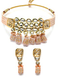Karatcart Gold Plated Peach Tumble and Polki Kundan Choker Necklace Set for Women