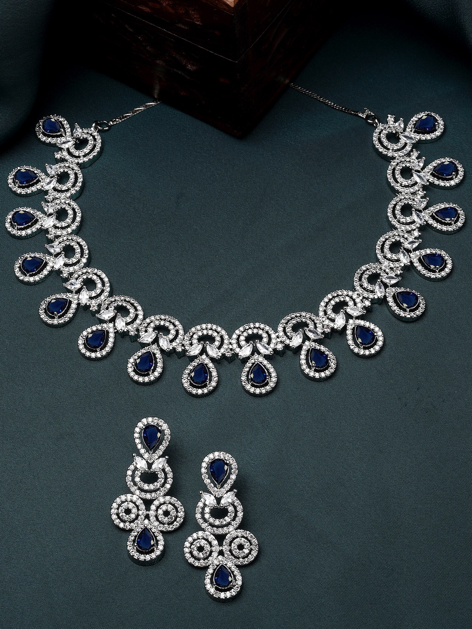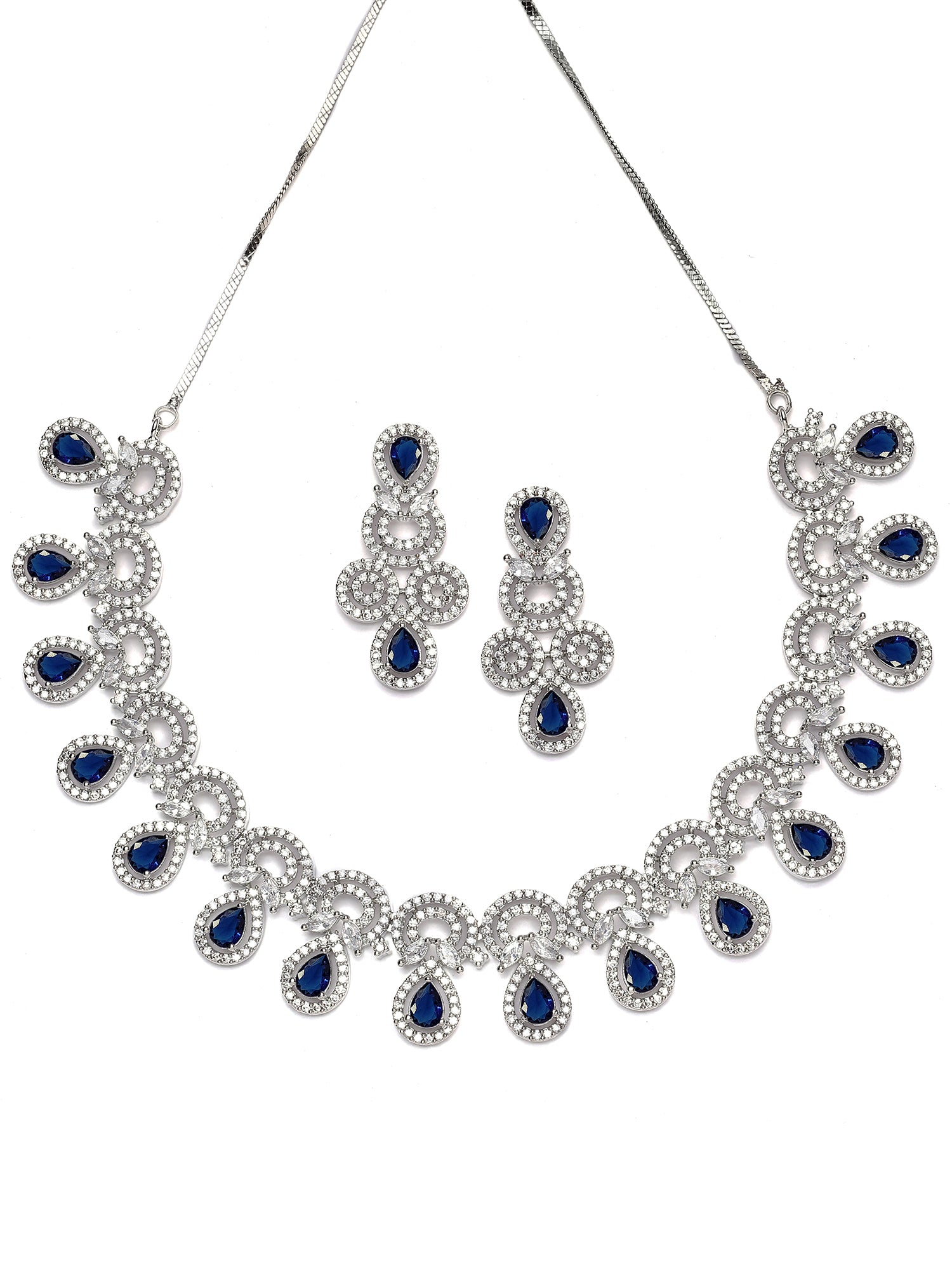 - This is a Blue Jewellery Set by Brand Karatcart which has American Diamond stones.This is Silver Plated. We at KARATCART understand your desire to look the best on any day & we thrive in making any day an occasion. Every individual at Karatcart carries a passion for jewellery and it reflects in our beautiful designs as well as in our breathtaking craftsmanship. We create unique jewellery so you can make heads turn..